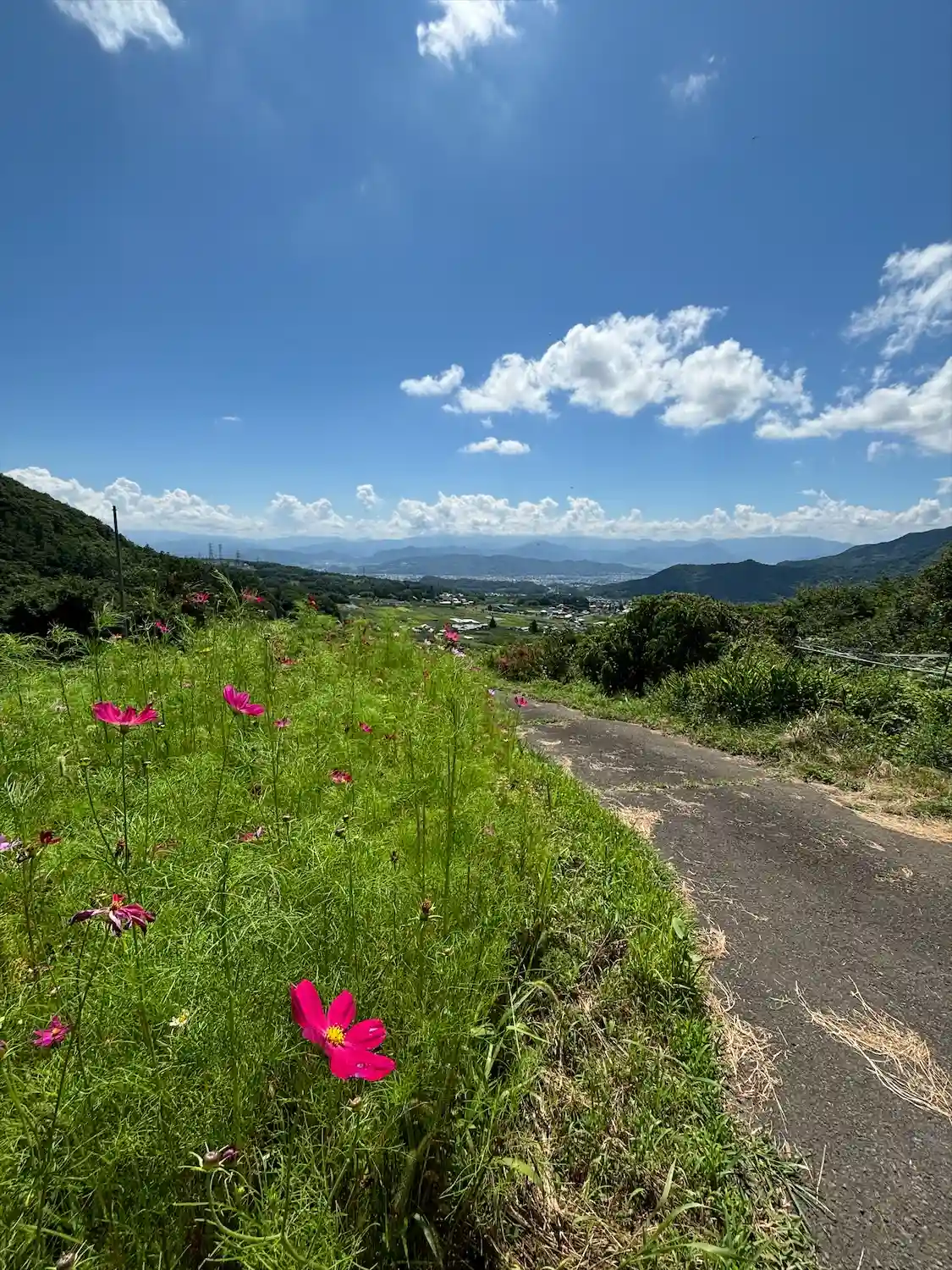 コスモスと街が見える、素敵な景色。