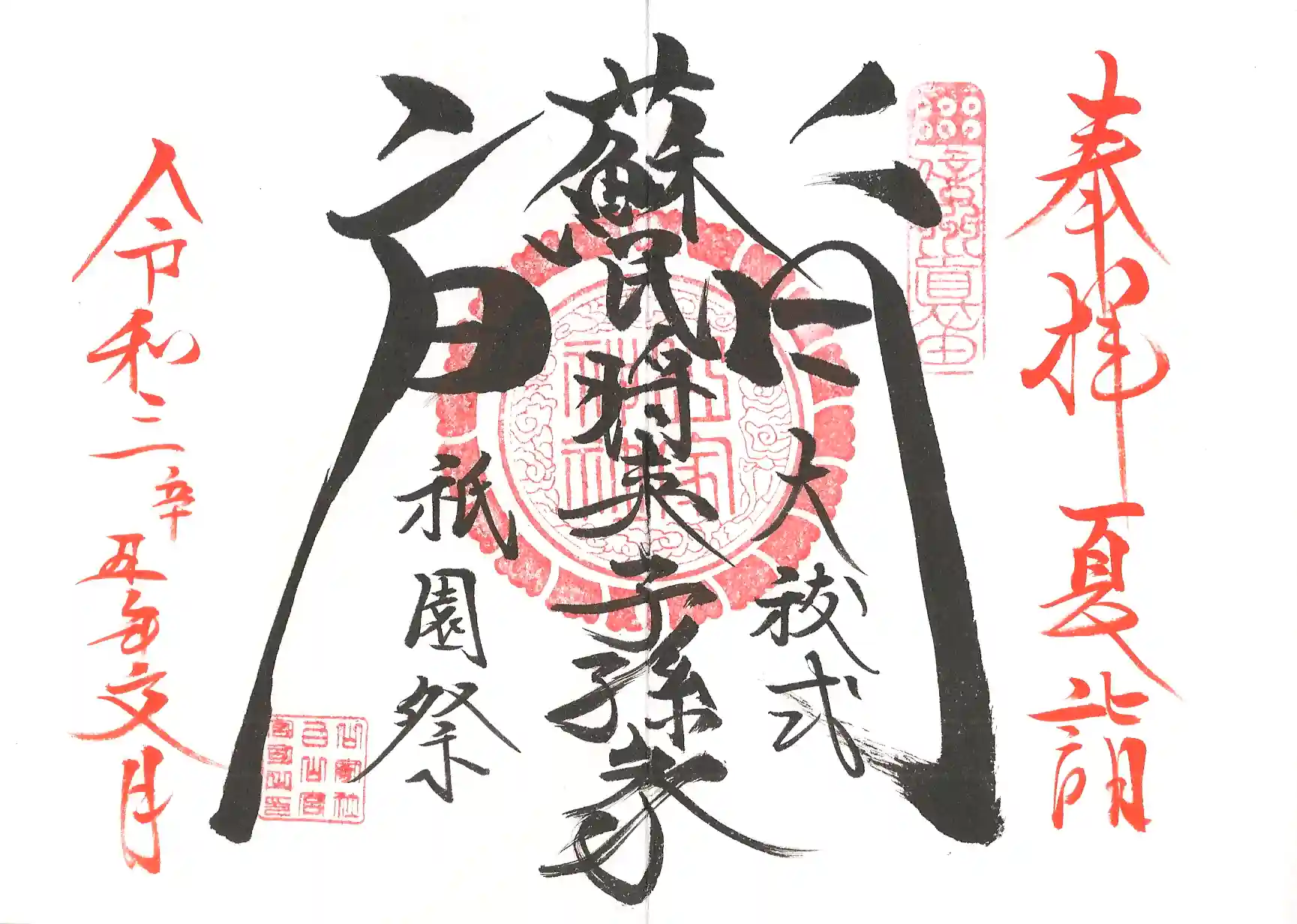 御朱印は大祓・祇園祭のものと、夏詣のものを頂きました。こちらでは祭礼の御朱印は基本的に当日のみなのですが、今年はコロナの影響もあって期間が長くなっているものもあるようです。