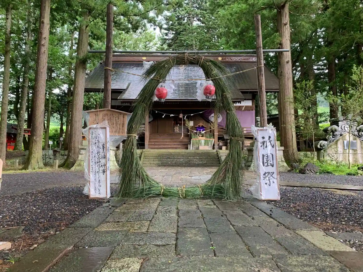 お祭りの前に小雨が降りはじめてしまったのですが、拝殿前…