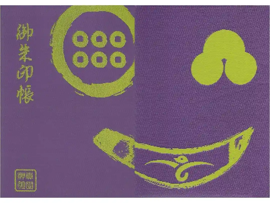境内摂社の真田神社の御朱印帳。前回は黒字に赤を頂きましたが、今回は紫地に黄色。