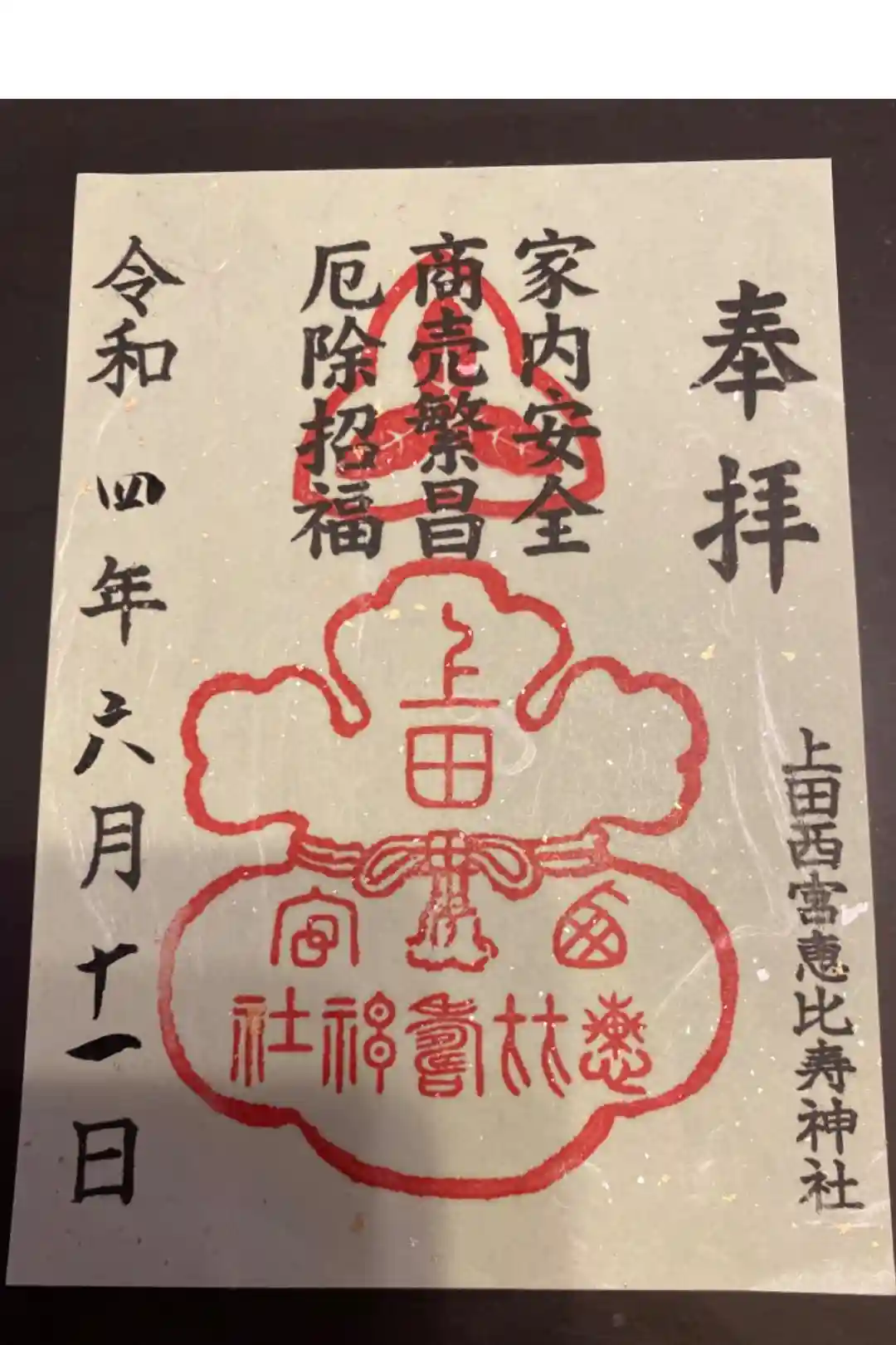 境内社の上田西宮恵比寿神社の御朱印もあります