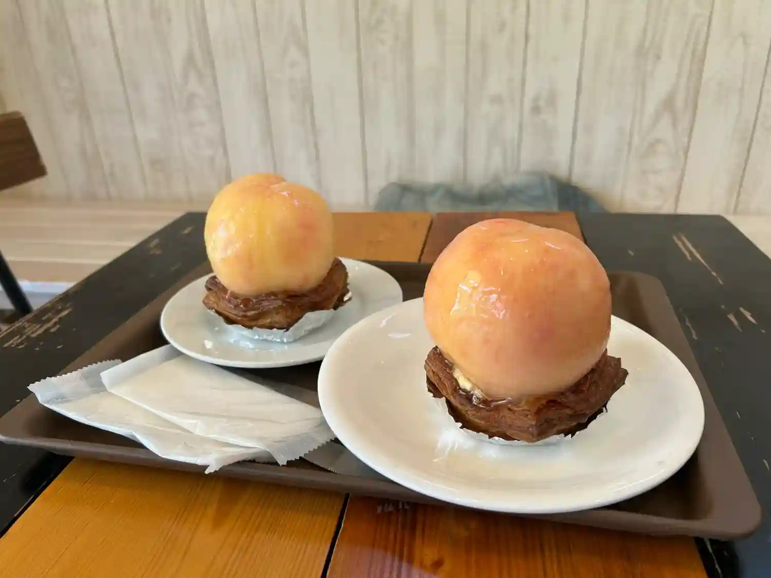 デザートはタルトさんで丸ごと桃タルトを頂きました。山梨産の白鳳という🍑は、ジューシーで甘くてとても美味しかったです♪😋