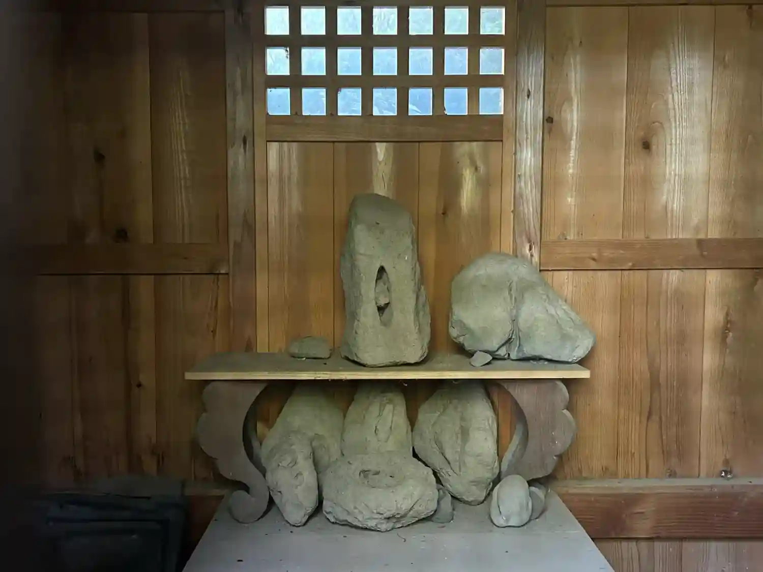 拝殿左側の部屋に奉納陰石