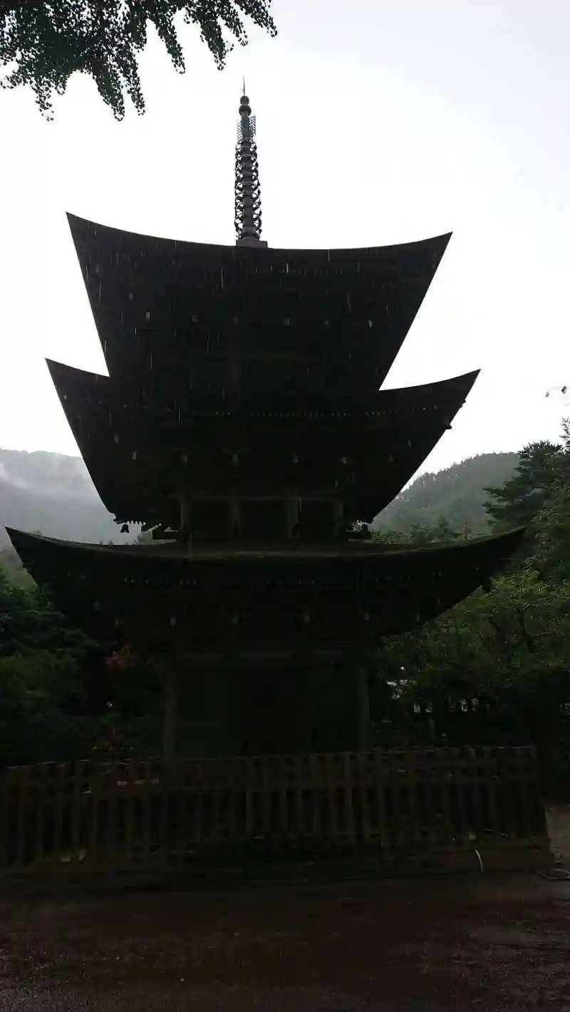 重要分文化財の三重塔は窓扉がなく、また、回廊もないので未完成の完成の塔と言われています。