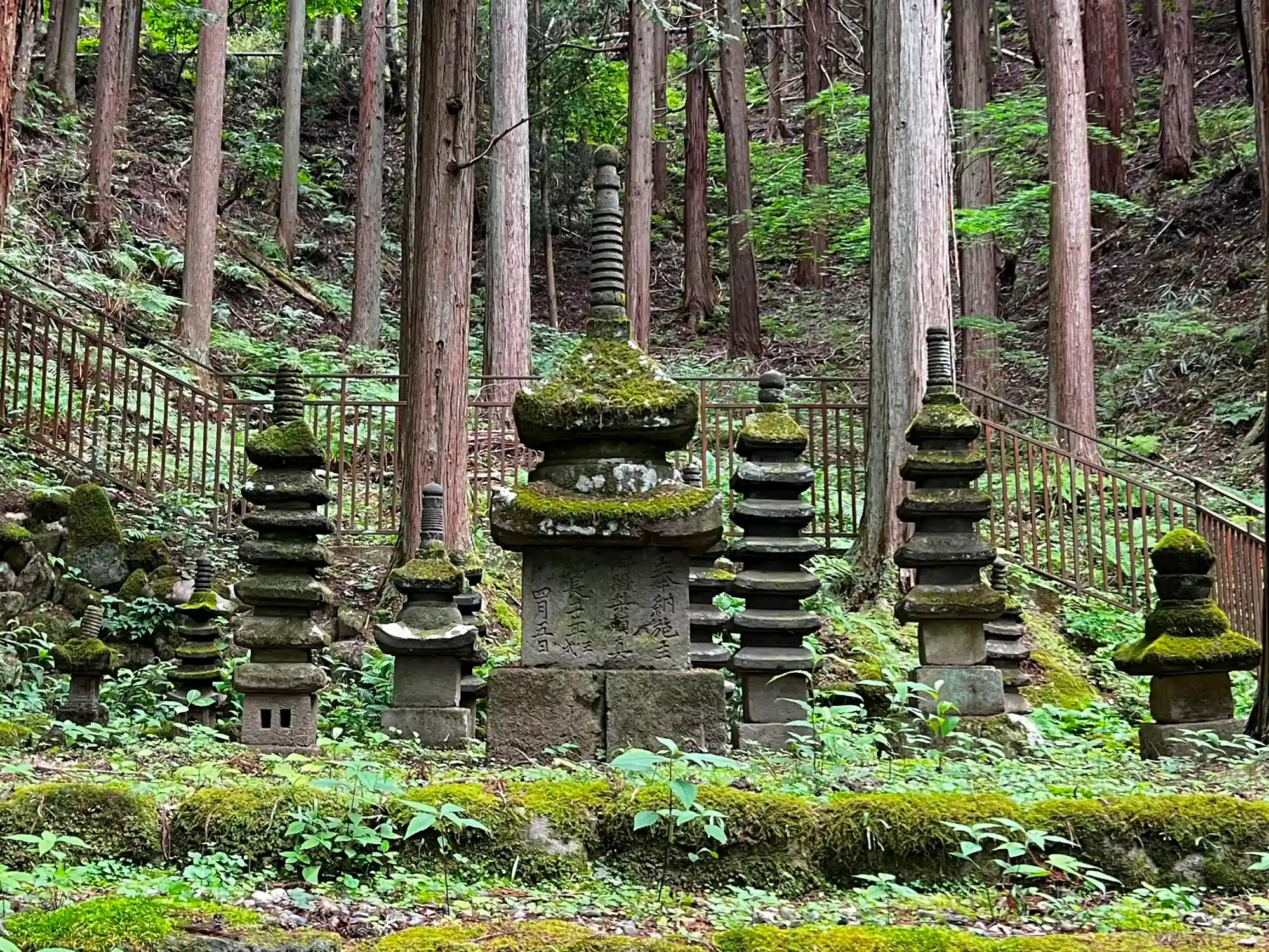 石造多宝塔を背にした眺め。しっとりとした感じが山岳寺院らしい。