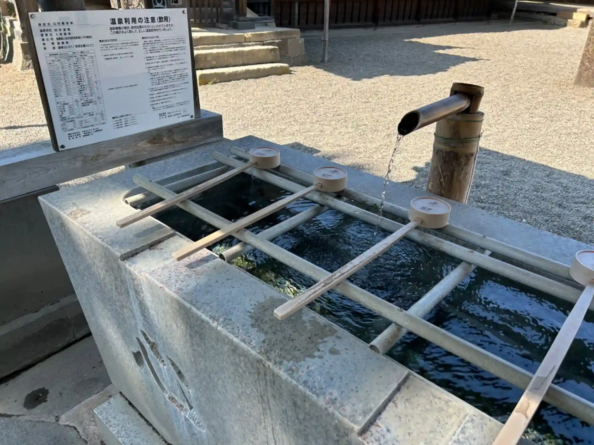 手水舎は温泉が使われていて暖かい!しかも飲用可能。参道は短くてお店も少ないけど雰囲気は好き。