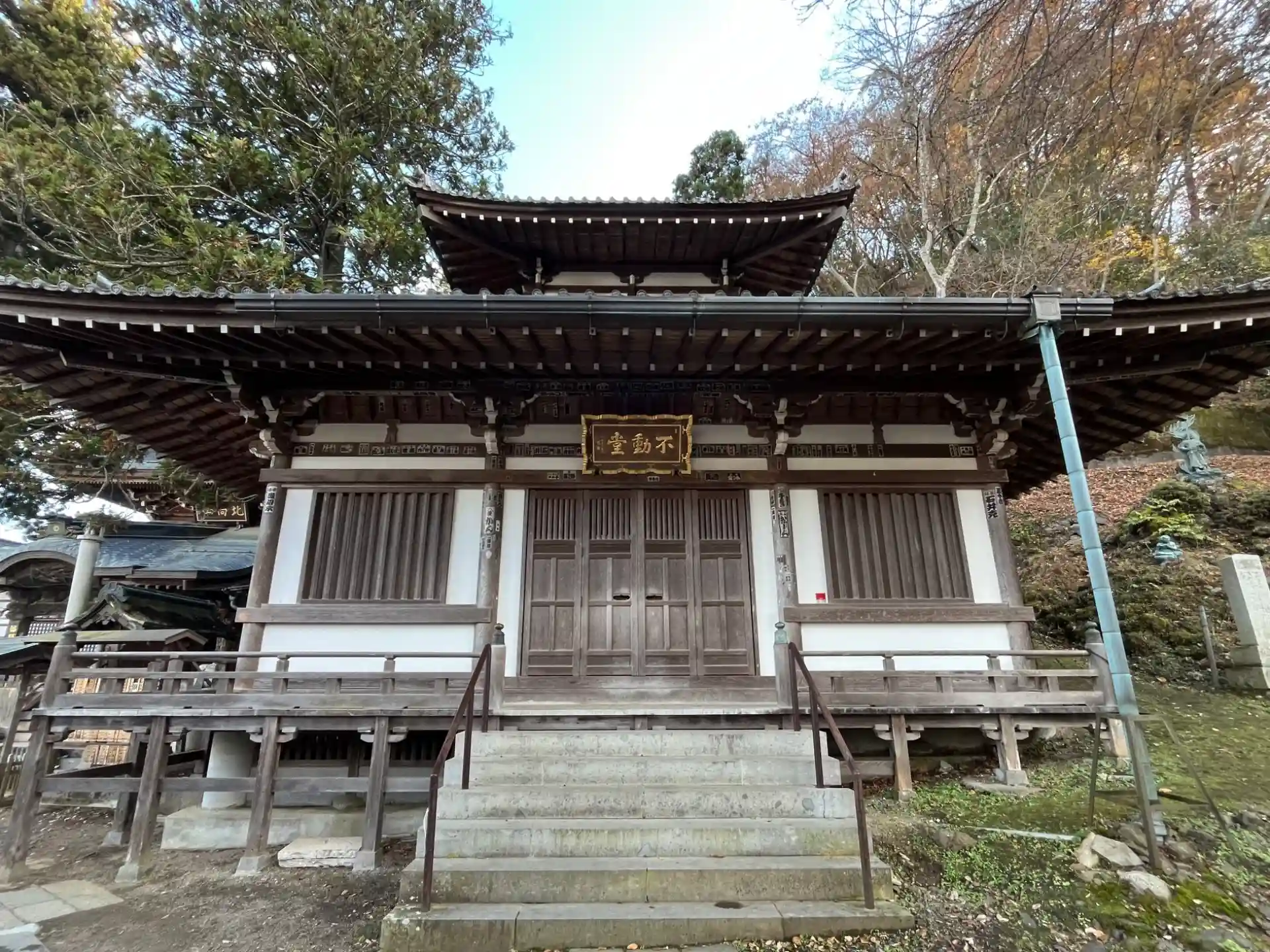 大法寺から車で移動15分くらい、別所温泉内の観光駐車場に車を停めて幾つかの寺社をお参りしました。最初は北向観音堂に向かい、道中に参道があったのですが、平日のためか閉めているお店もあり、ちょっと寂しい感じです。お参りしている方は多かったんですけれどね。手水といえば温泉なので暖かくて気持ちよかったです。まだ参道入口付近に温泉を飲めるところがあったのですが、硫黄泉だけあり独特の匂いがしました。