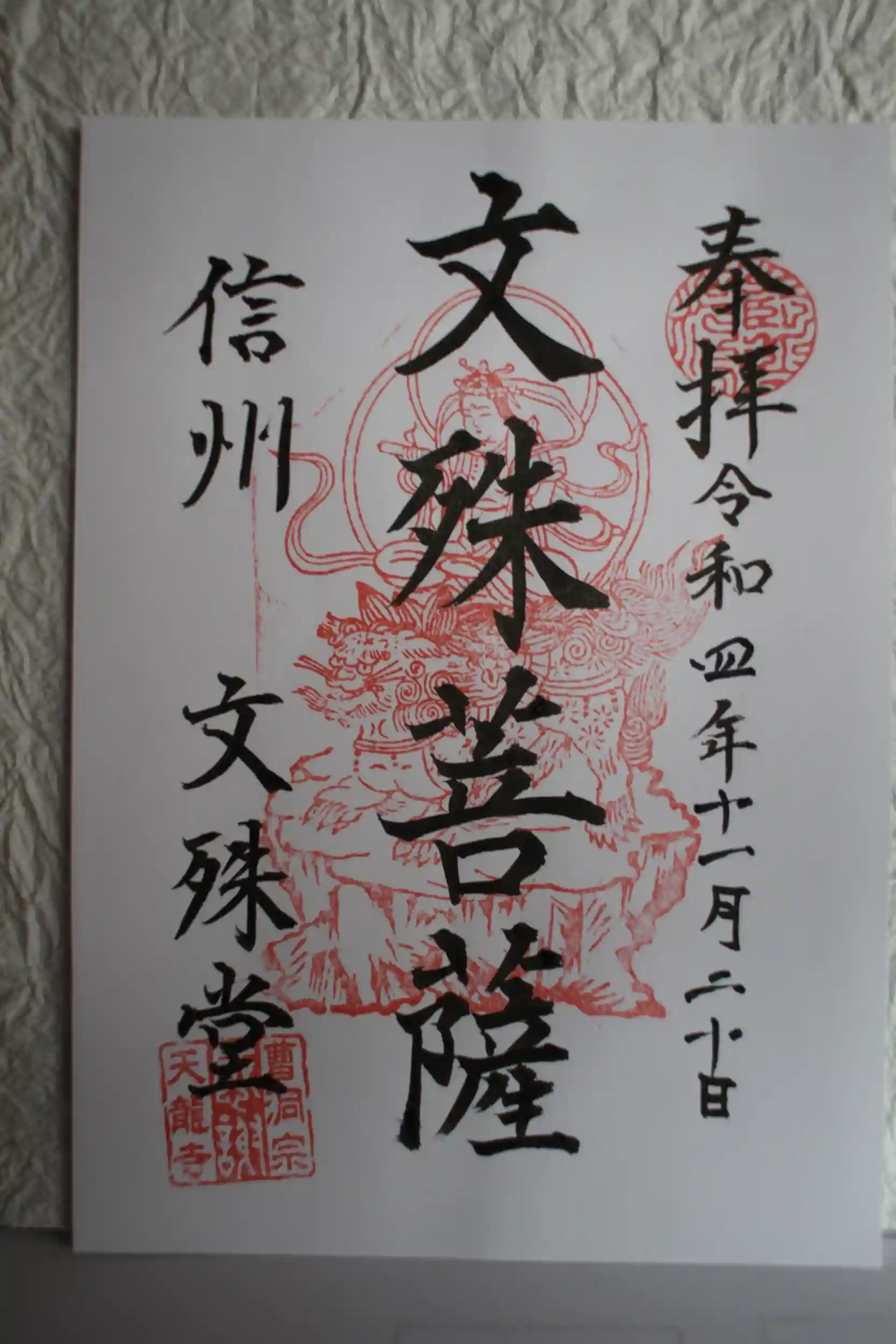文殊菩薩が鹿に姿を変えて信心深い猟師に効能豊かな出湯を教えたという鹿教湯温泉♨️日本三大文殊のひとつ、文殊菩薩が祀られています😊朝7時に鐘がなり小さな温泉街に響き渡ります。鐘を鳴らす前の朝のお仕事をされている時でしたが、気持ちよく書き置き御朱印に日付を入れてくださいました☺️「これから居なくなるところだったのでよかったです。」と🙏湯治で長く滞在される方も多い鹿教湯温泉です😊