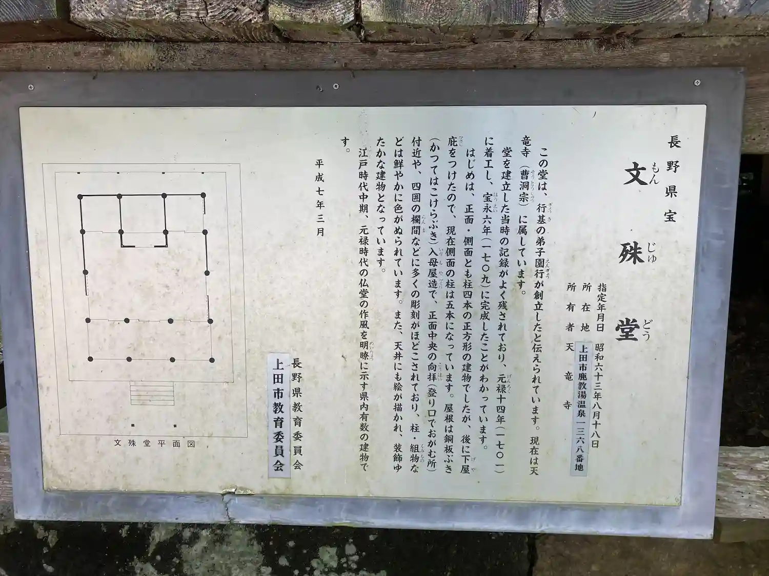 鹿教湯温泉♨️から五代橋を渡った対岸に鎮座する文殊堂と薬師堂は、地元の方や温泉宿泊者などが散歩して、川や小滝のマイナスイオンを浴び、夏は、北側の山による日陰の清涼感を味わっています。
