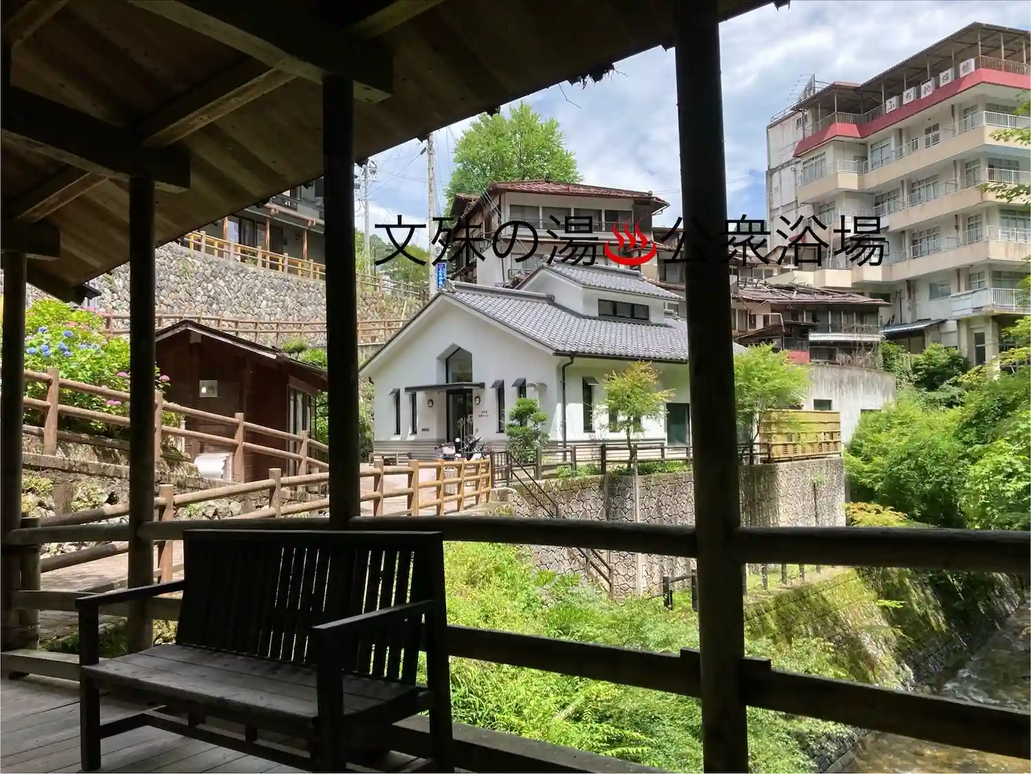 温泉街から下って、五代橋の前には公衆浴場の文殊浴場があり、地元民や遠方からの来訪があります。