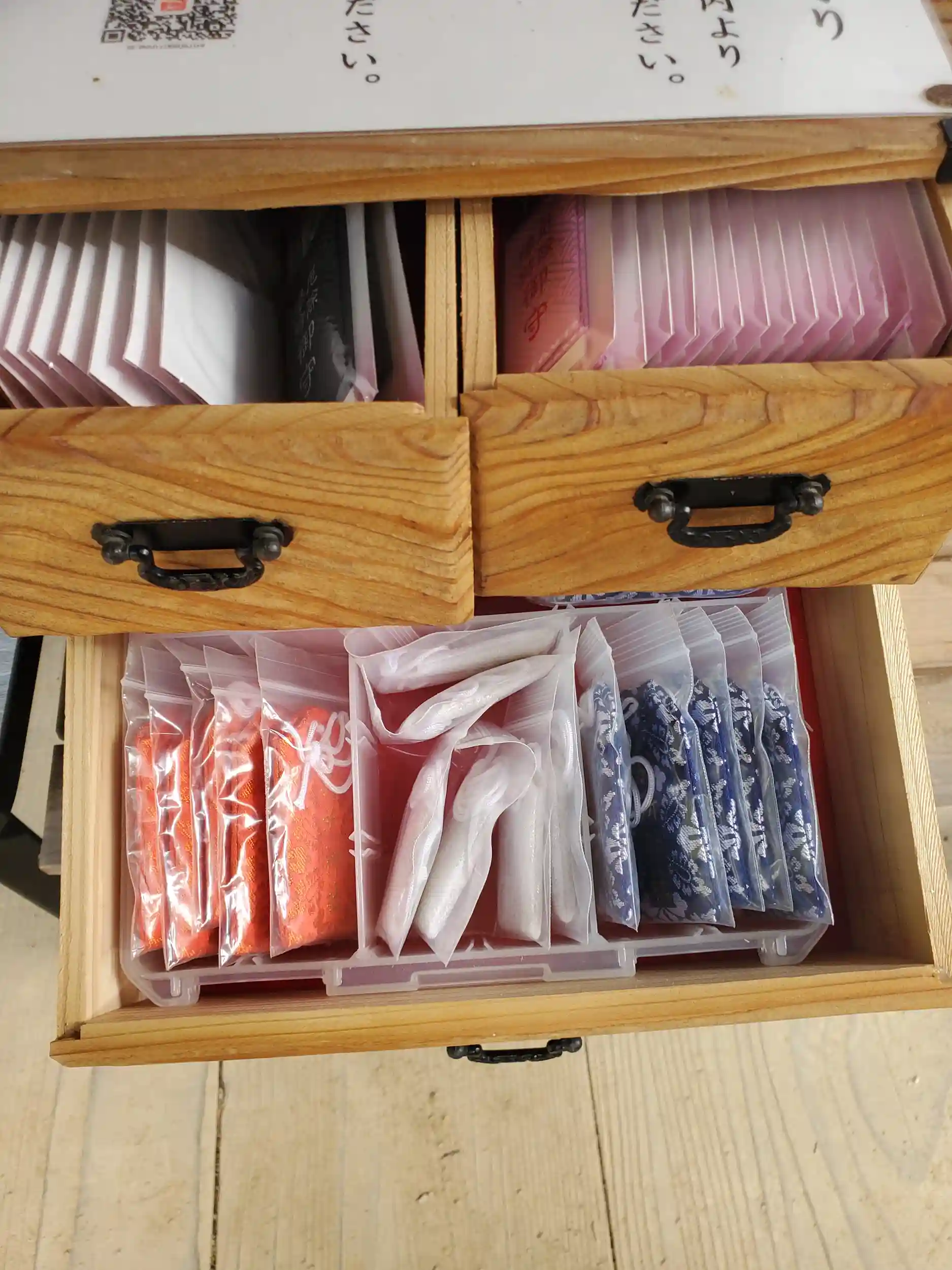 拝殿前に各種授与品