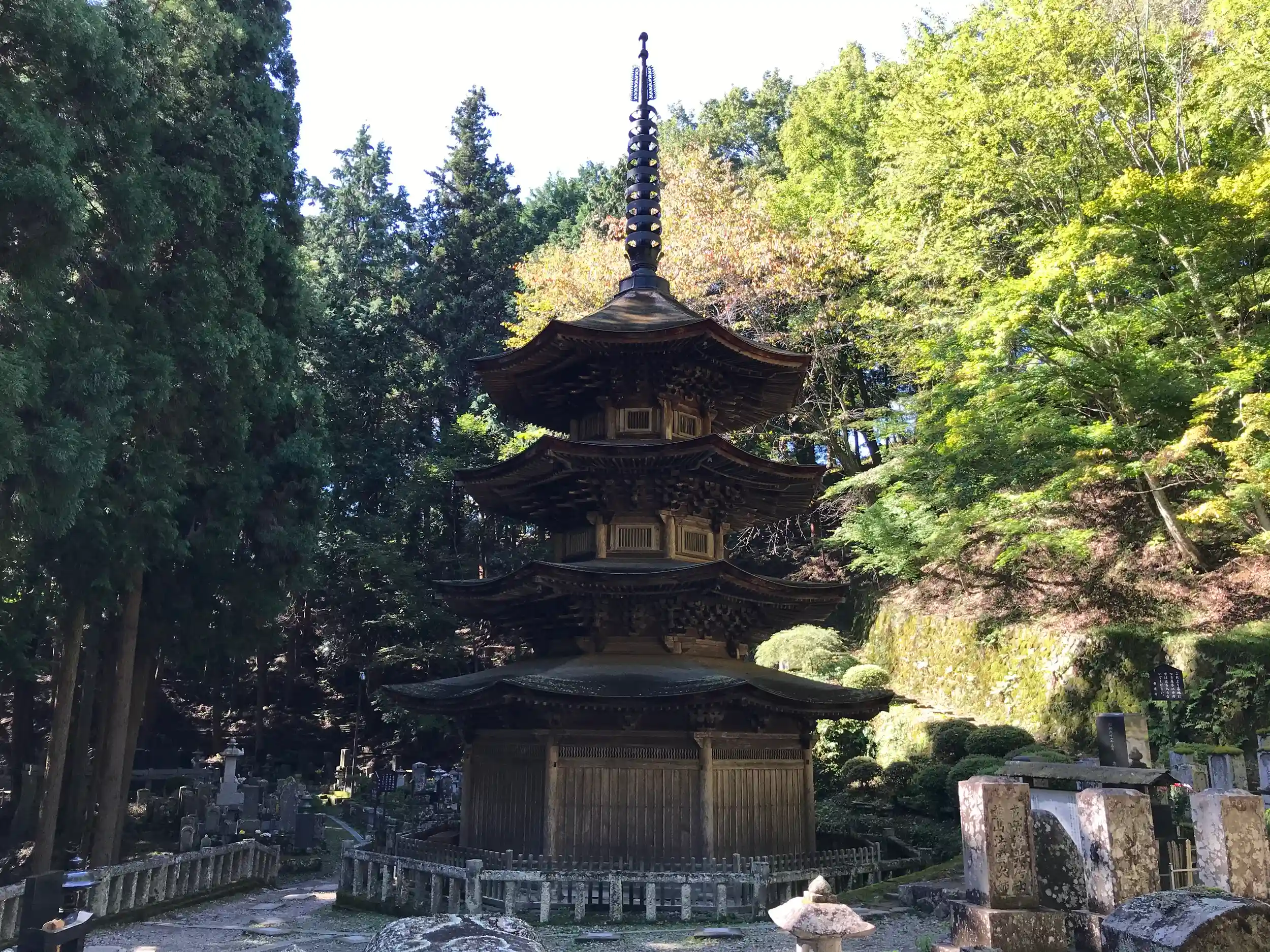 見所は八角三重塔。
