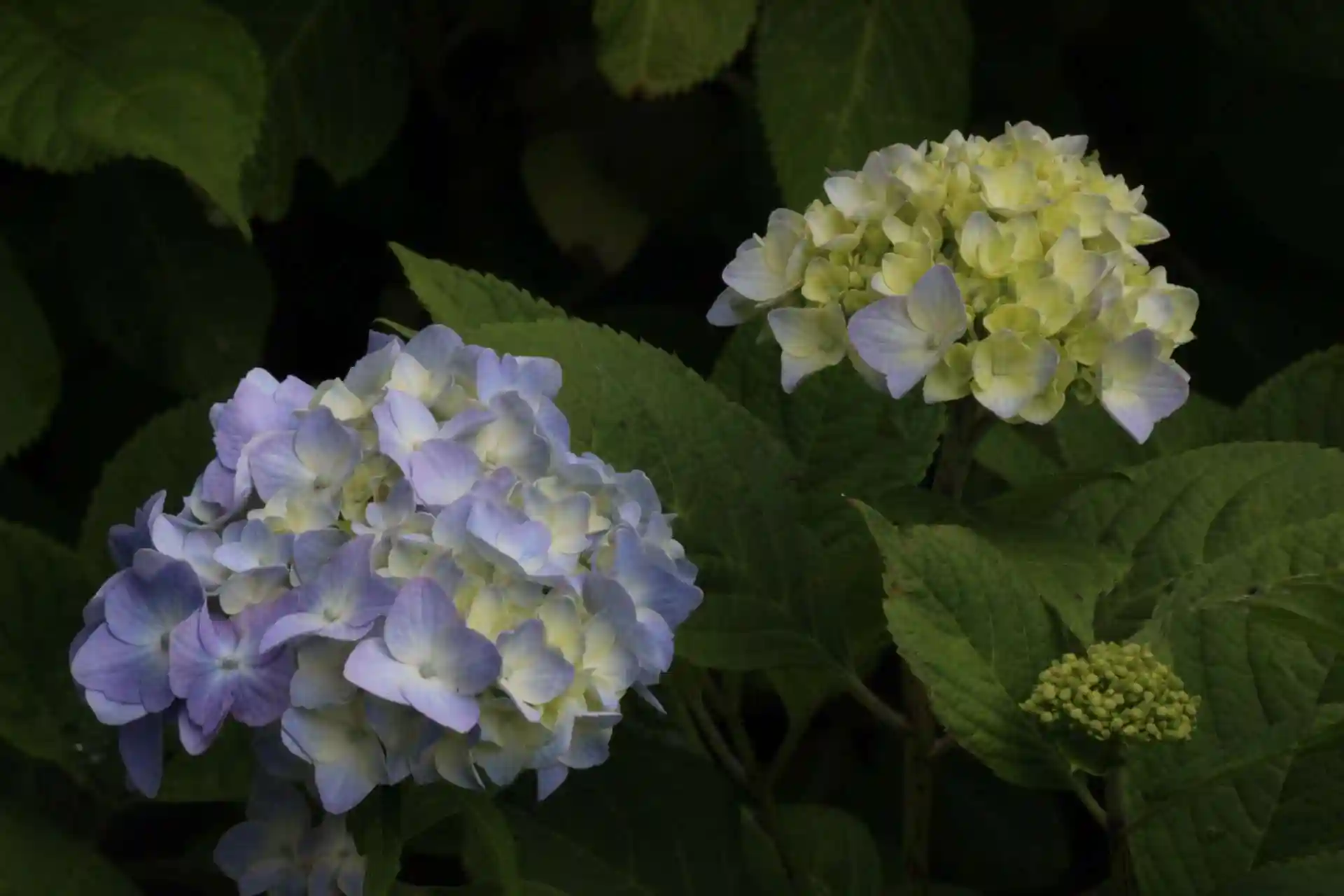 境内のあじさいの色づきが進んでおります。
