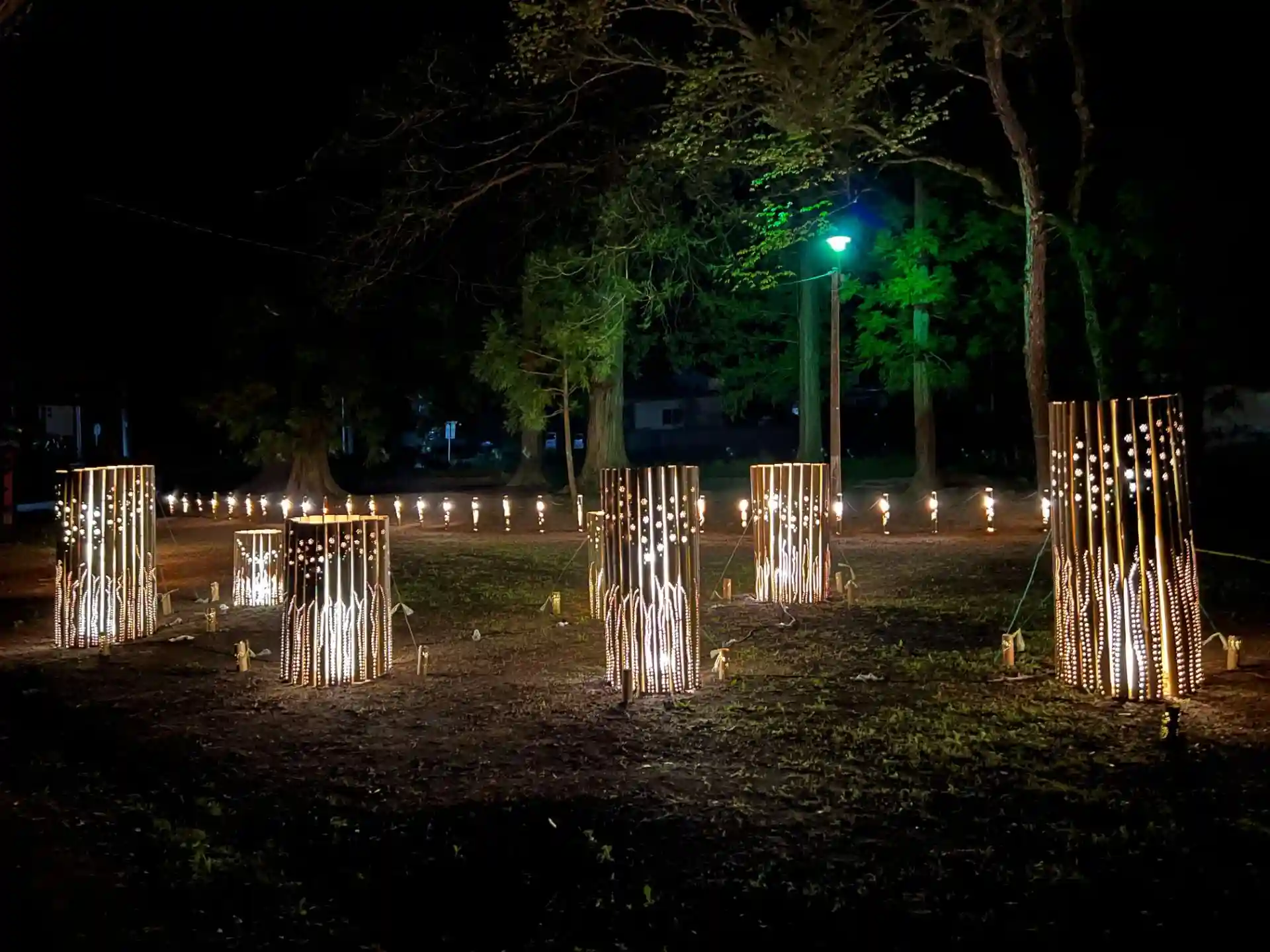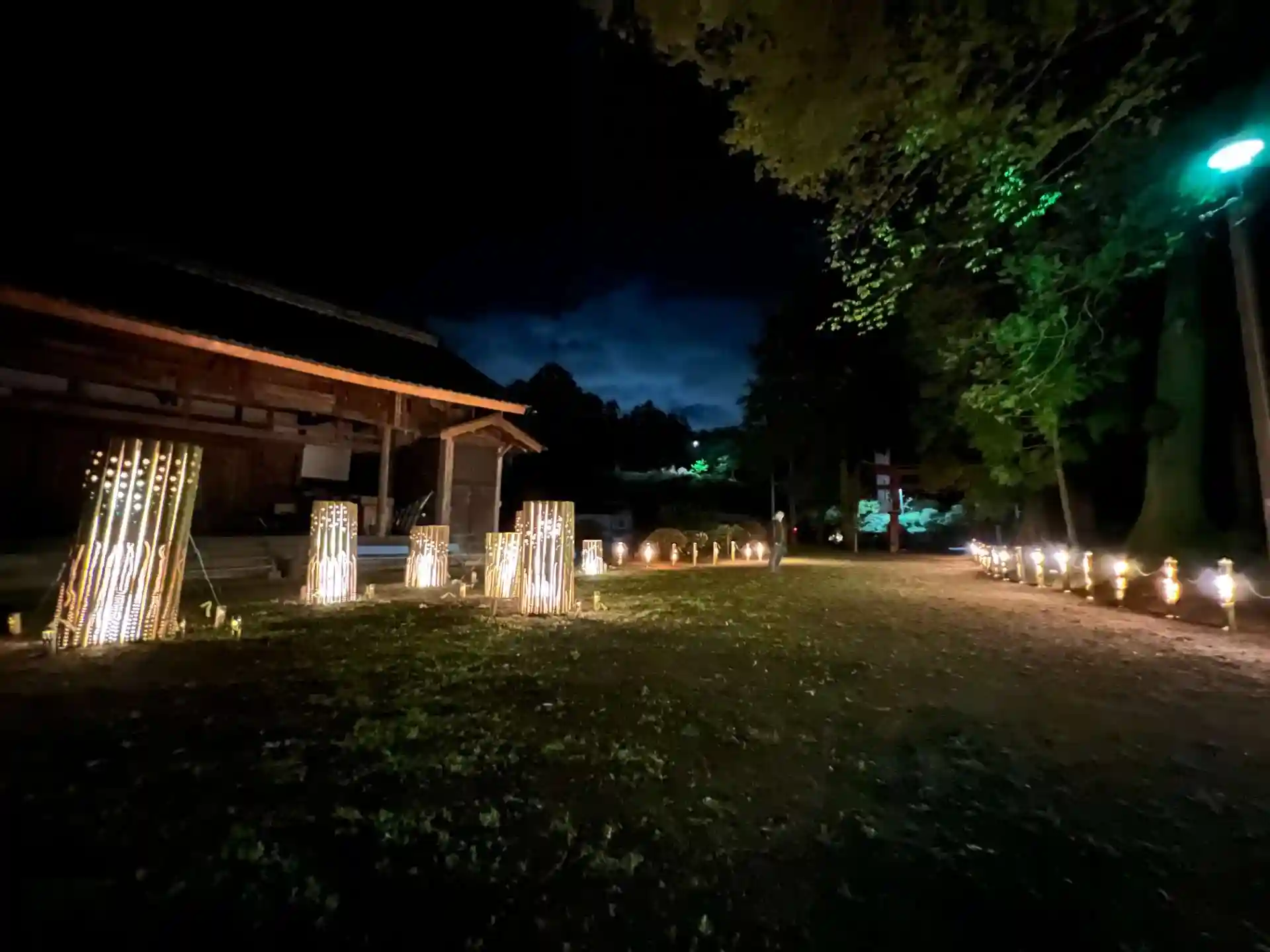 国宝大法寺鎮守神である日吉神社で、竹灯籠野点灯がはじまりました。