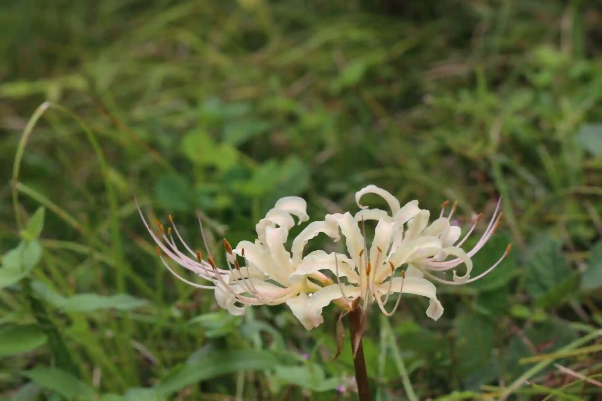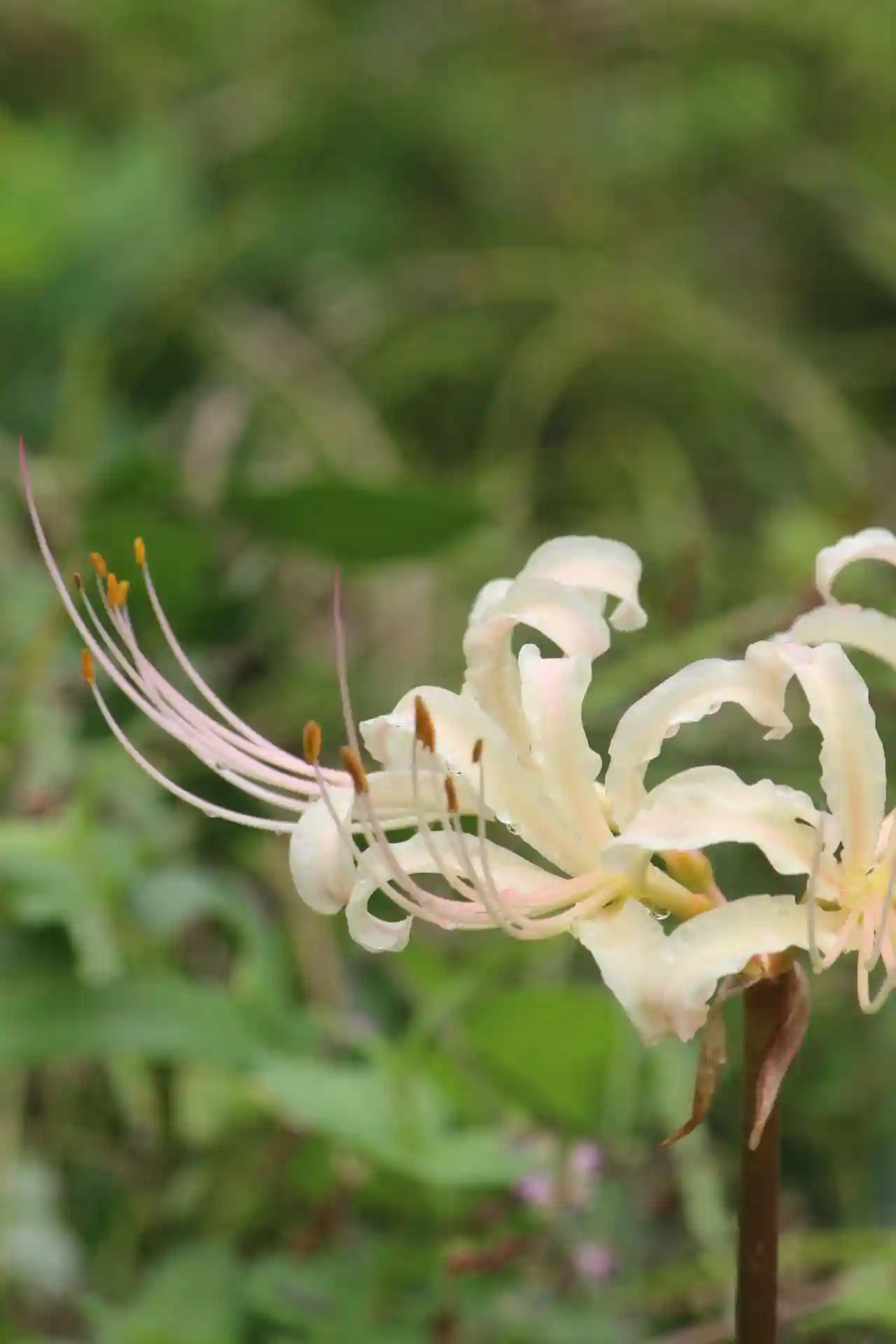 赤色同様に、雨露に濡れた彼岸花は、独特の妖艶さがただよいます。