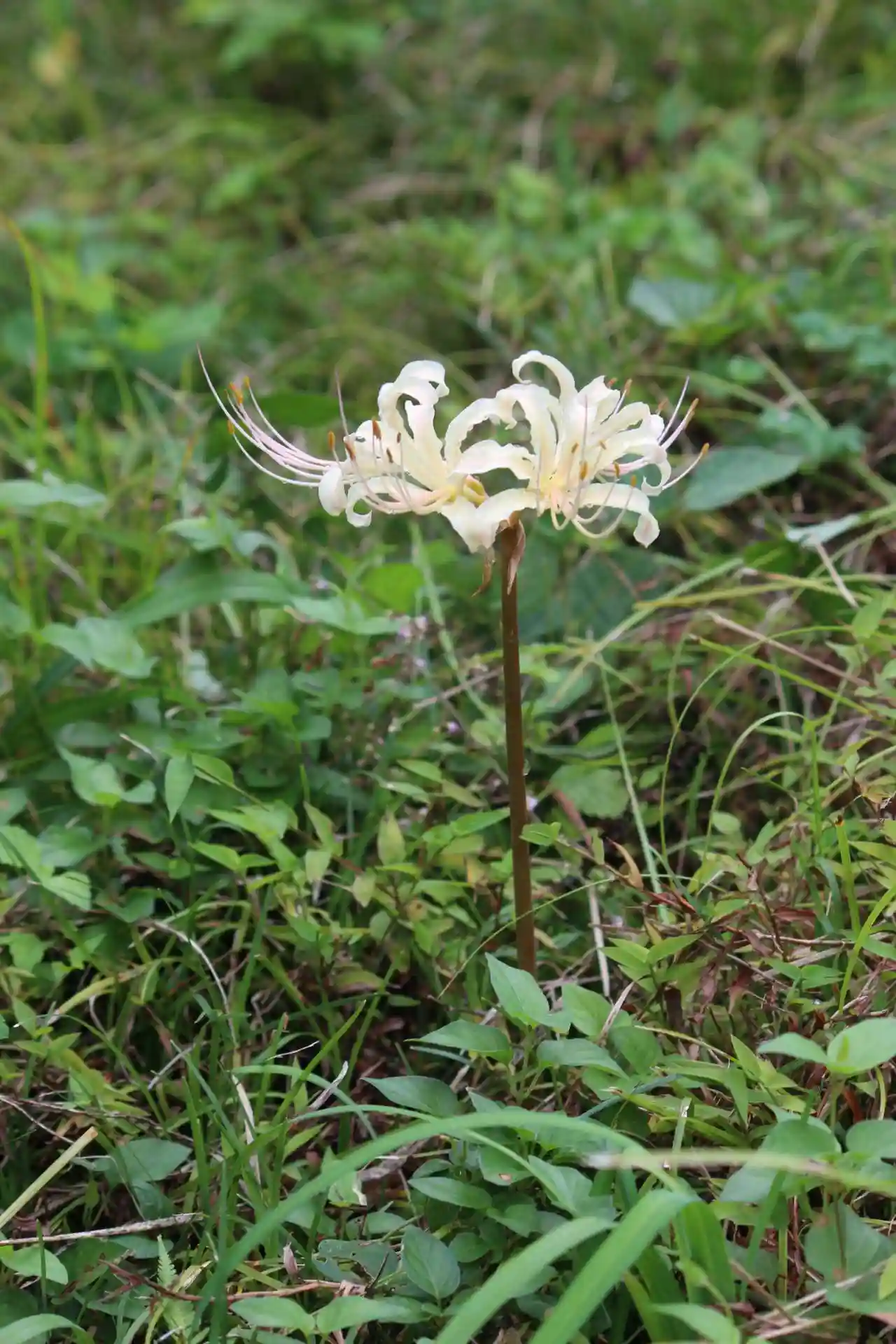 珍しい白色の彼岸花が三重塔前に少しずつ咲き始めております。