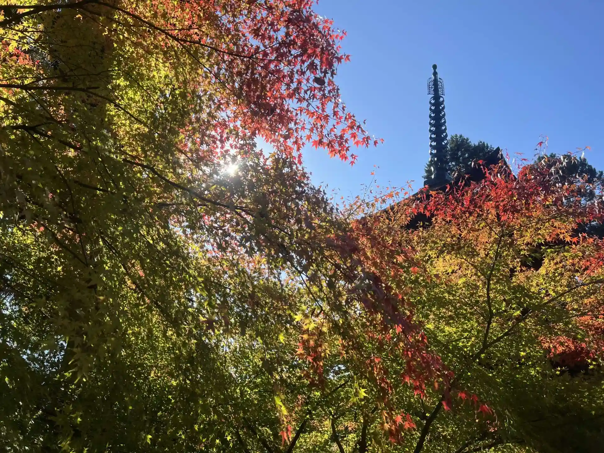 例年に遅れる紅葉ですが、大法寺三重塔 わきは、七色もみじ として見ごろをむかえております。