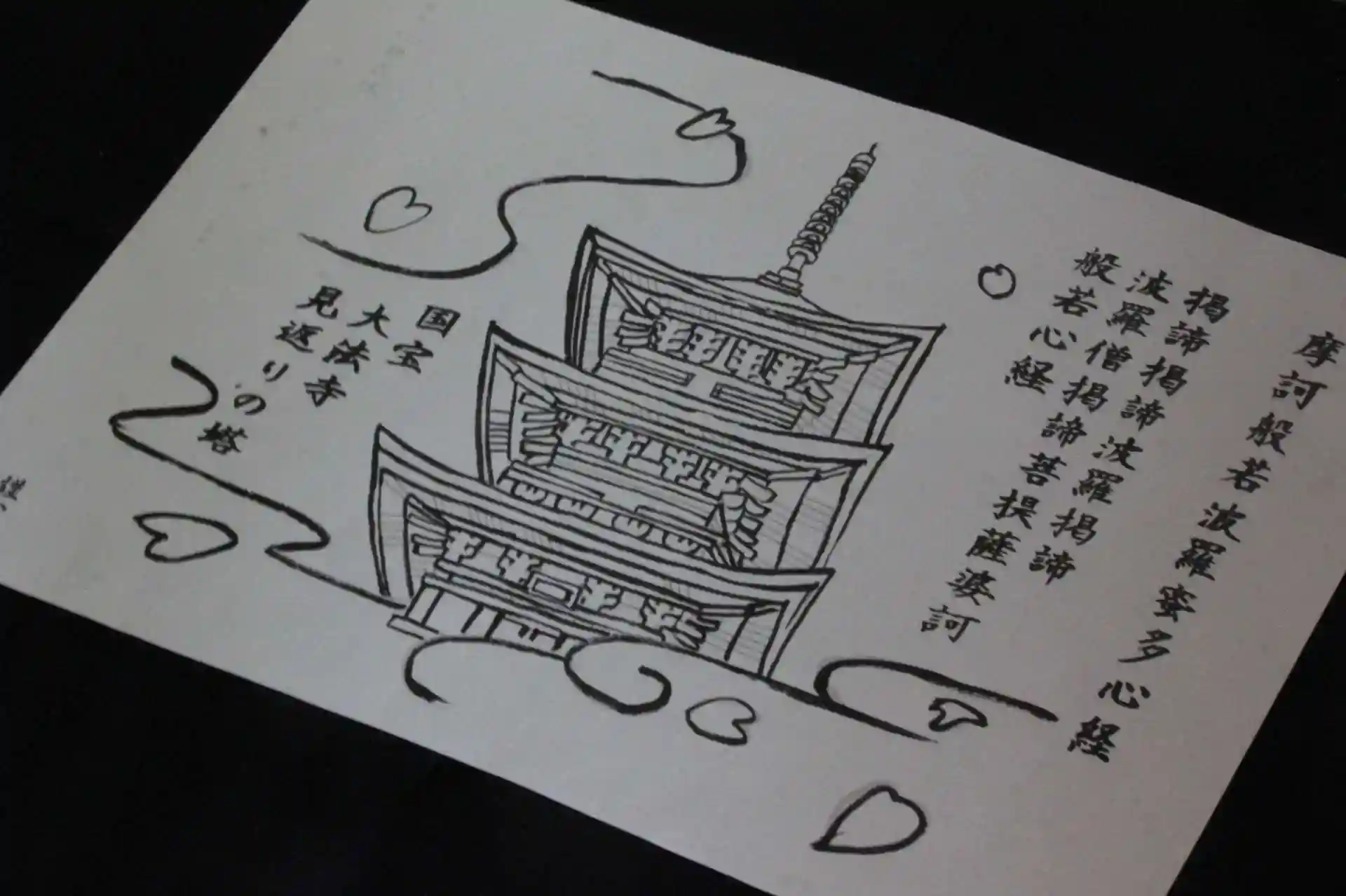 写経後には、国宝三重塔内部復元画、オリジナル和菓子をお楽しみいただけます。