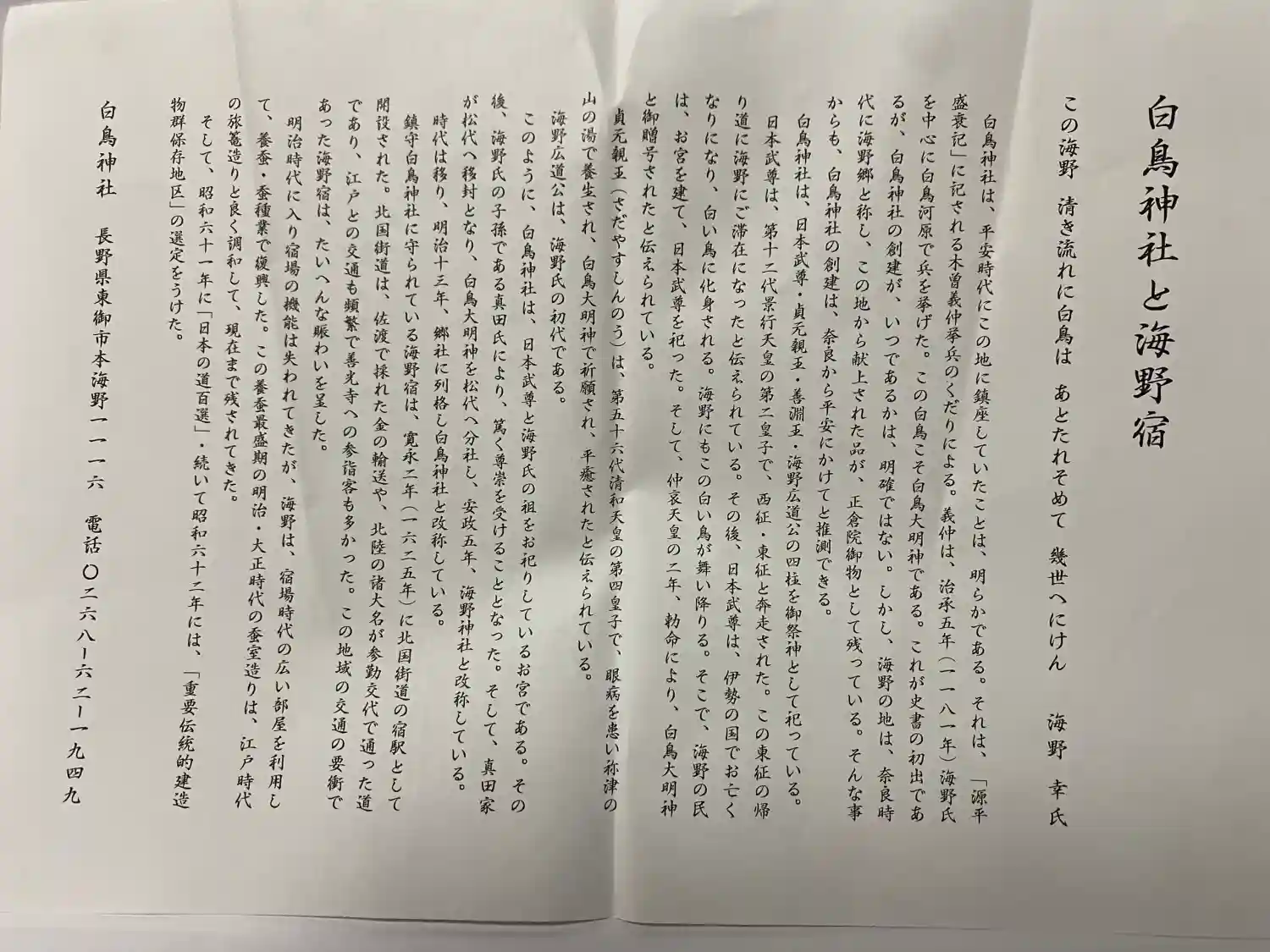白鳥神社長野県 田中駅