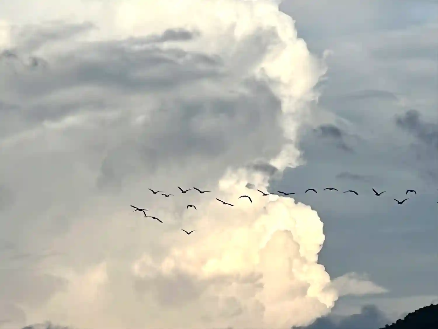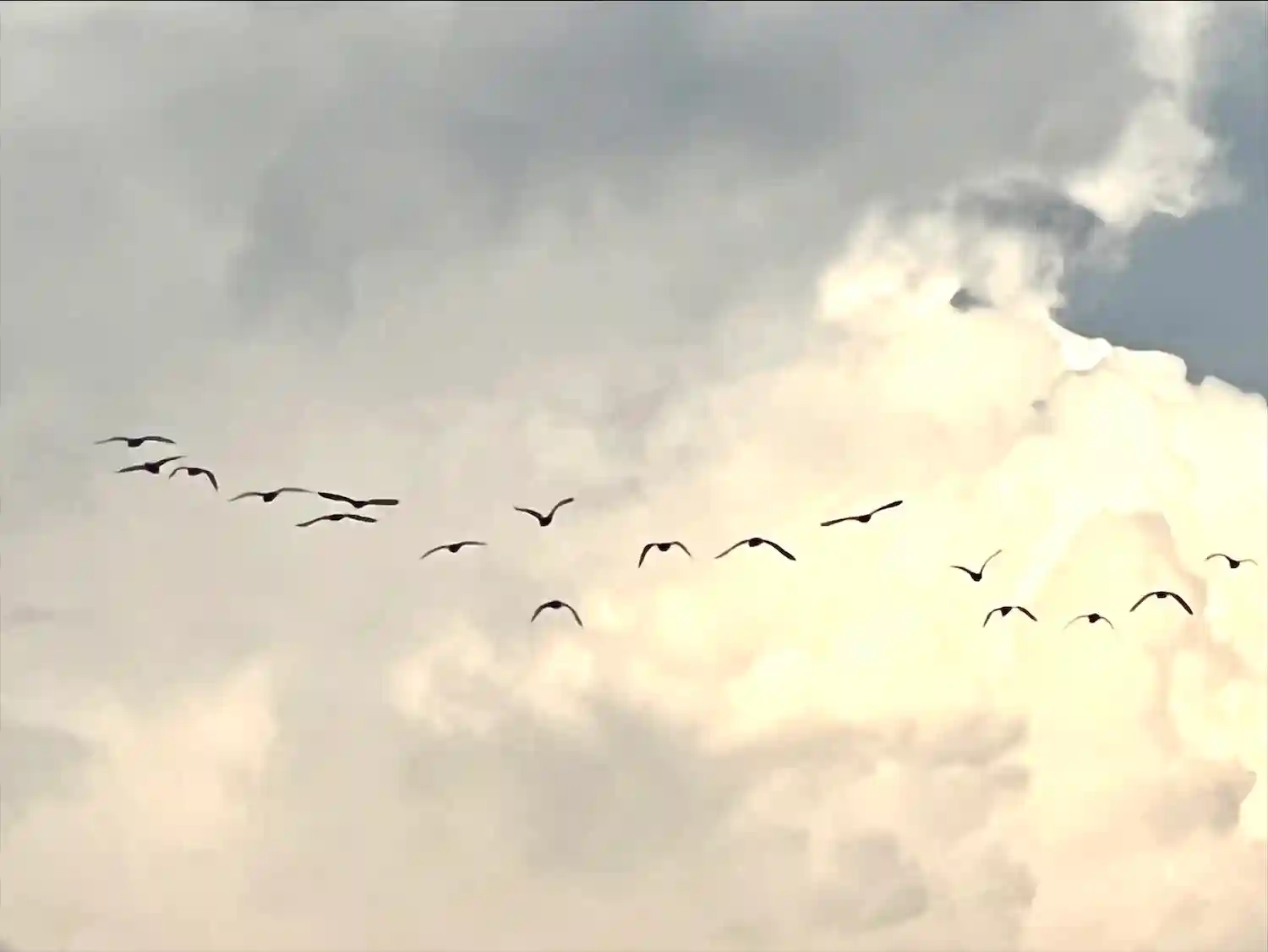 群れで飛ぶ鳥を見ると