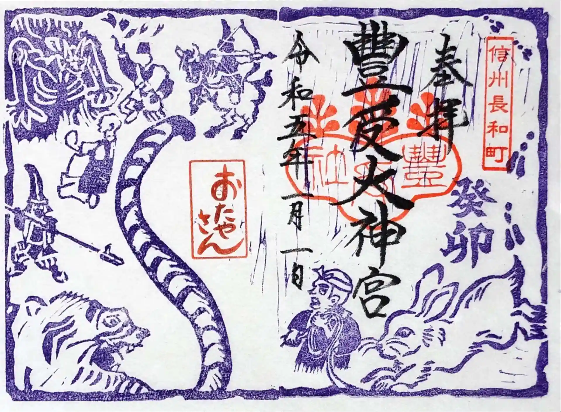 この御朱印には、昨年の山車を描き、寅年から卯年に移る新年をデザインしました。