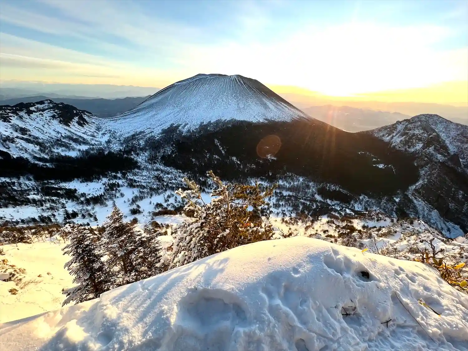 陽が昇り始めてガスッガスの山