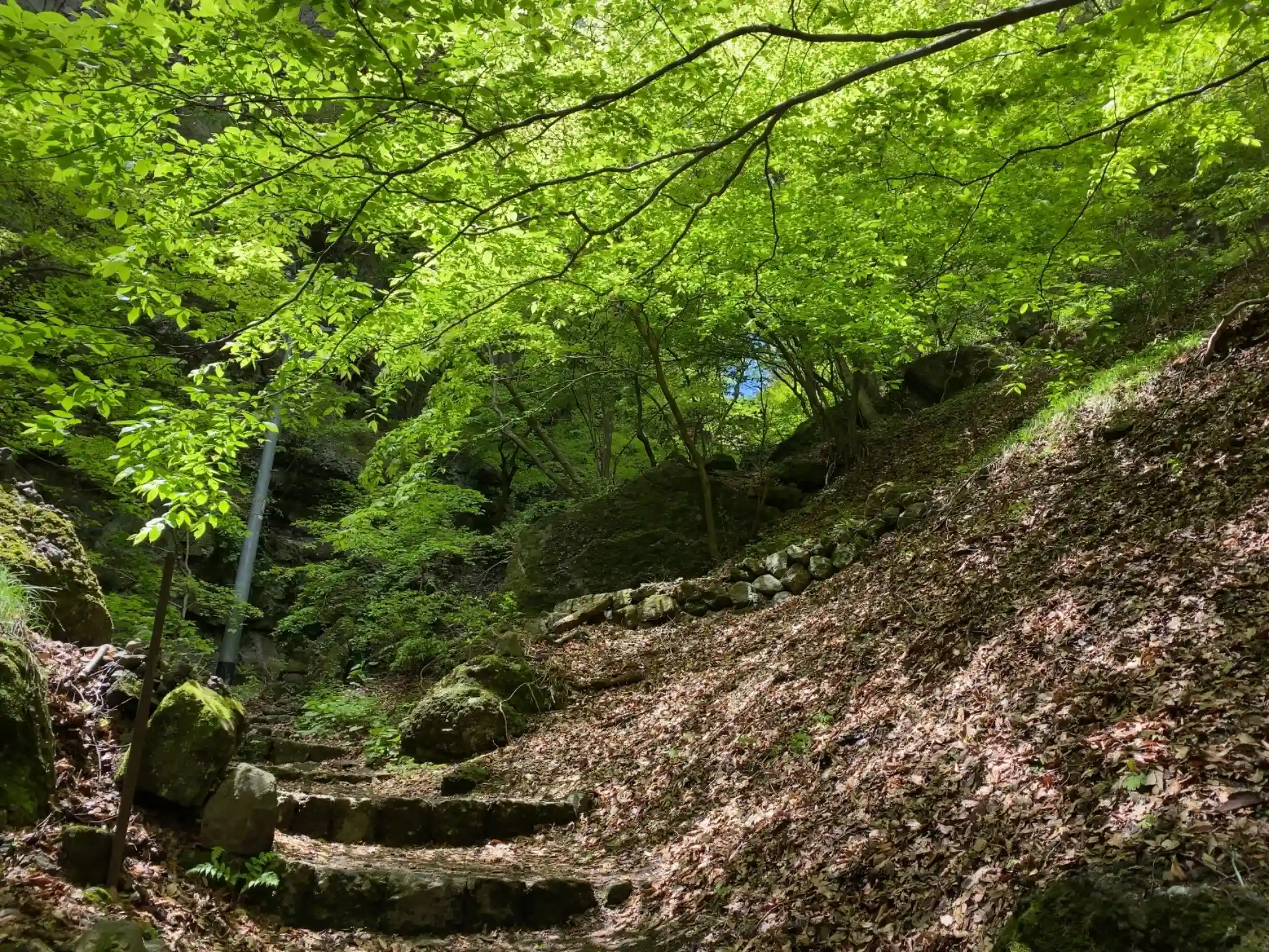 千曲川沿いの駐車場に停め、杖に頼りつつキッツい山道をあえぎあえぎ登ること30分(牛みたいにのろいので💦)