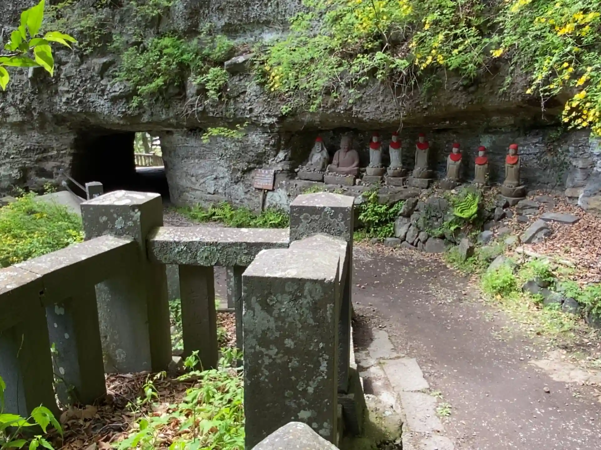 山階段を上がって、確か馬頭観音様辺りの右側に洞窟がありませんでしたか?その昔、善光寺さんが火事に見舞われた時に、釈尊寺さん下の洞窟から煙が出てきた...なんていう一種の都市伝説もあるんですよ。そして、千曲川沿いのあの道から2・3分走ると岩山に布岩も見れたりもします😊