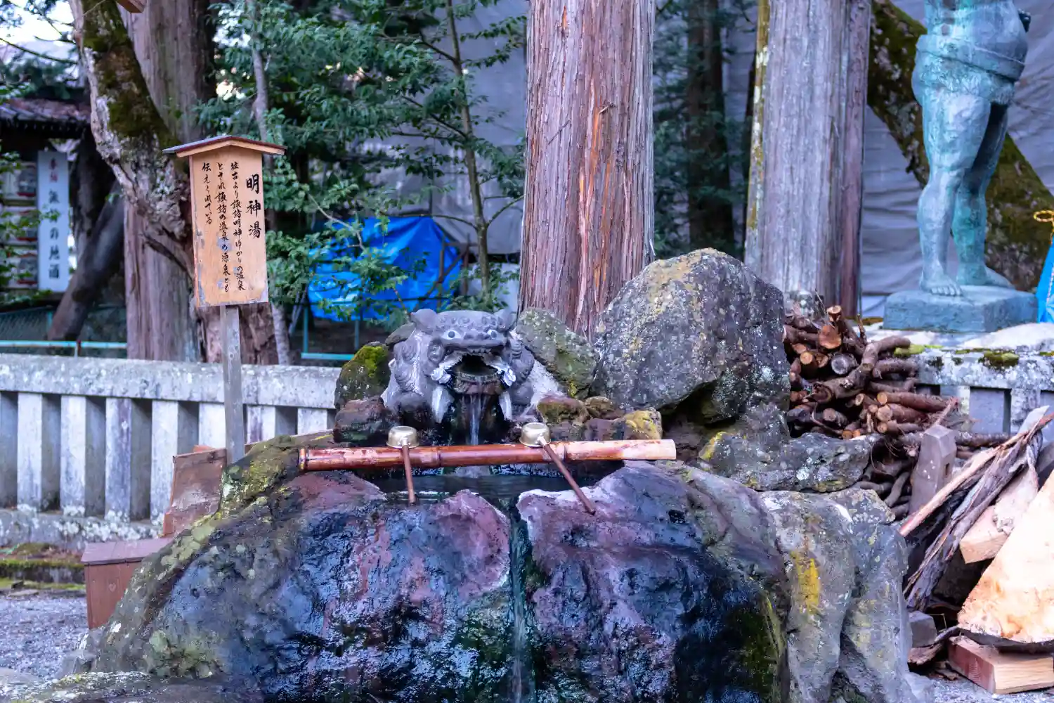 温泉の手水、気温高いので熱め♨️