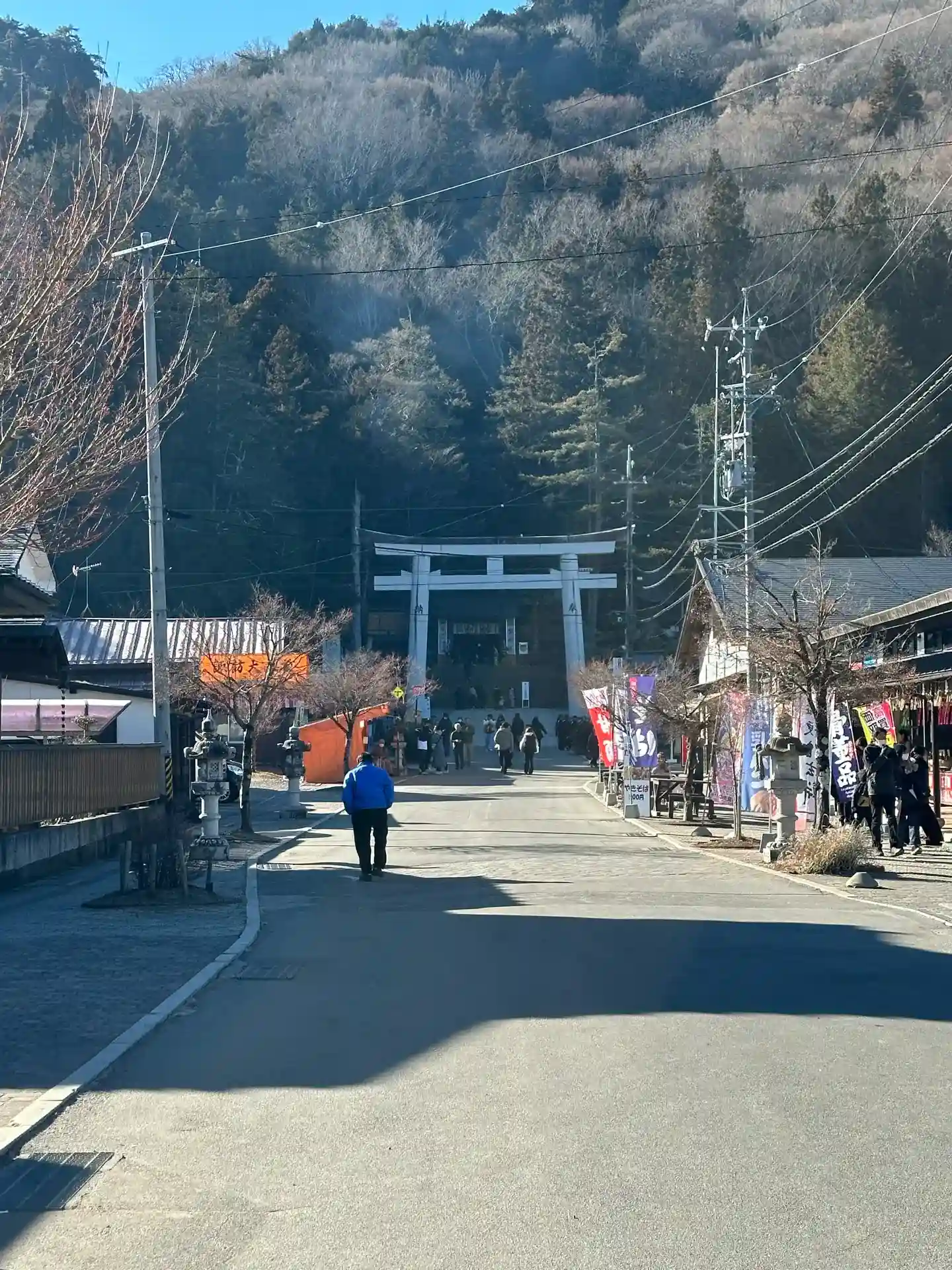 最後は上社本宮へ、一之御柱近くの鳥居からまっすぐ伸びる参道にはお土産物屋や飲食店も並んでおり仲見世のような雰囲気でした。