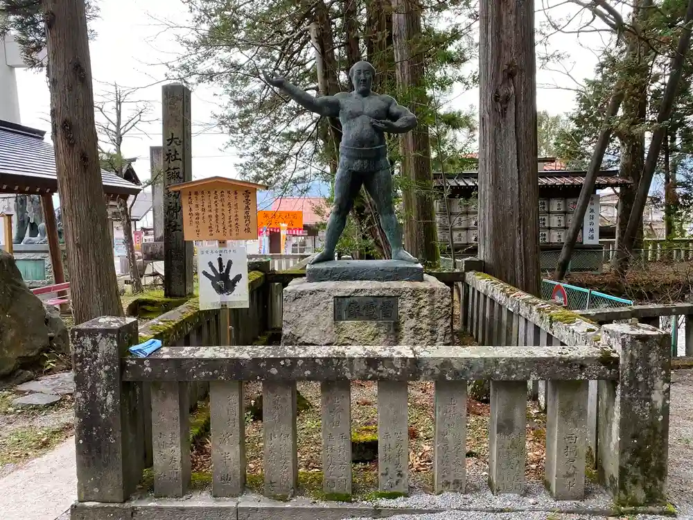 雷電像。幕末に信州小県郡大石村が生んだ名力士。像の前に原寸大の手形があるが、本気でデカい。