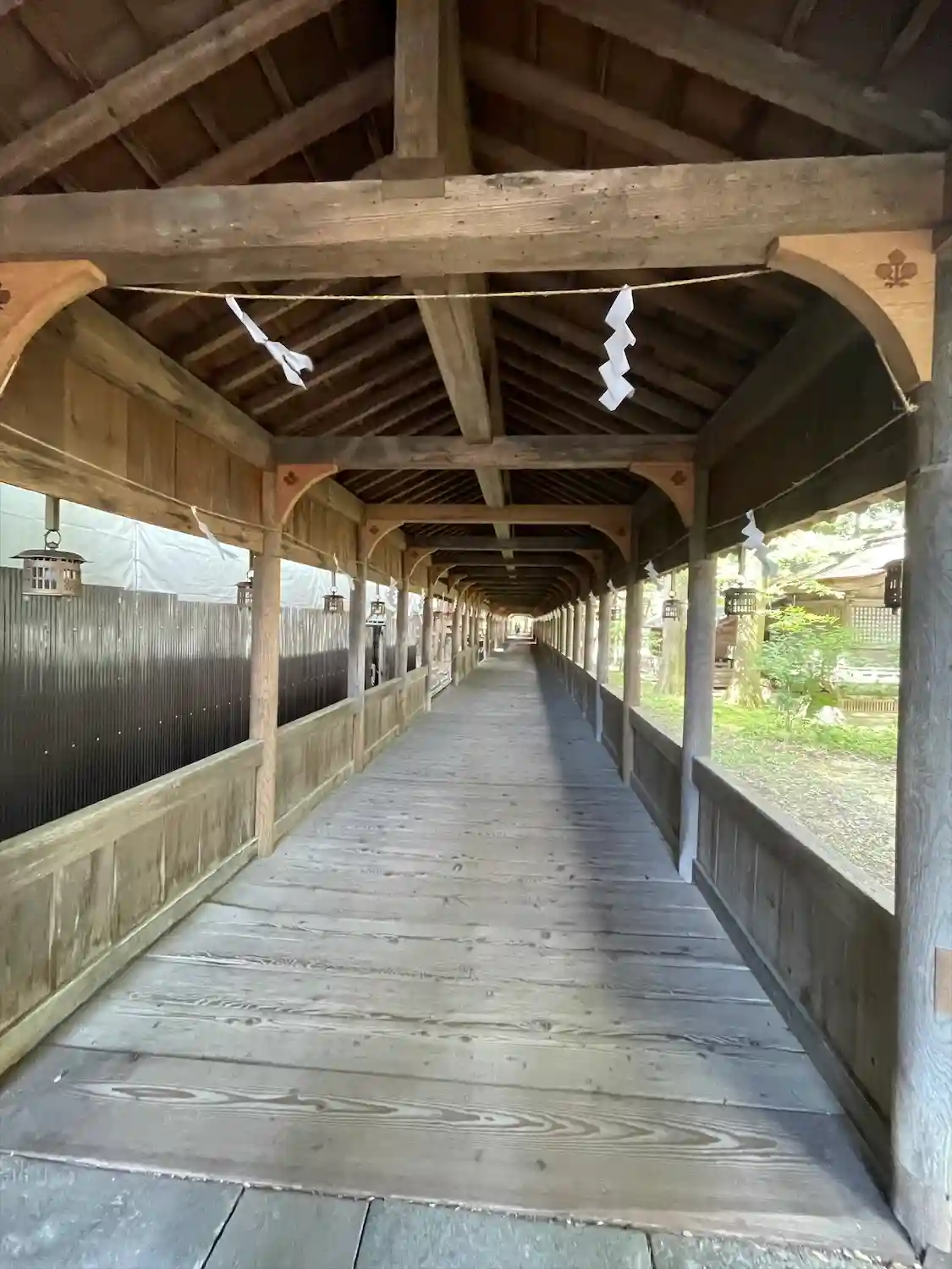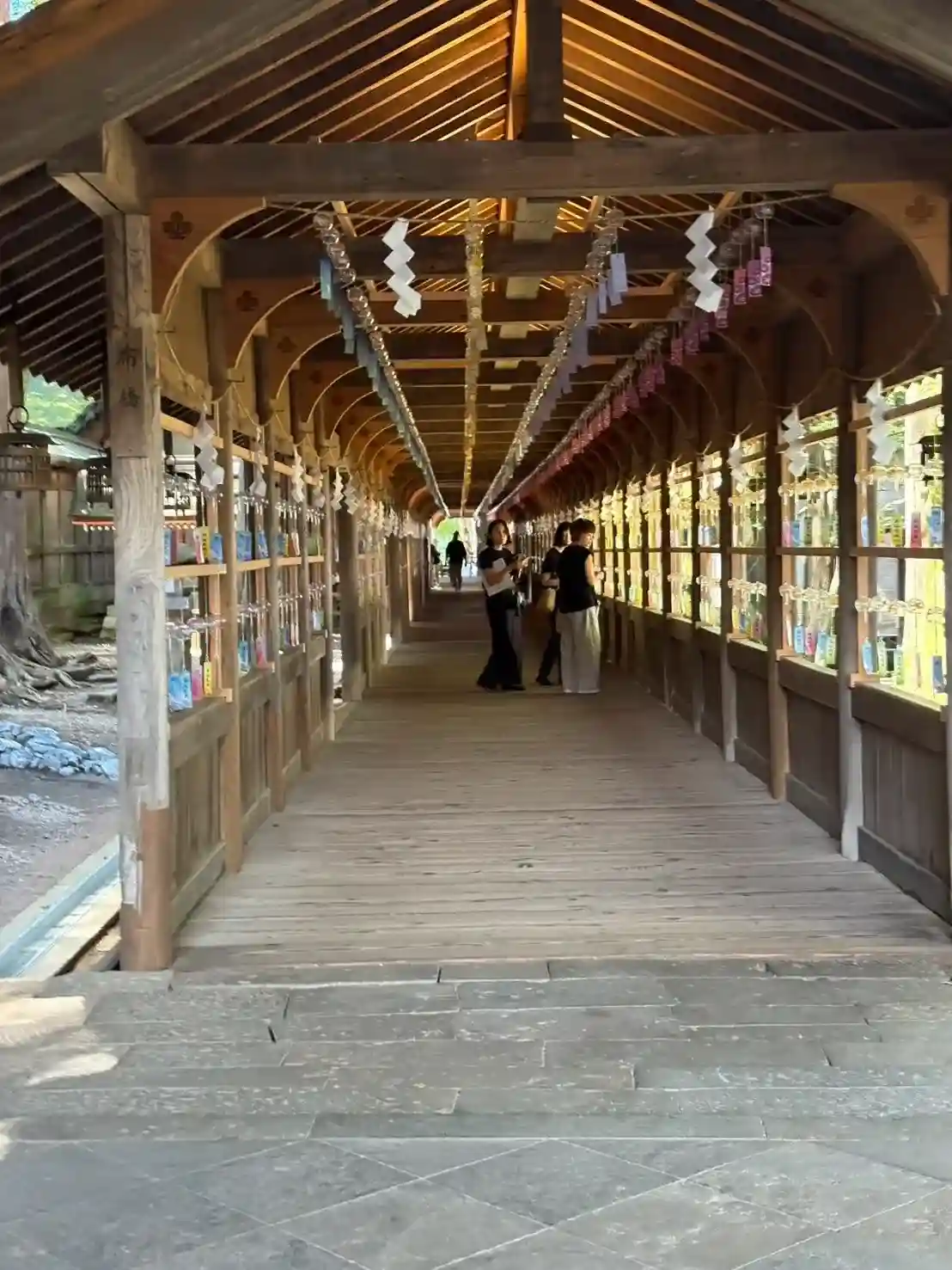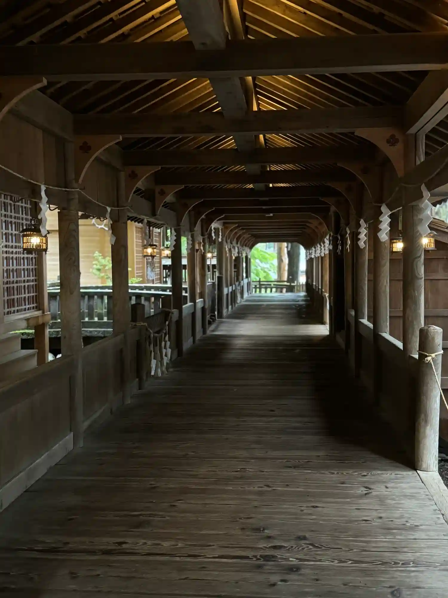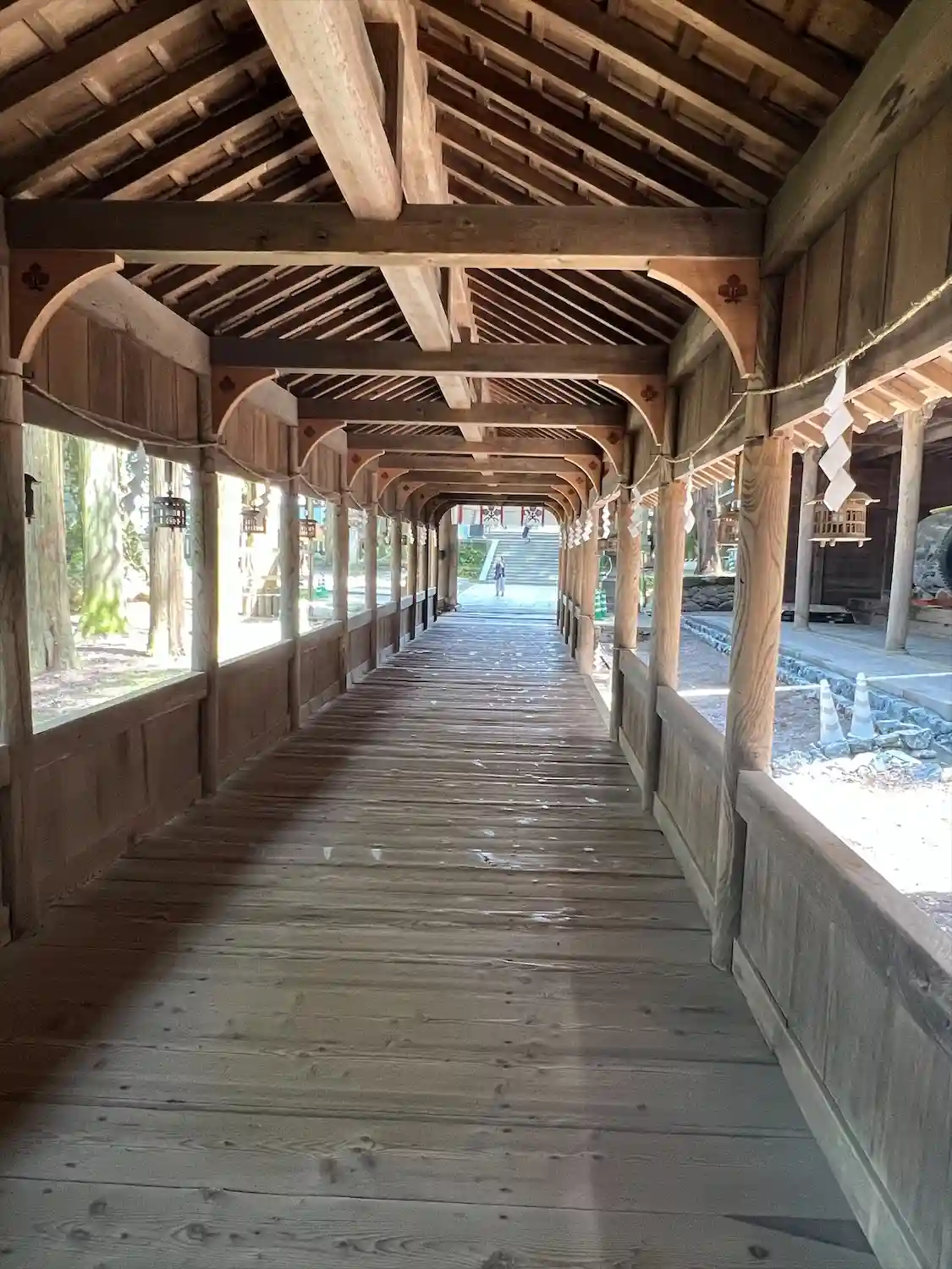 布橋。空間的には外とつながっているはずなのに、ひんやりとしていてなぜだか外とは違う雰囲気が流れています。吉備津神社にも似たような回廊がありましたが、非常に好きです。