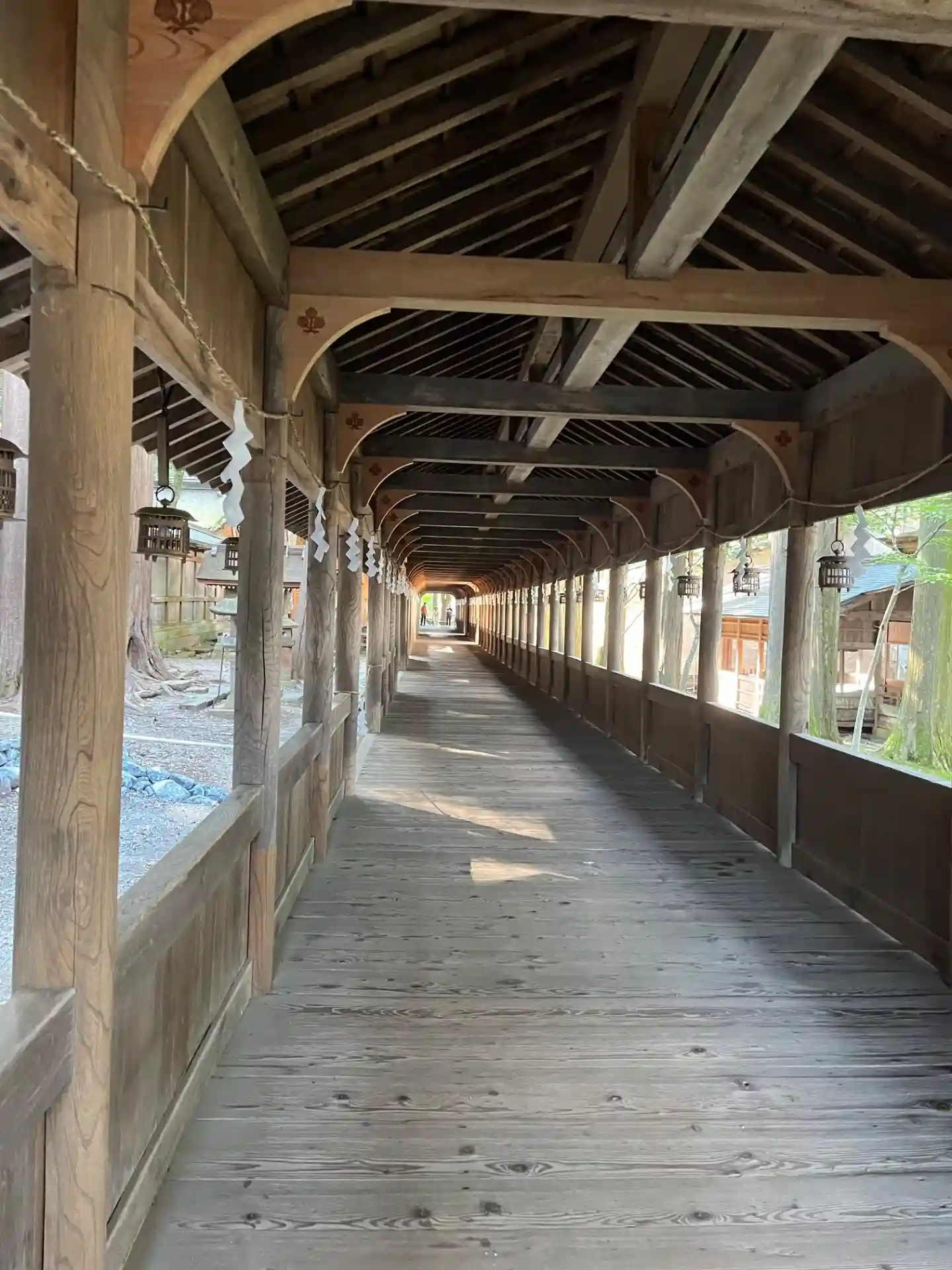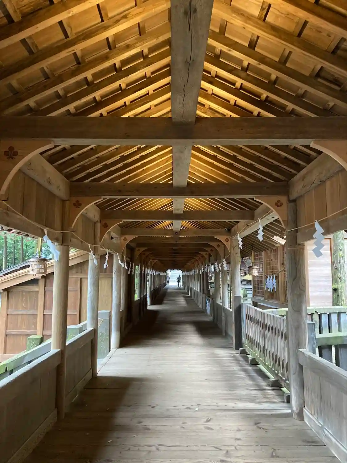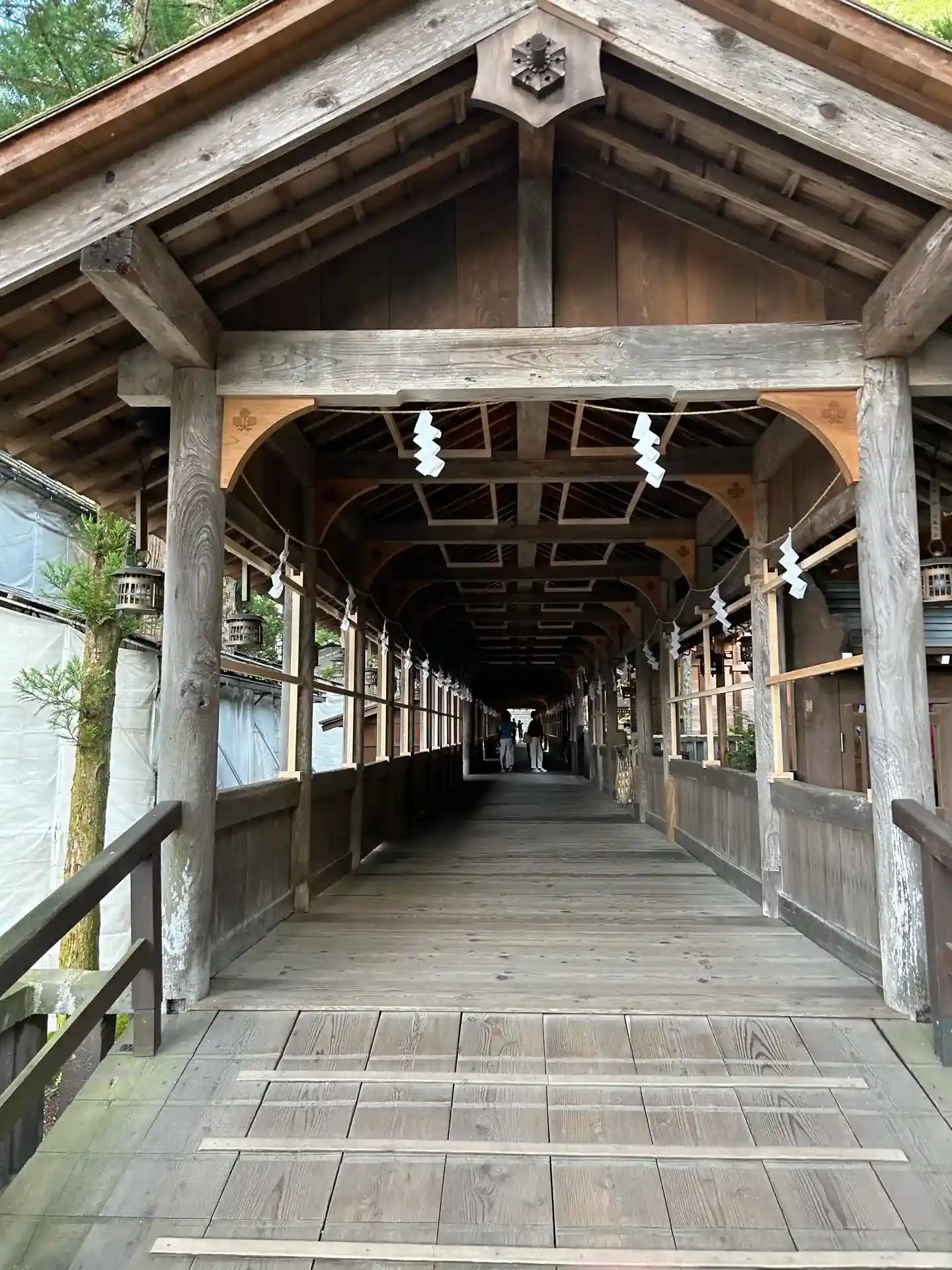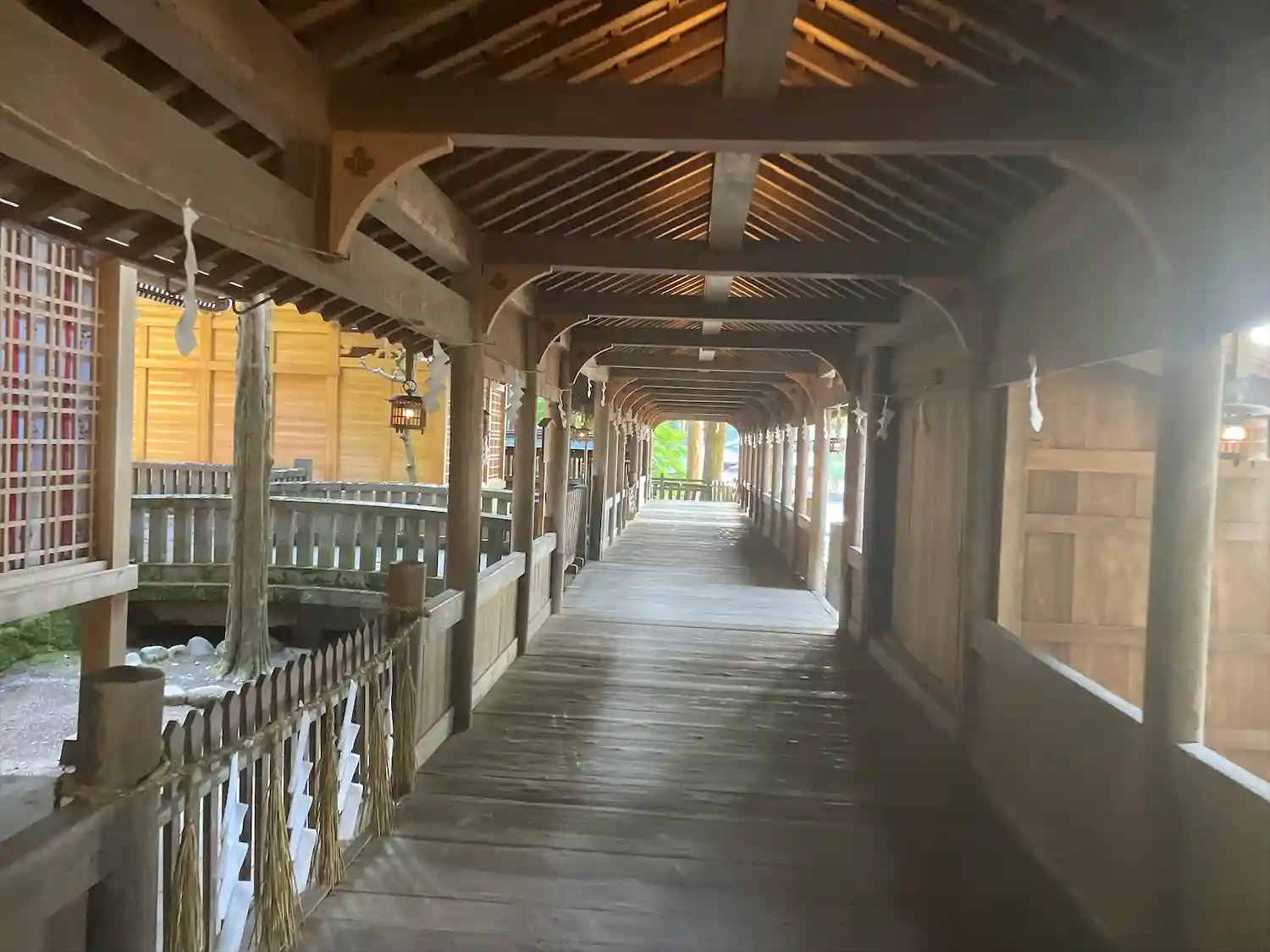 布橋。空間的には外とつながっているはずなのに、ひんやりとしていてなぜだか外とは違う雰囲気が流れています。吉備津神社にも似たような回廊がありましたが、非常に好きです。