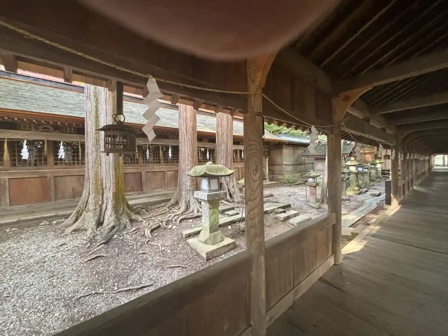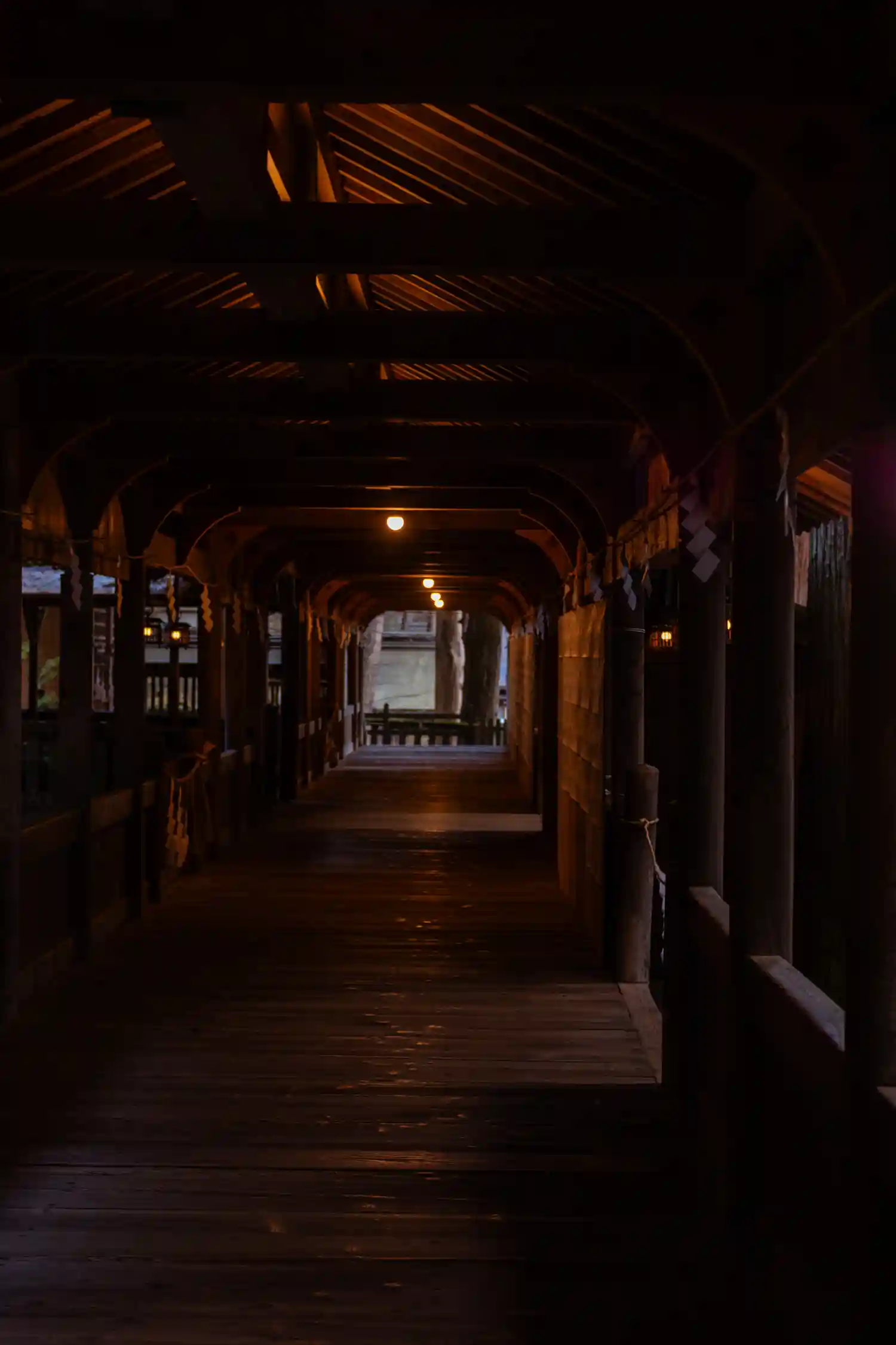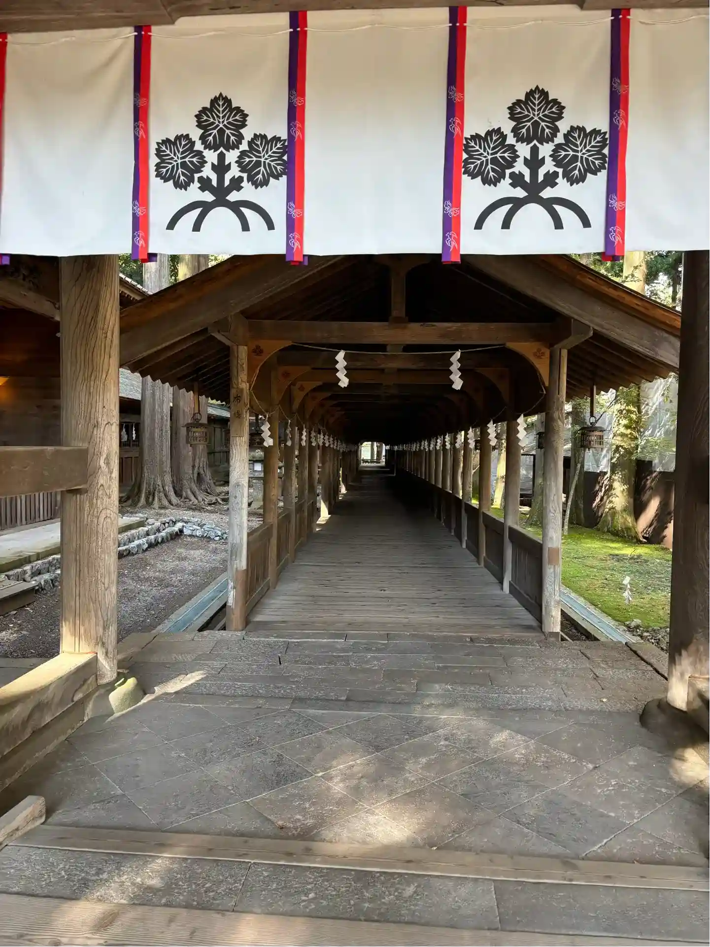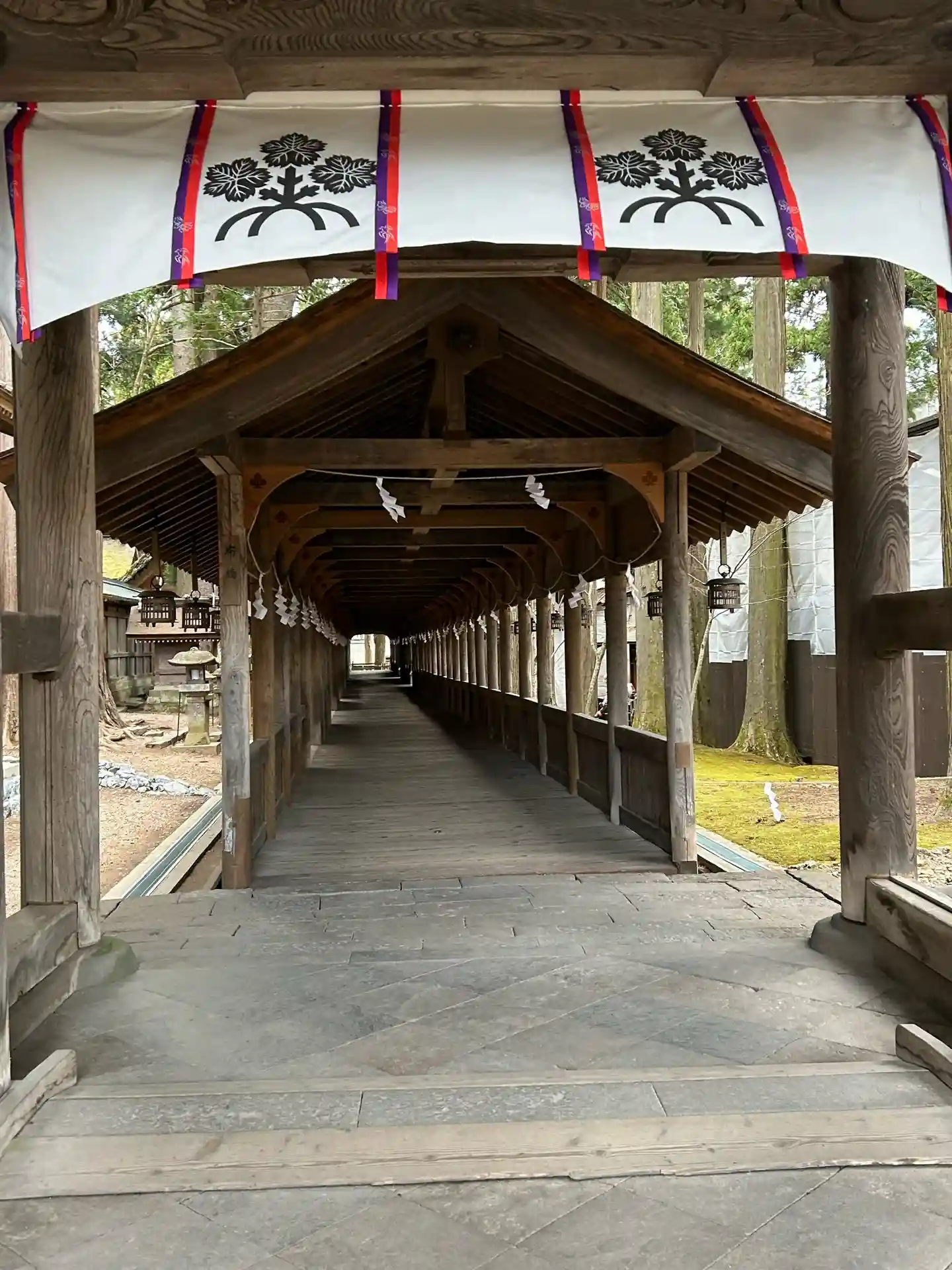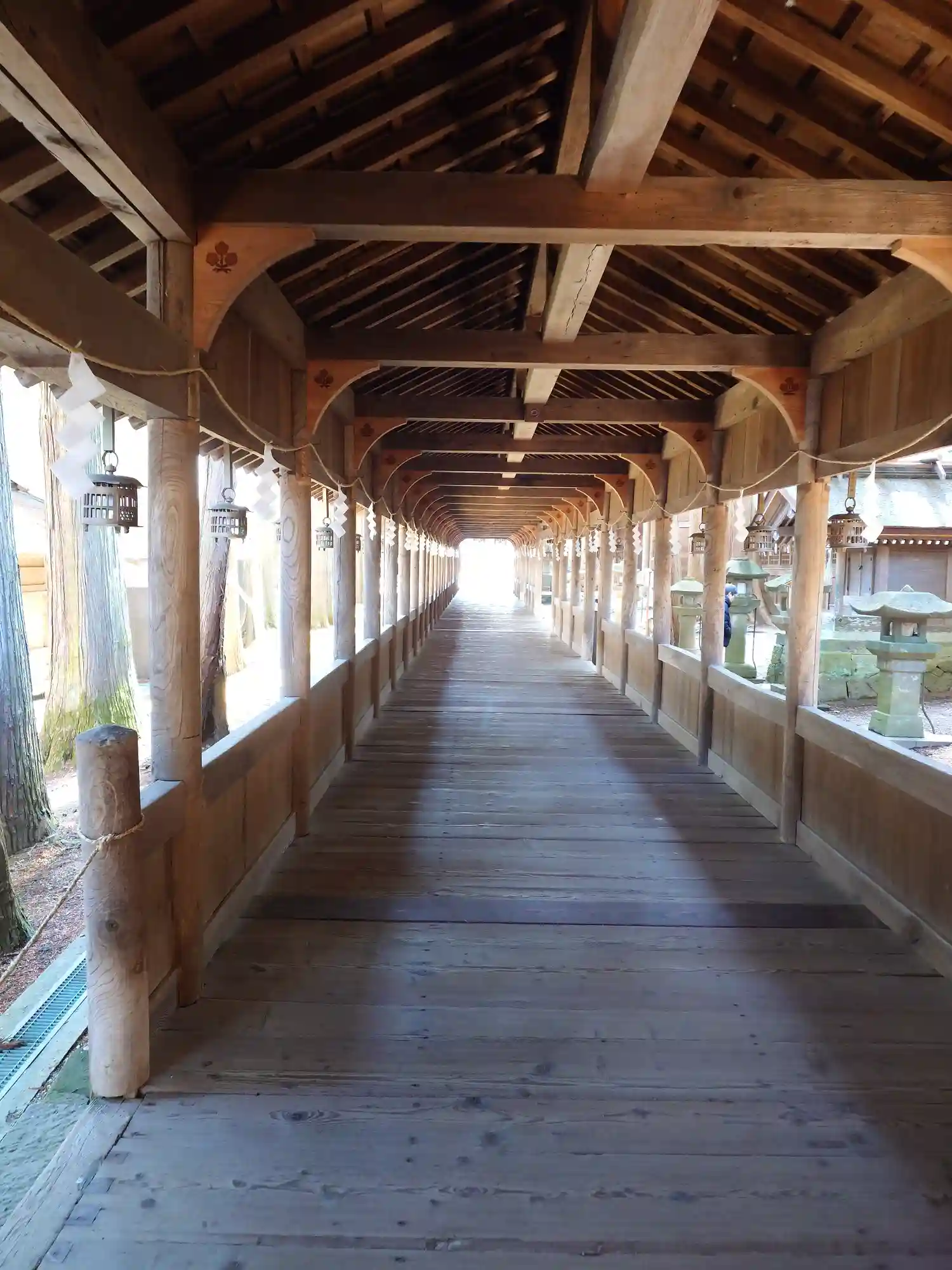 布橋。空間的には外とつながっているはずなのに、ひんやりとしていてなぜだか外とは違う雰囲気が流れています。吉備津神社にも似たような回廊がありましたが、非常に好きです。