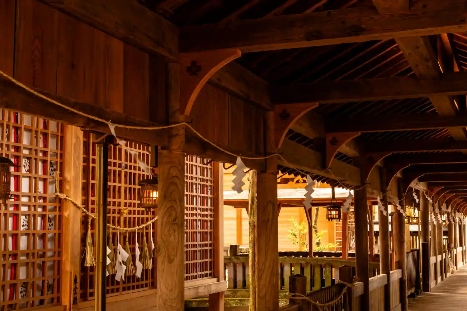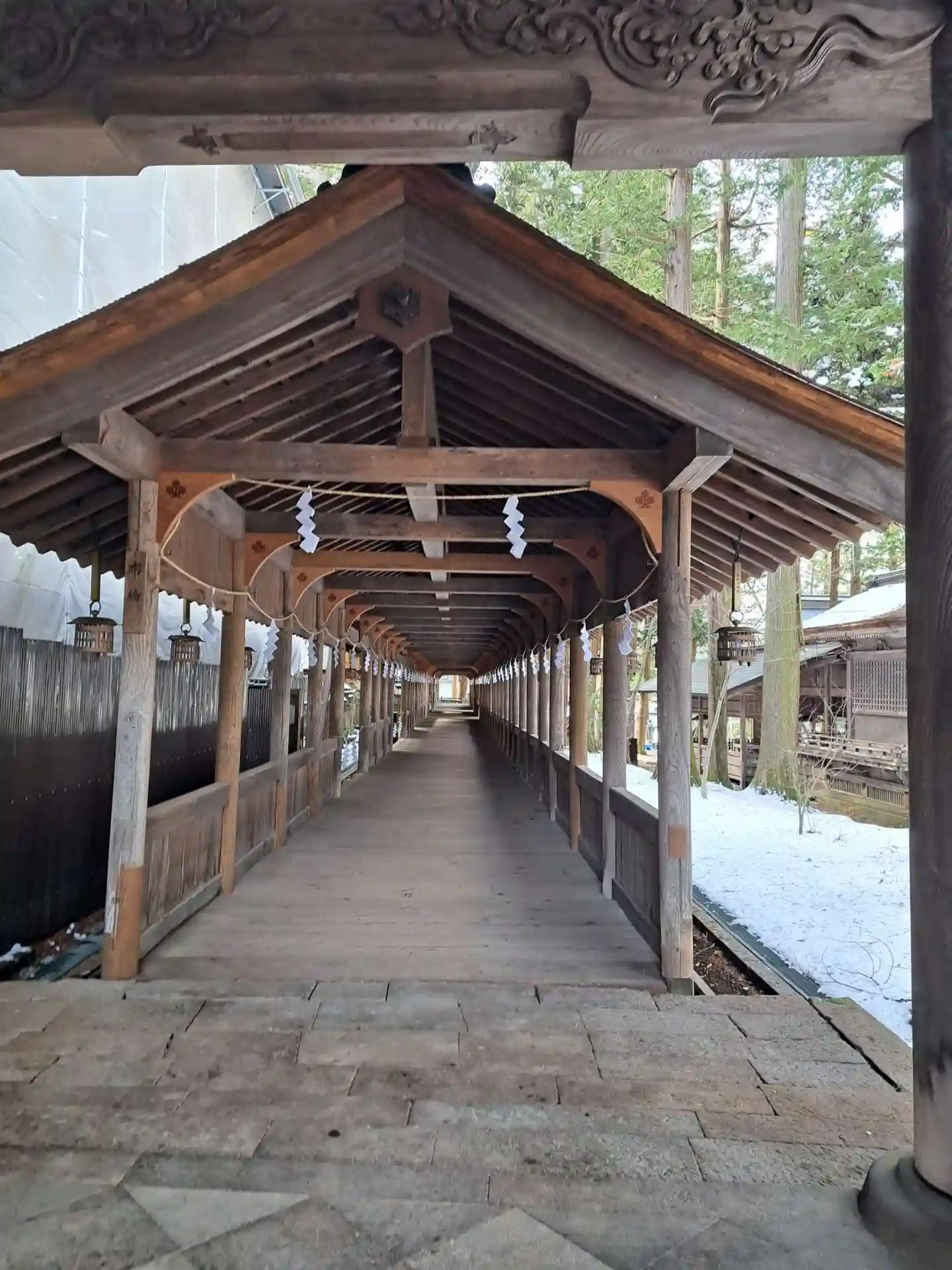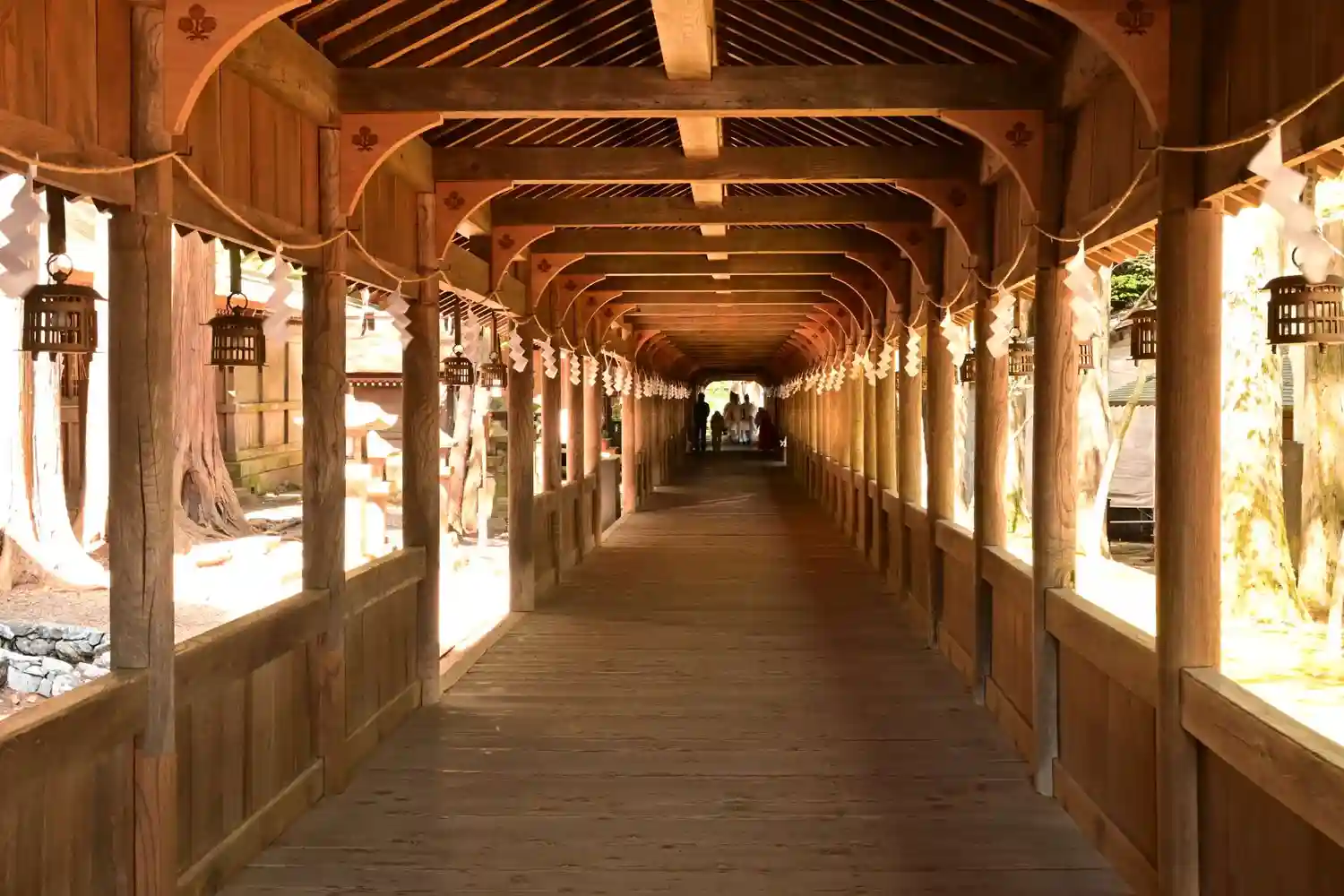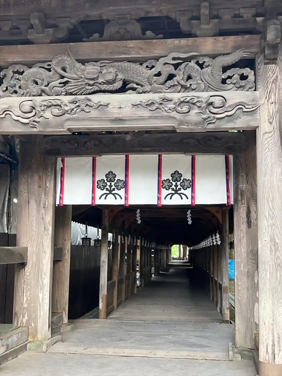 布橋。空間的には外とつながっているはずなのに、ひんやりとしていてなぜだか外とは違う雰囲気が流れています。吉備津神社にも似たような回廊がありましたが、非常に好きです。