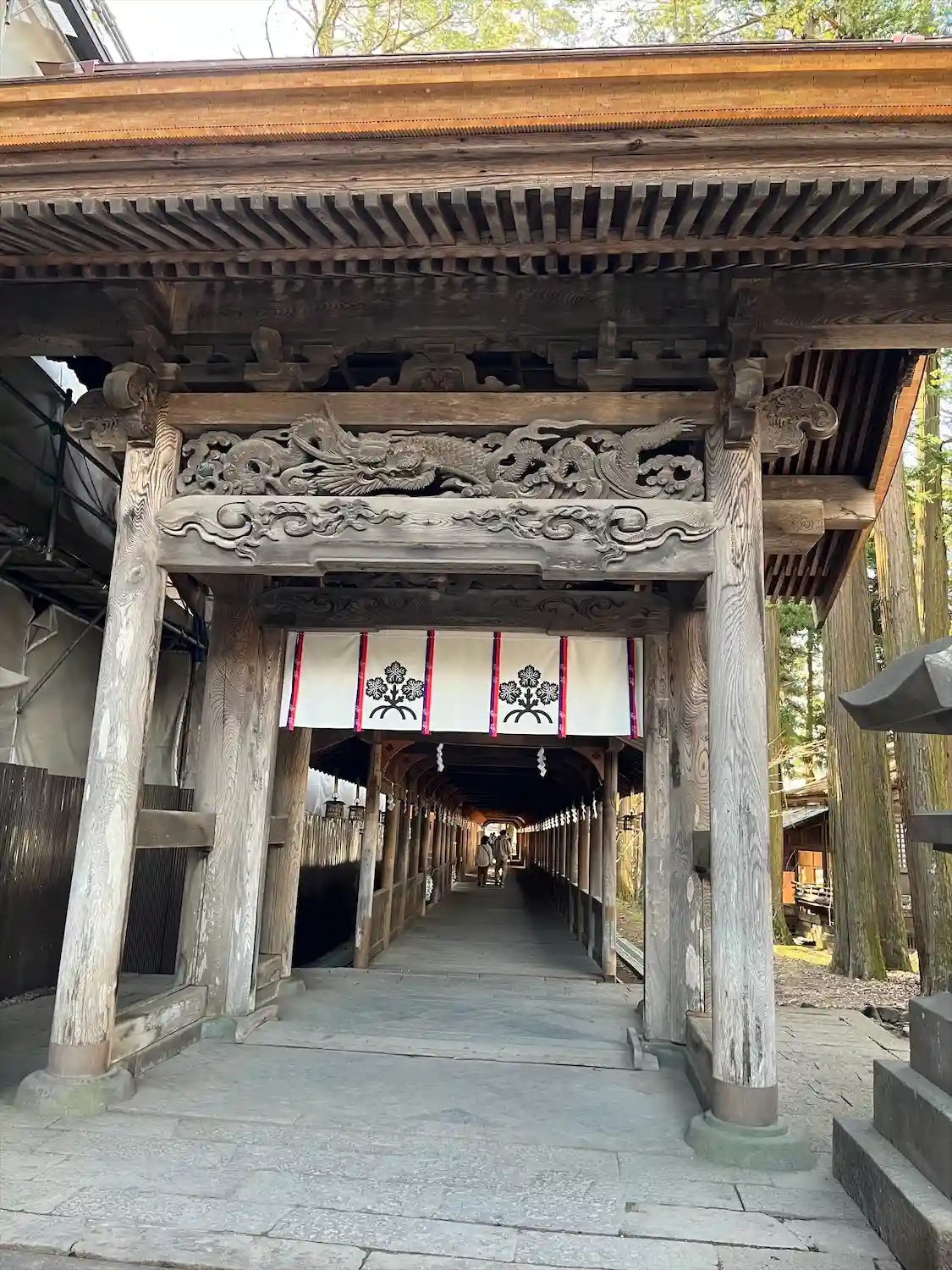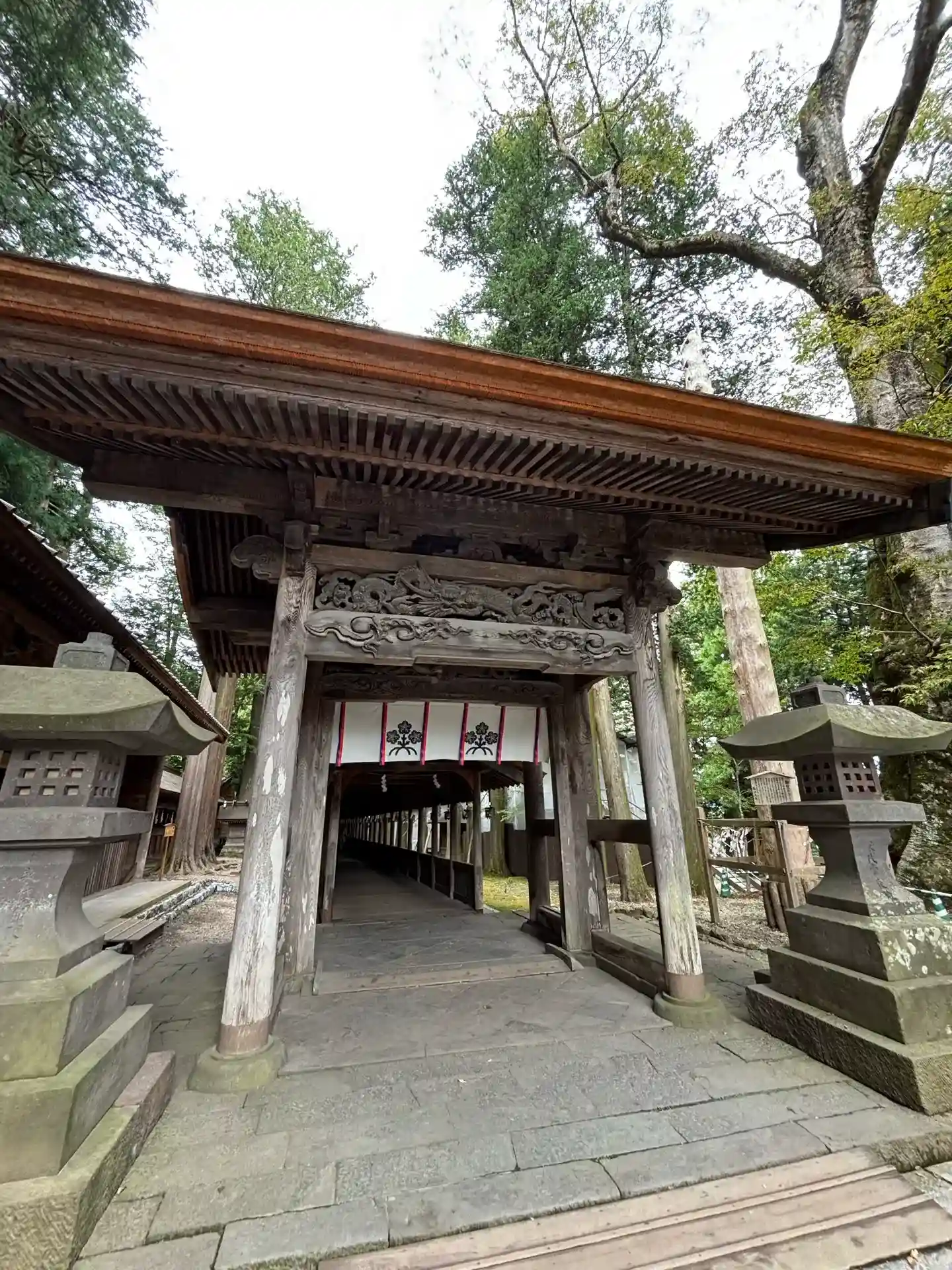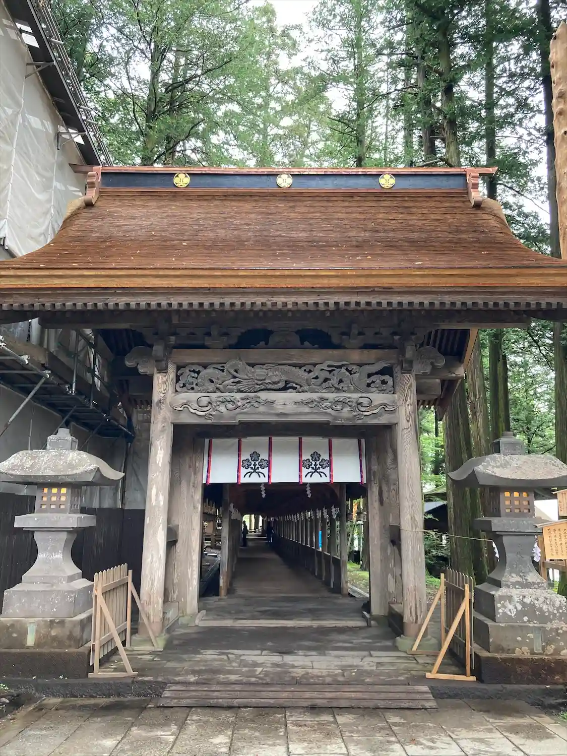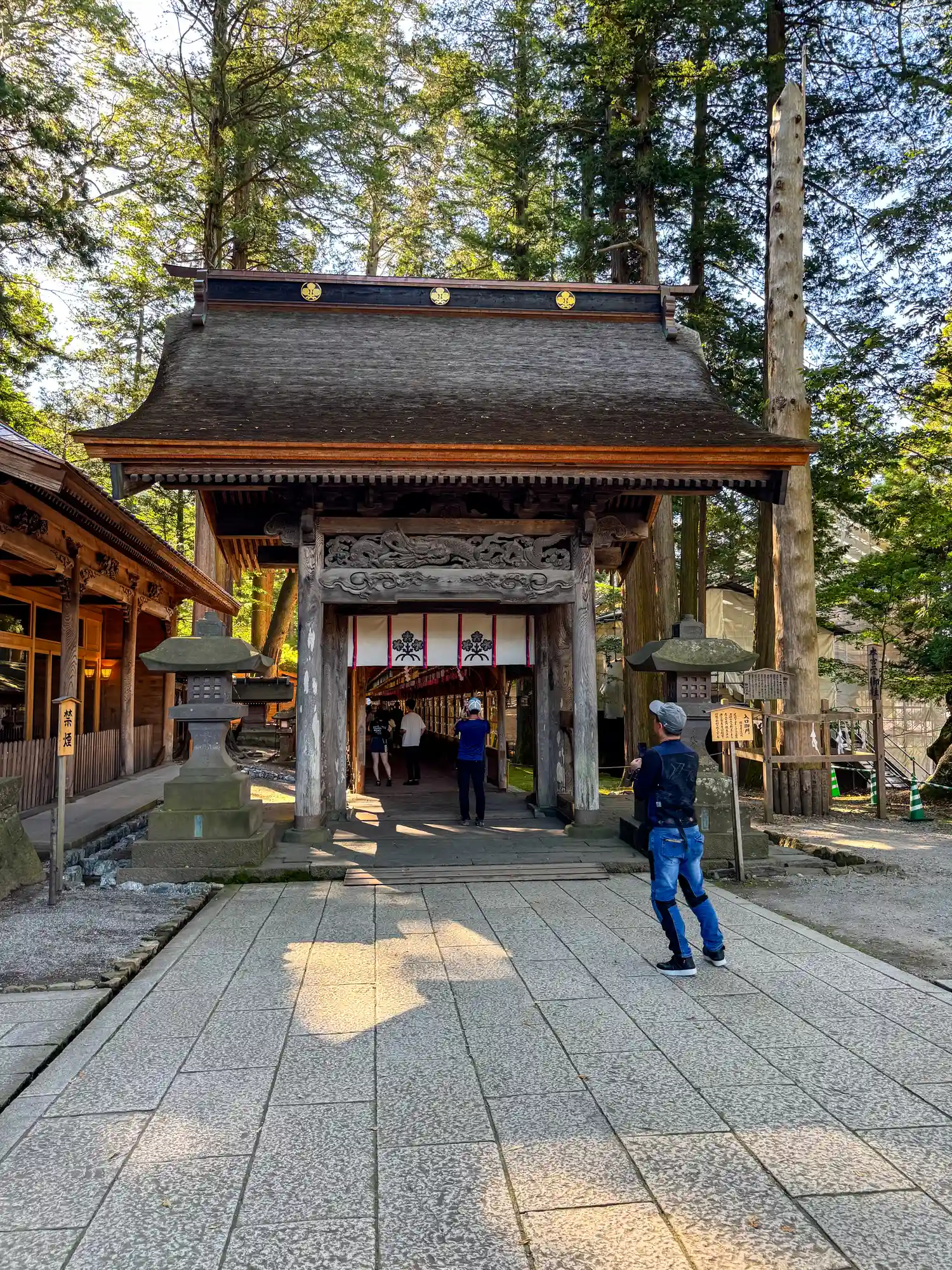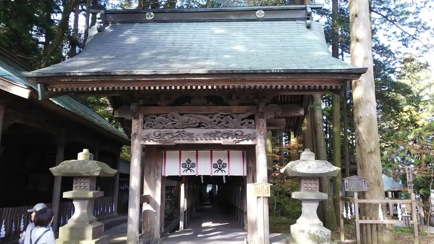 入口御門。回廊を経て拝殿へと続きます。非常に豪華な彫刻がほどこされています。