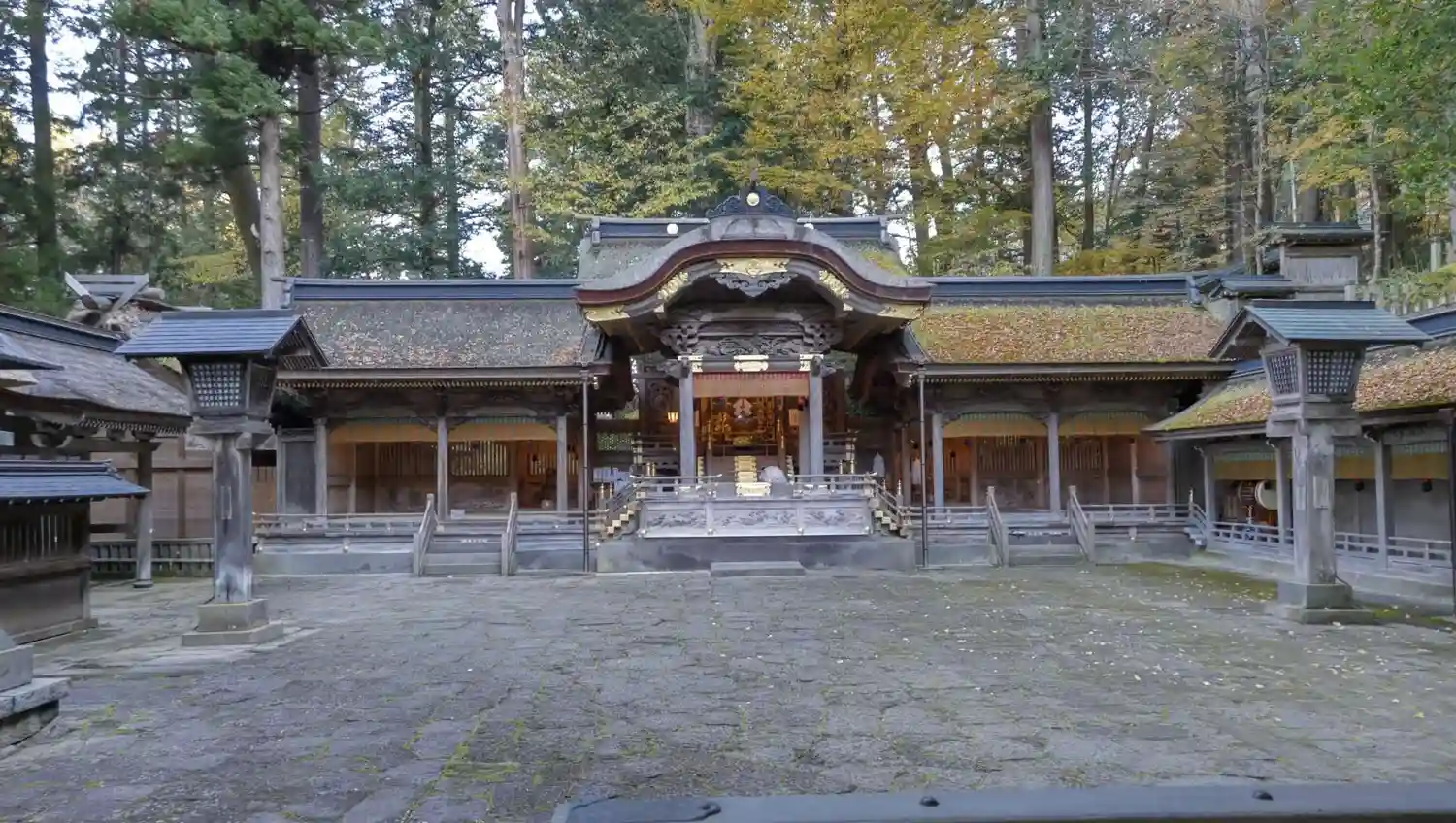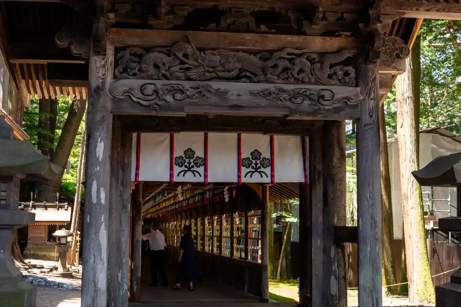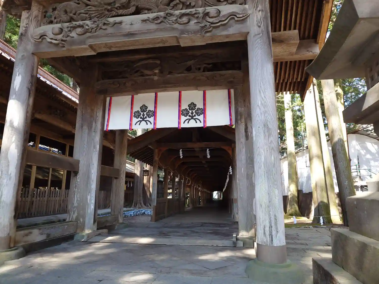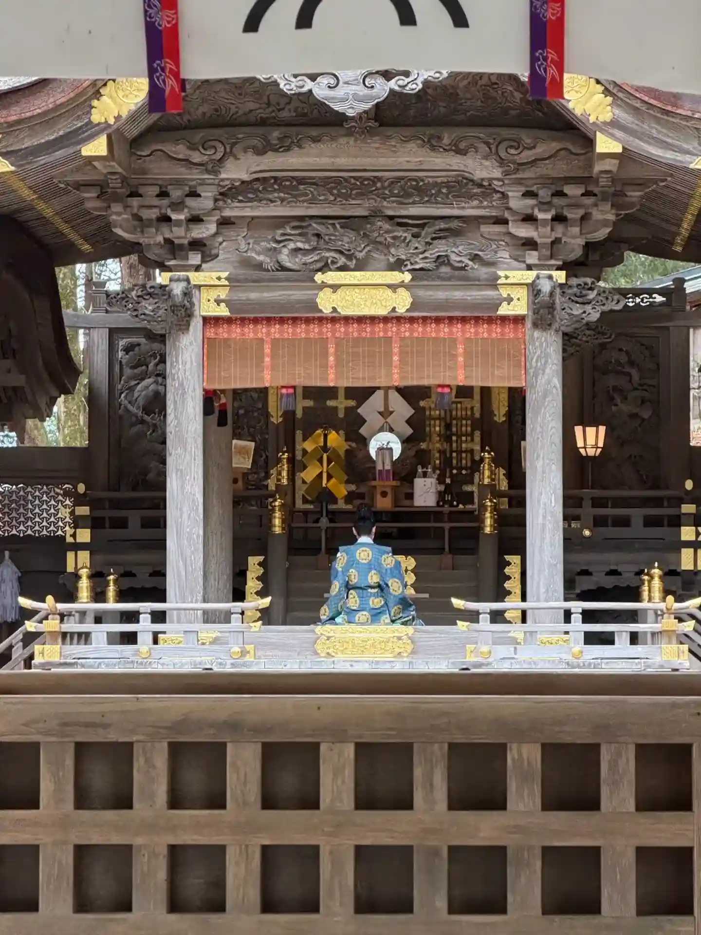 入口御門。回廊を経て拝殿へと続きます。非常に豪華な彫刻がほどこされています。