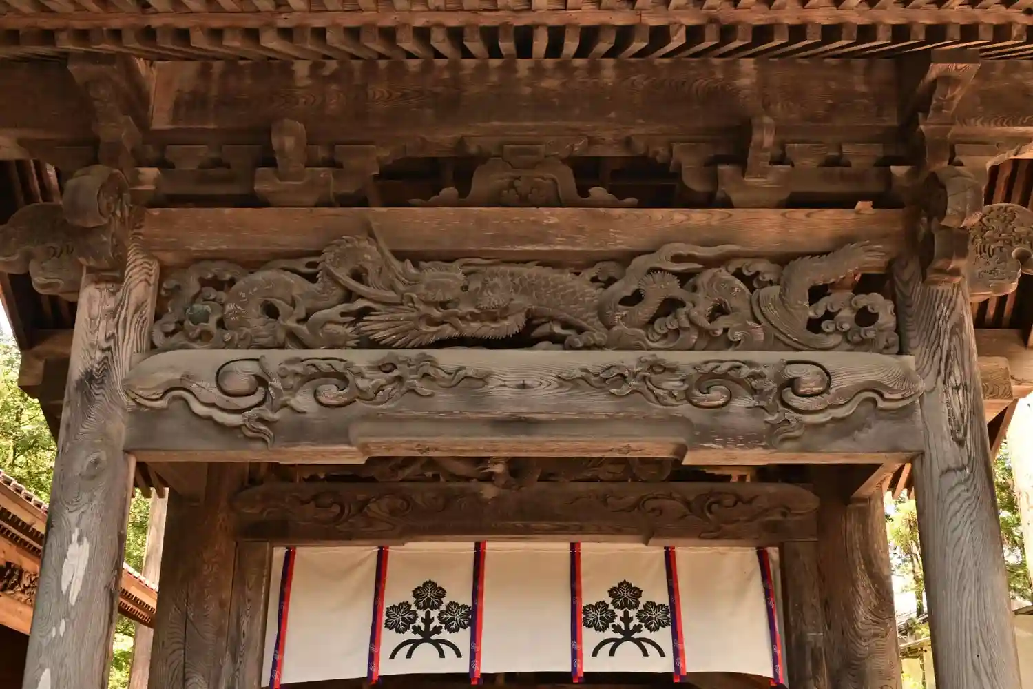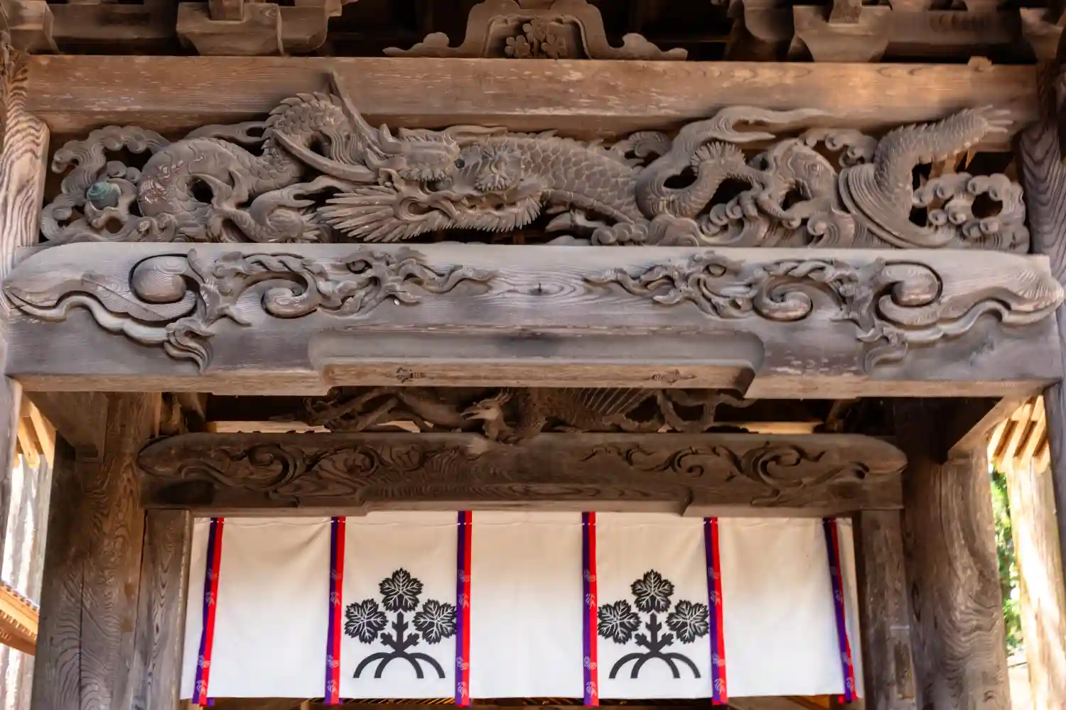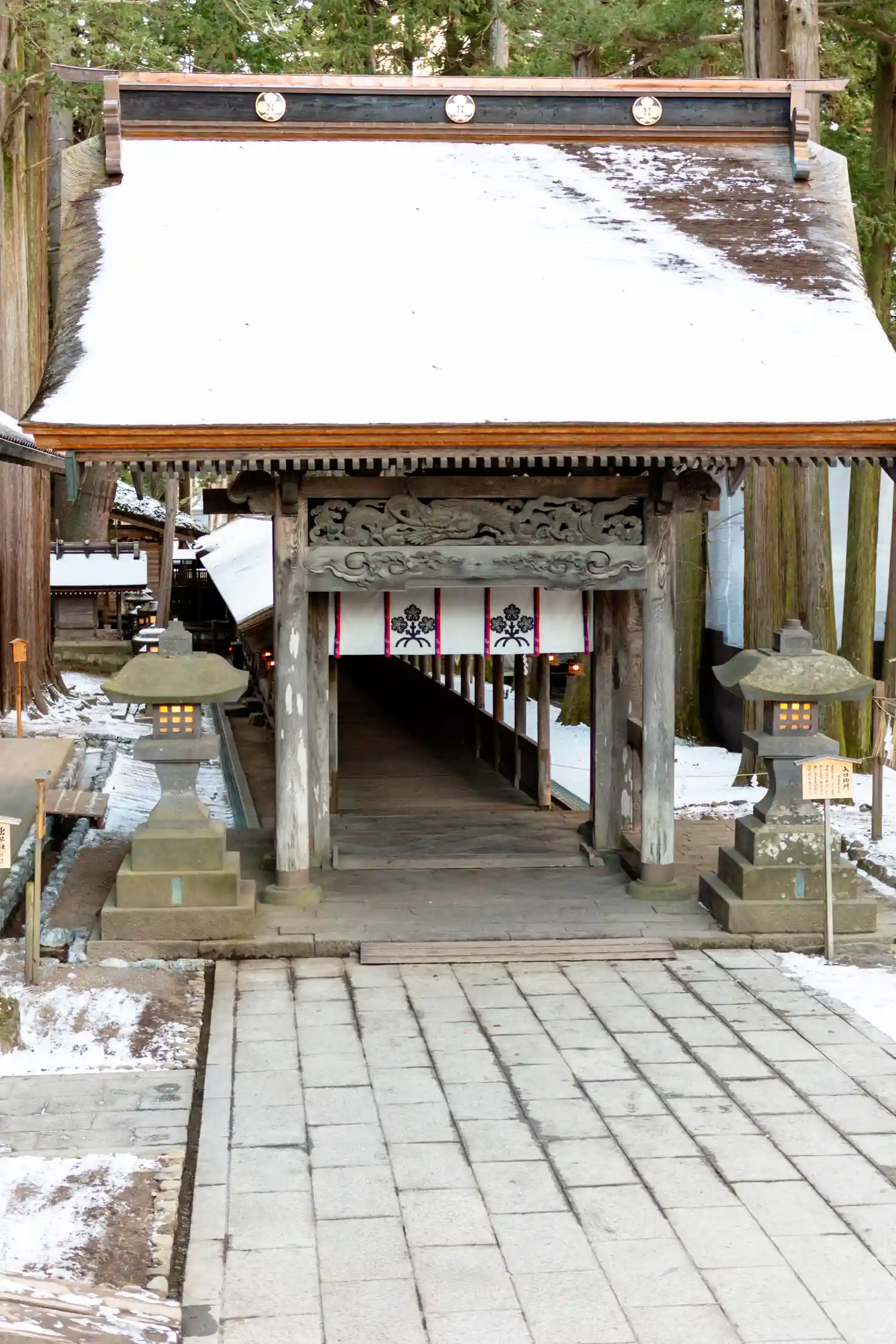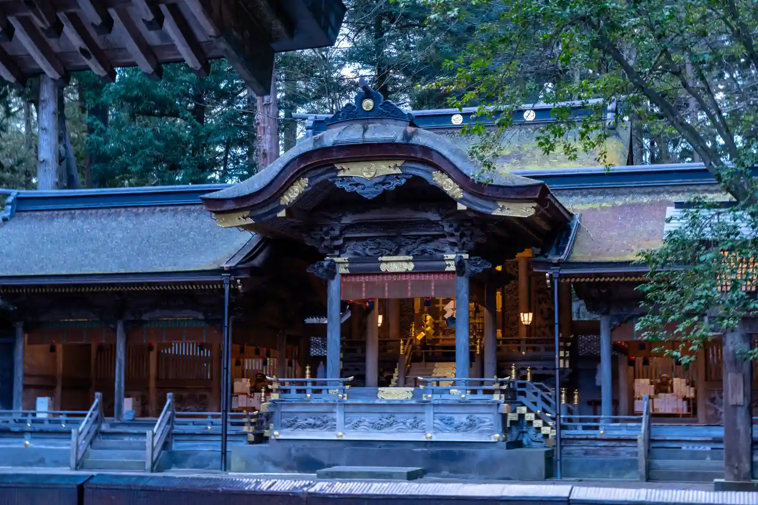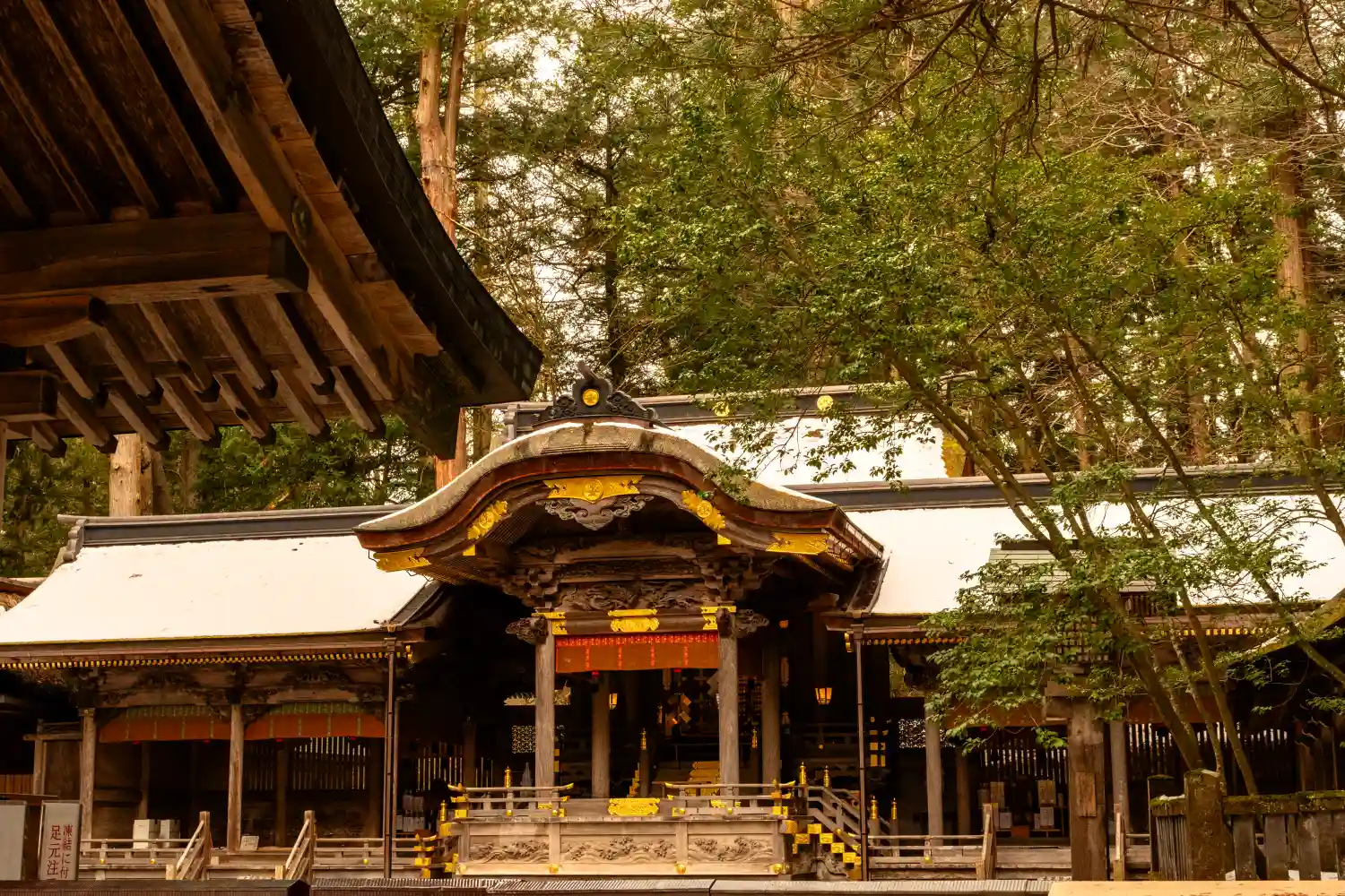 入口御門。回廊を経て拝殿へと続きます。非常に豪華な彫刻がほどこされています。