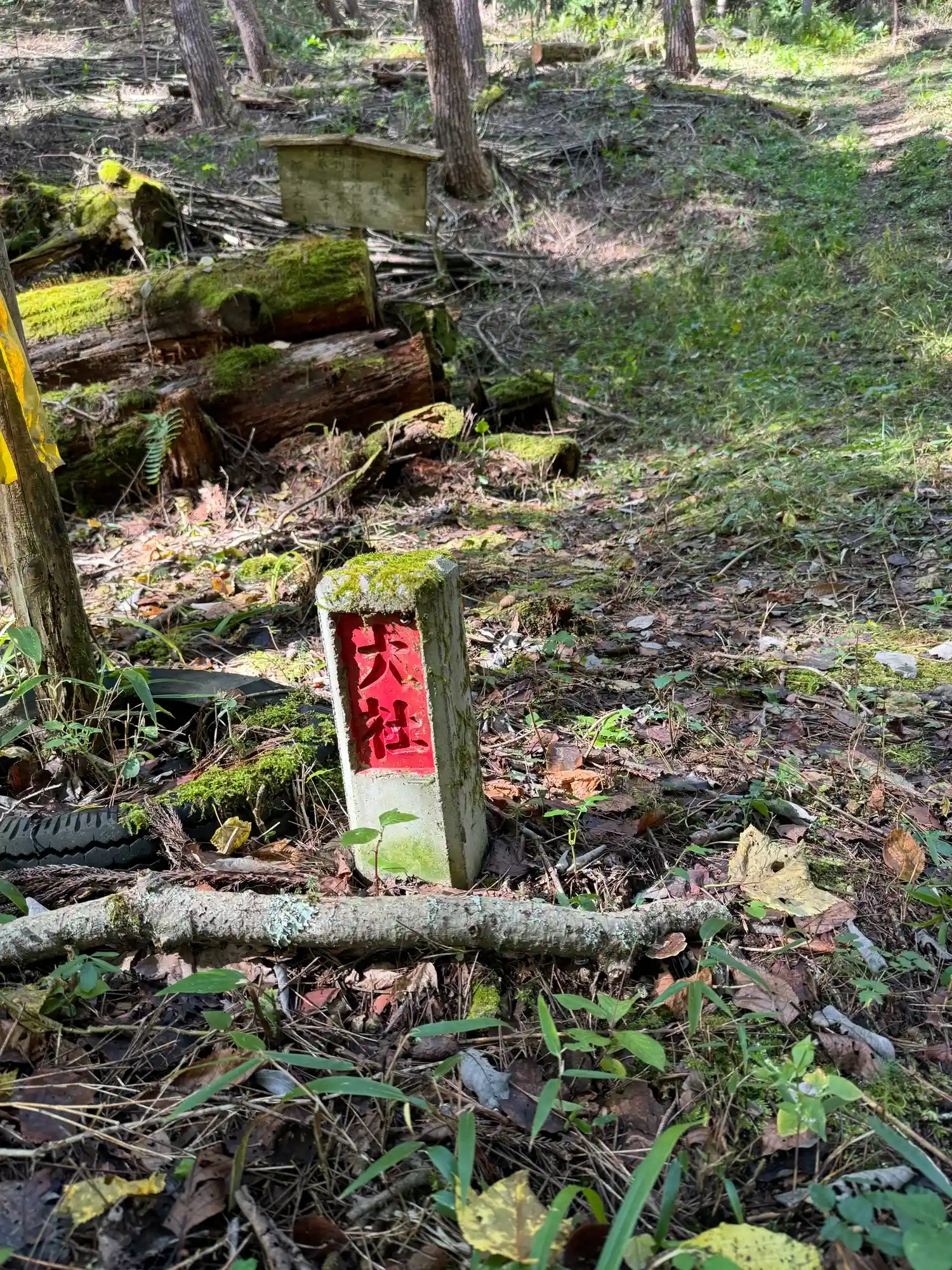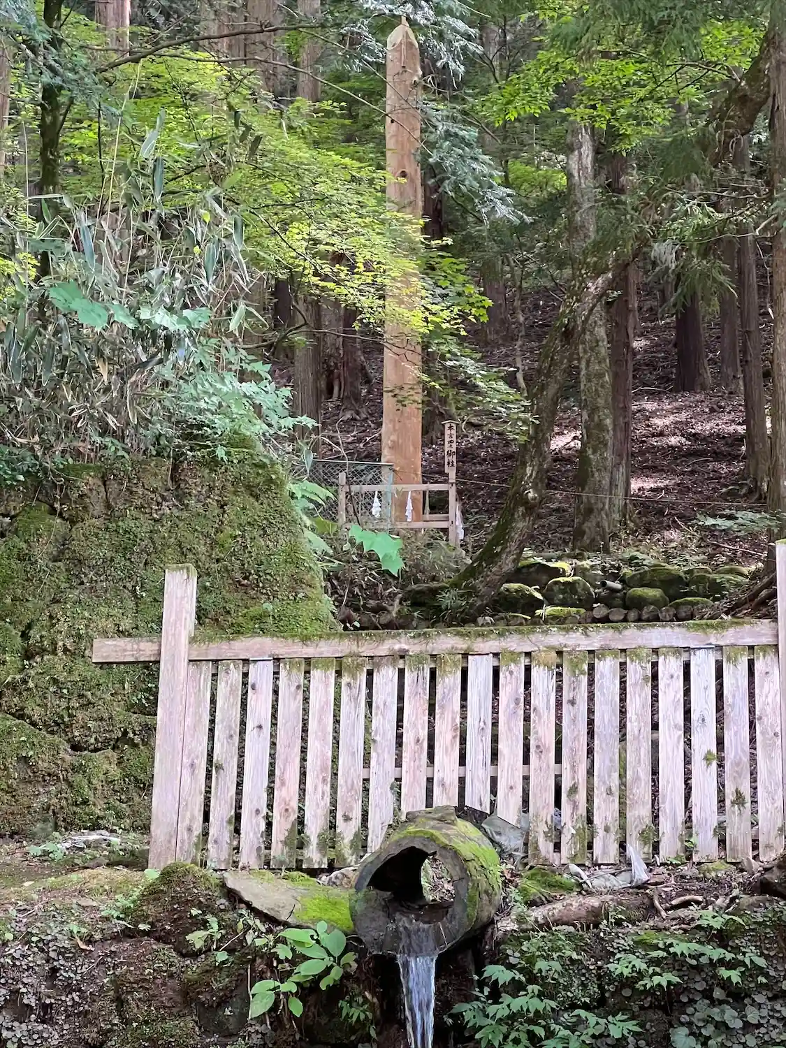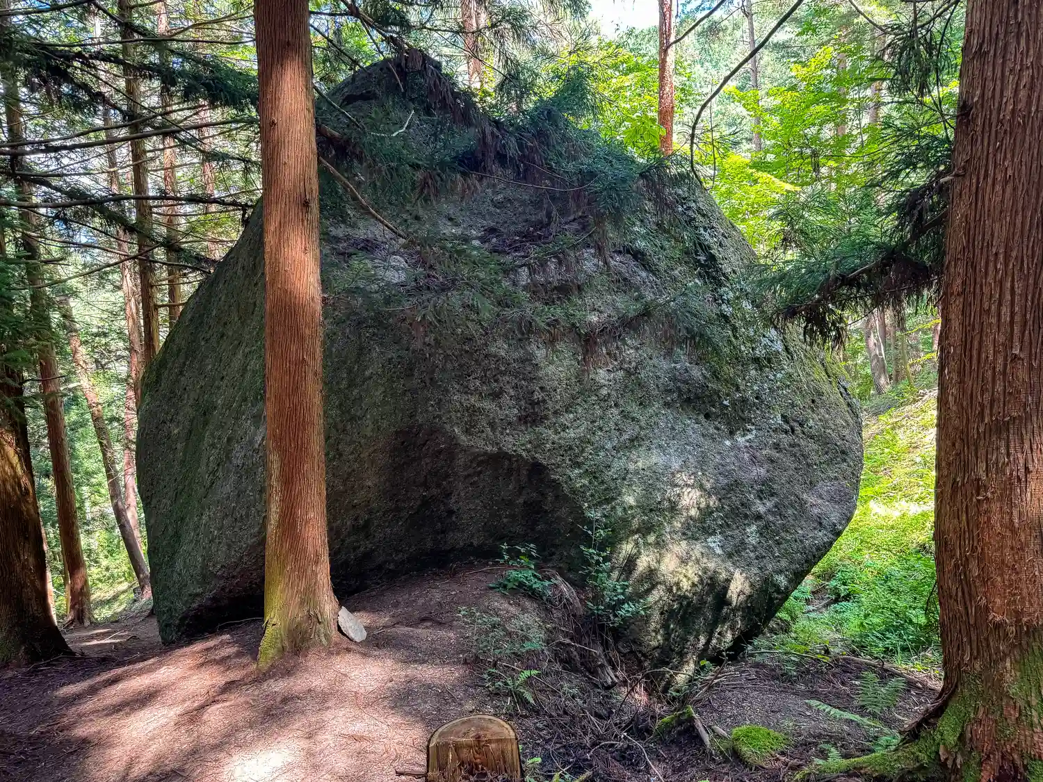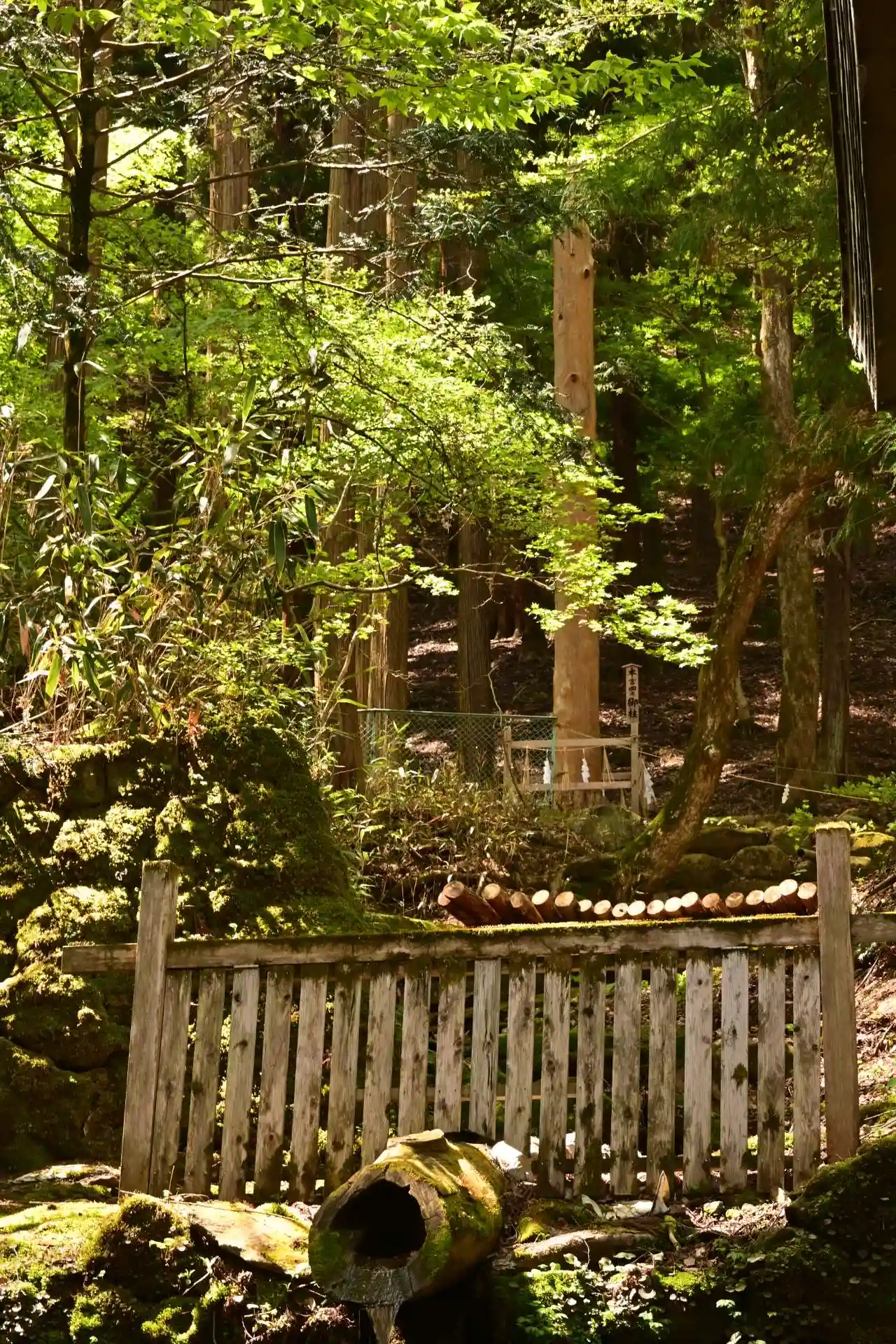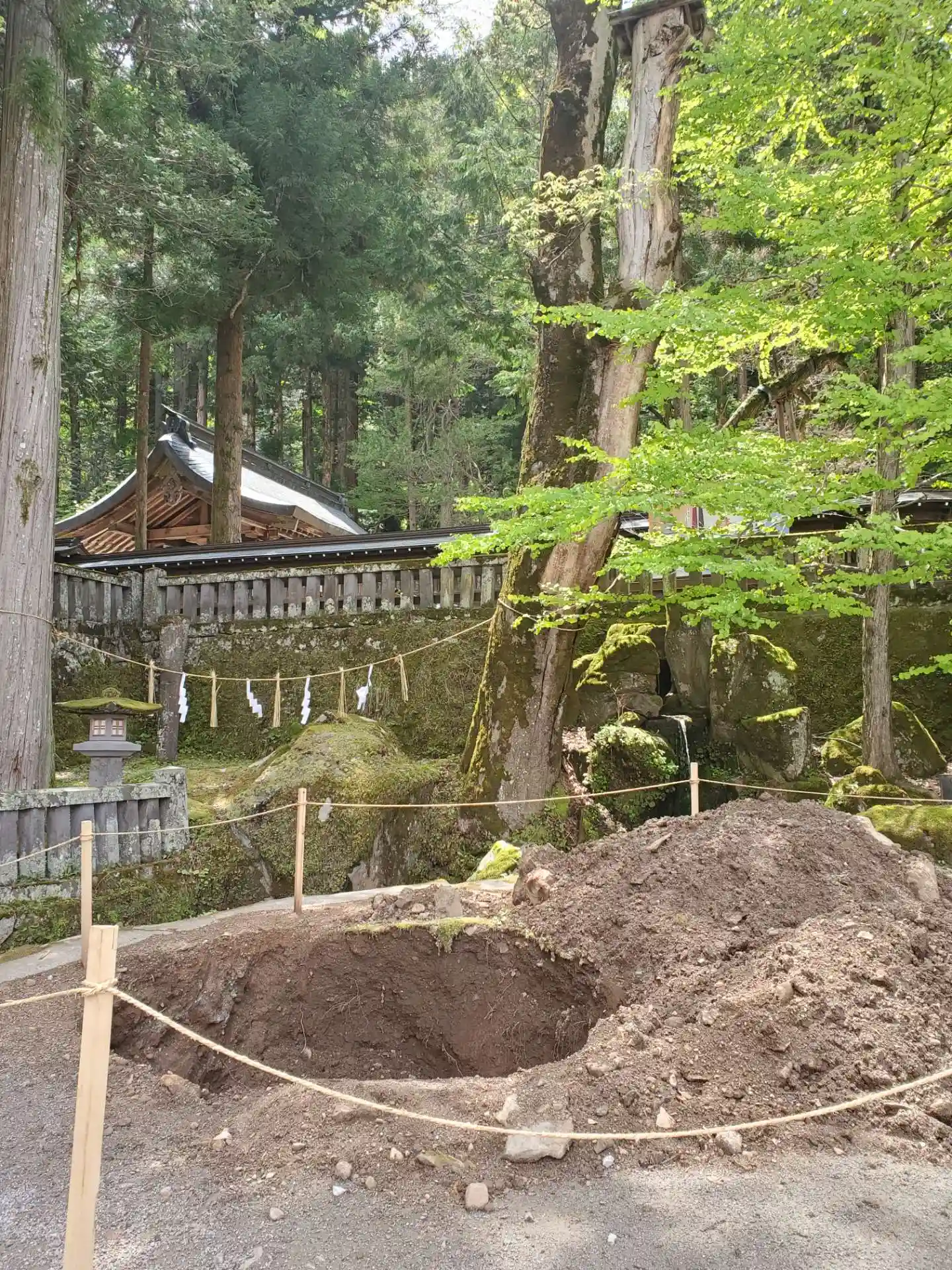 一の柱。樅(モミ)の木。ここから時計回りに神域を囲むように4本建てられる。