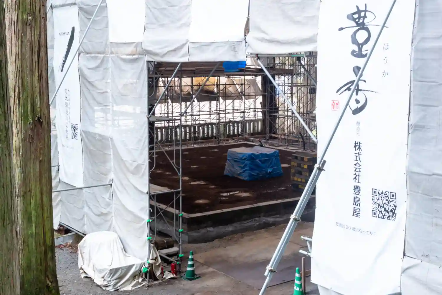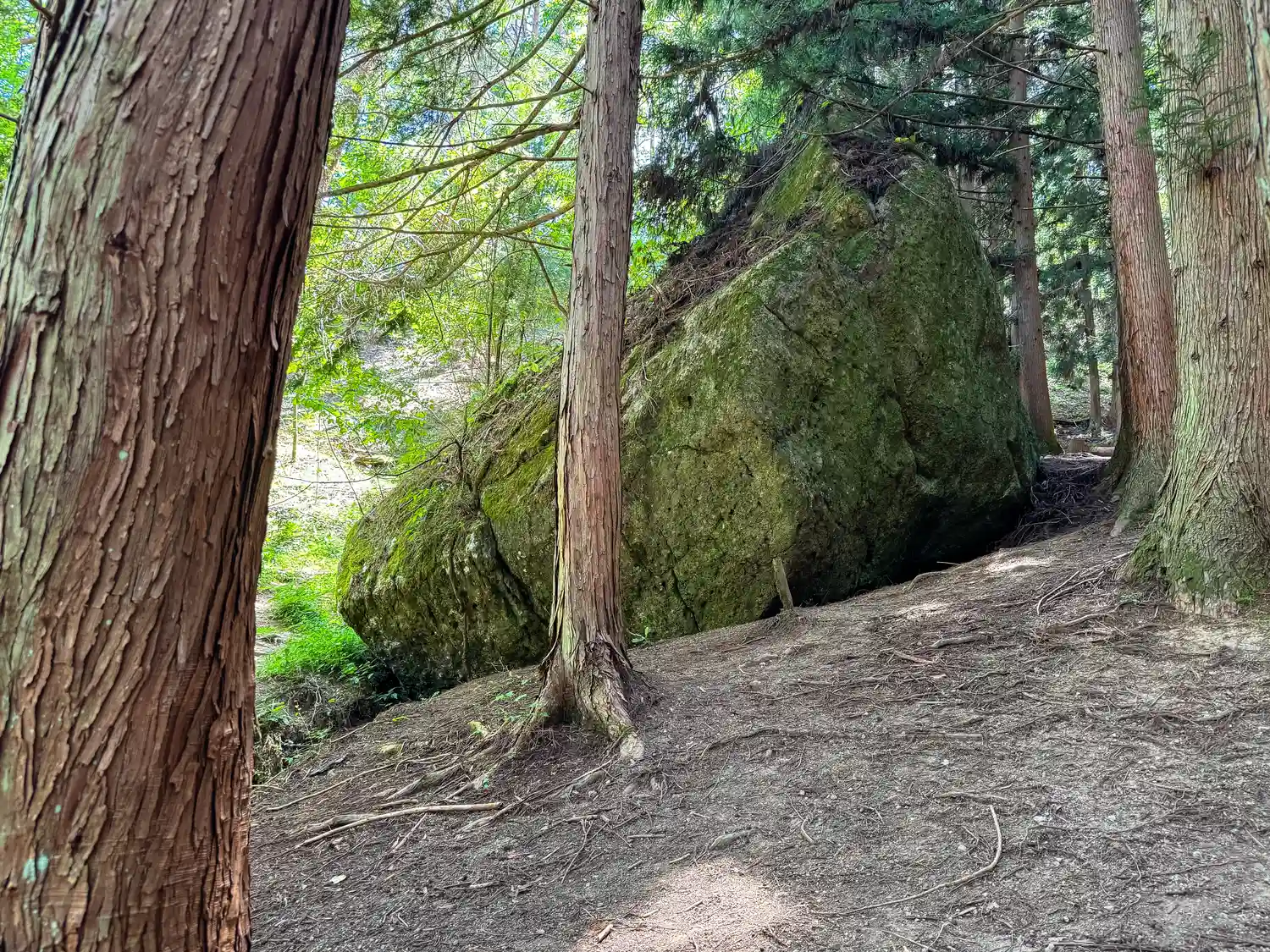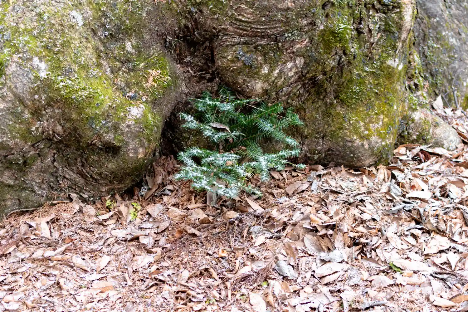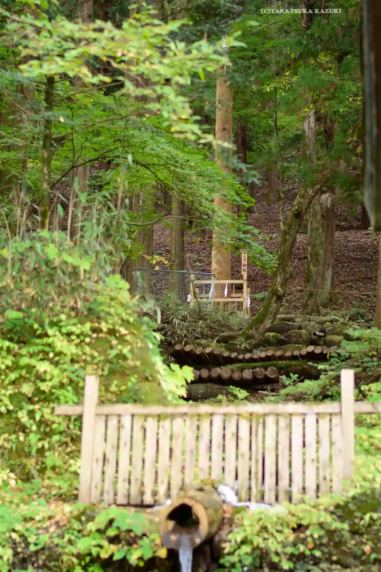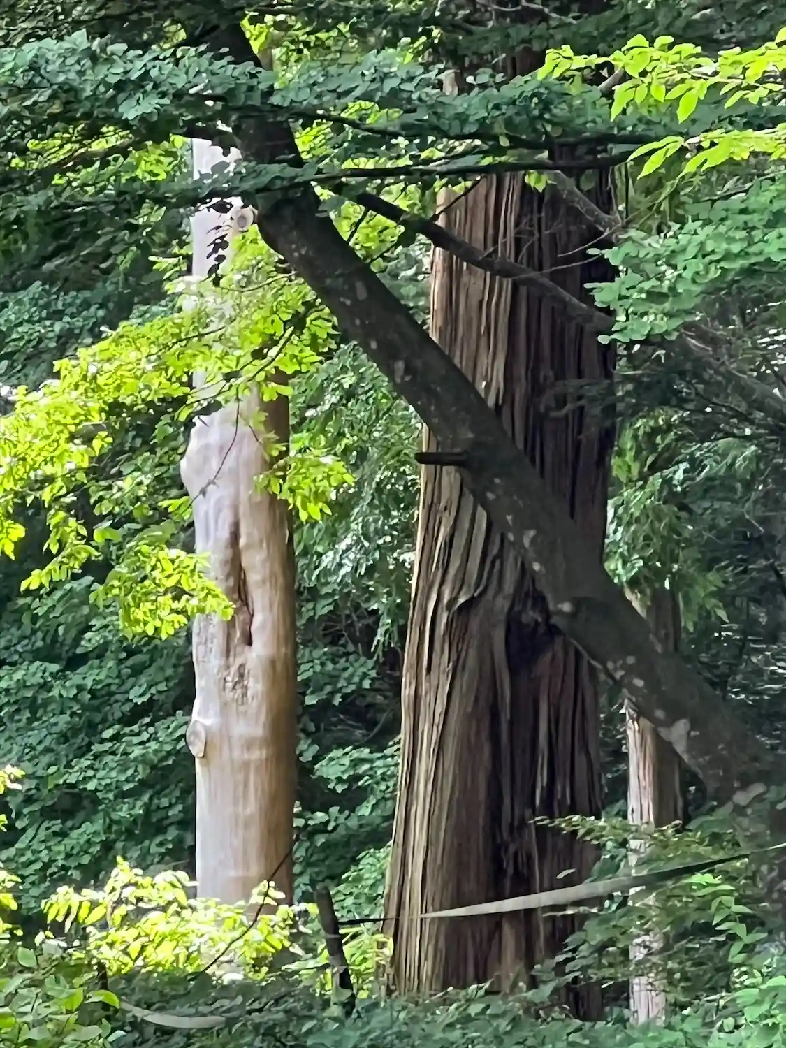一の柱。樅(モミ)の木。ここから時計回りに神域を囲むように4本建てられる。