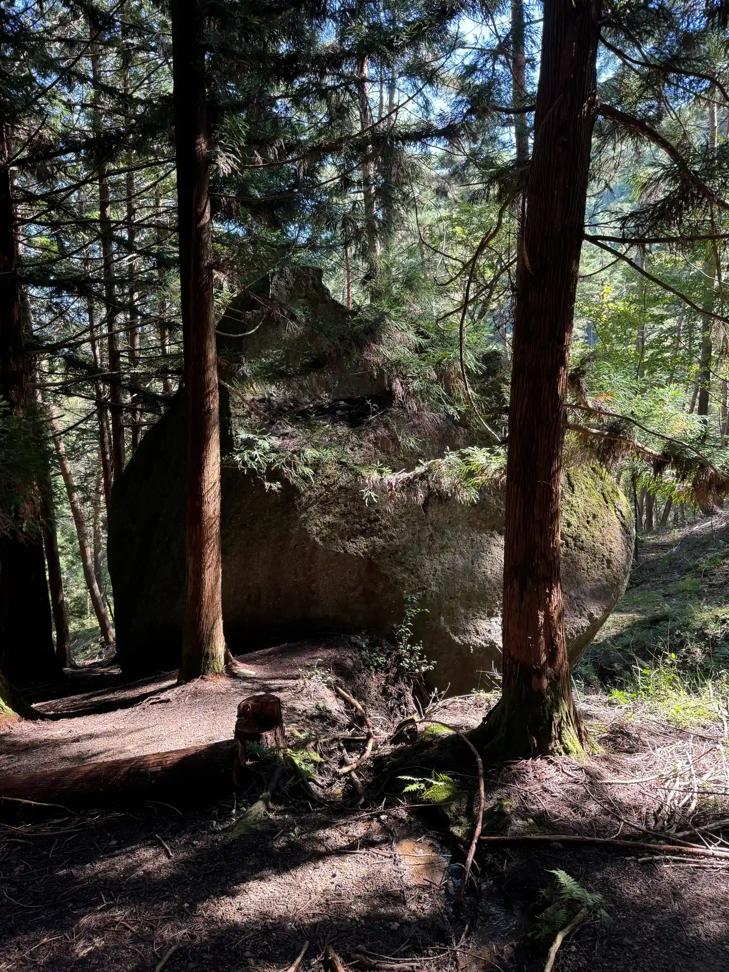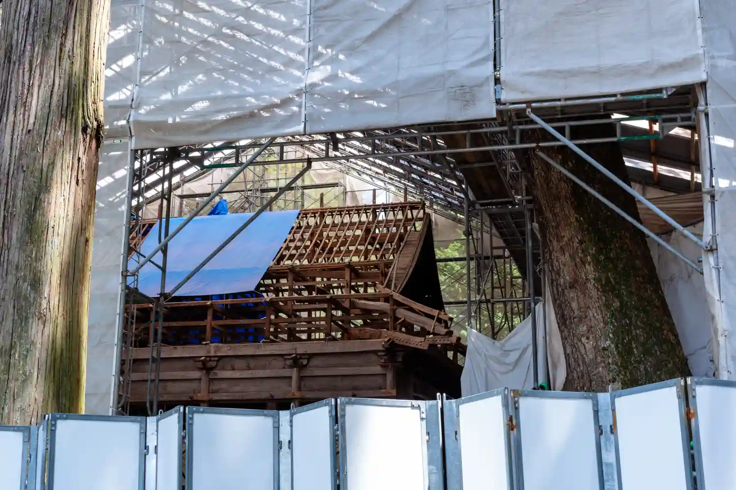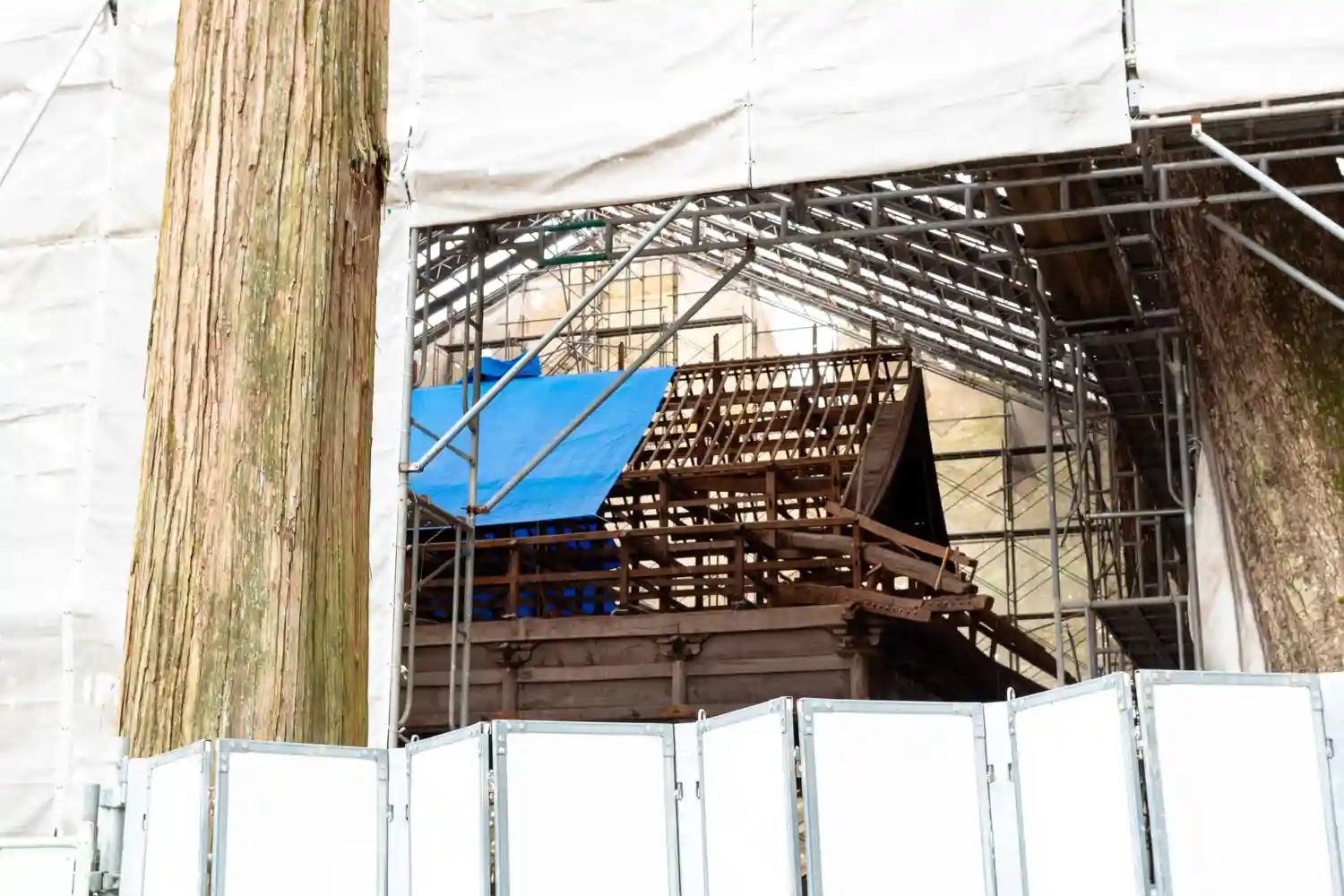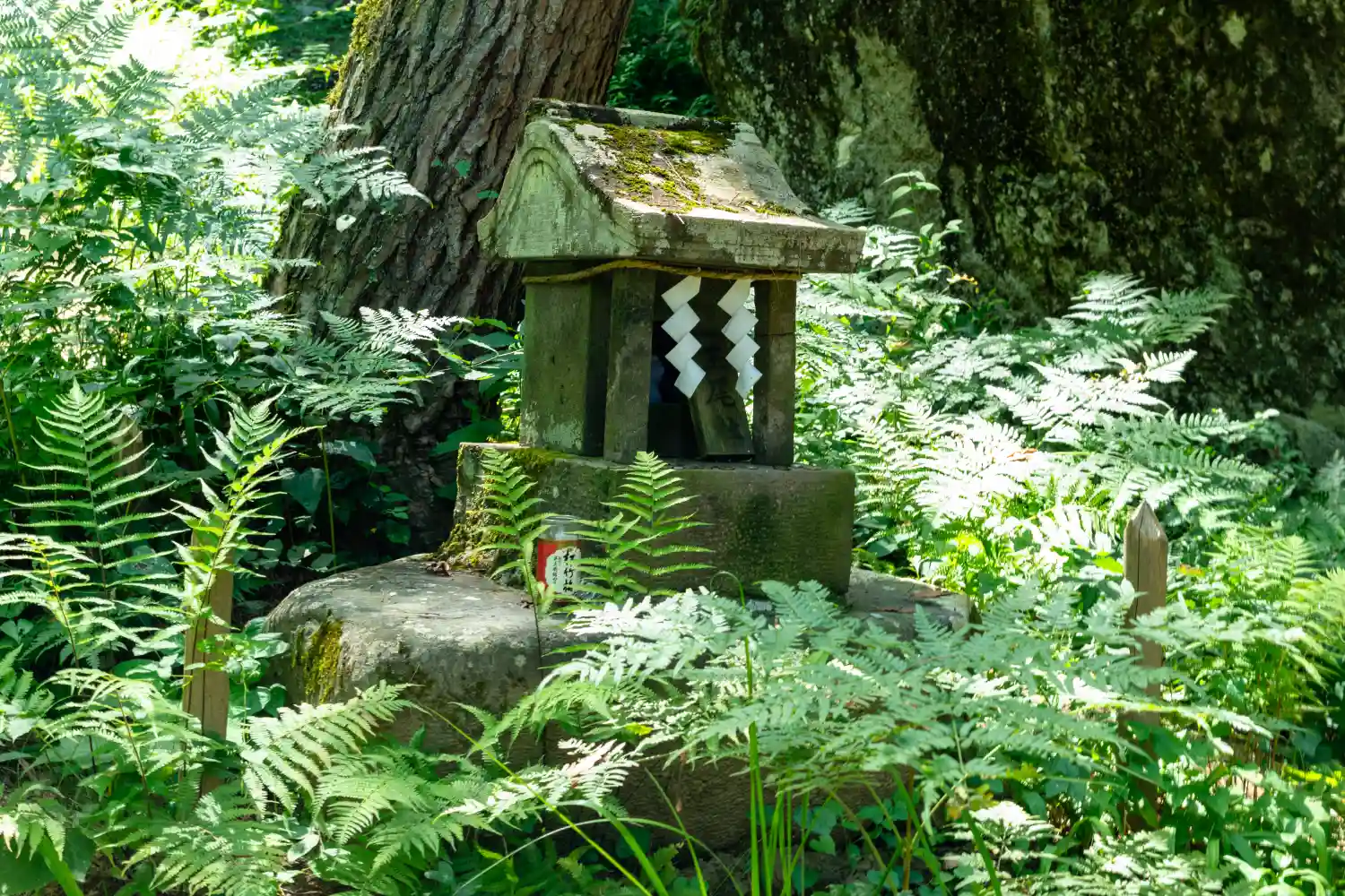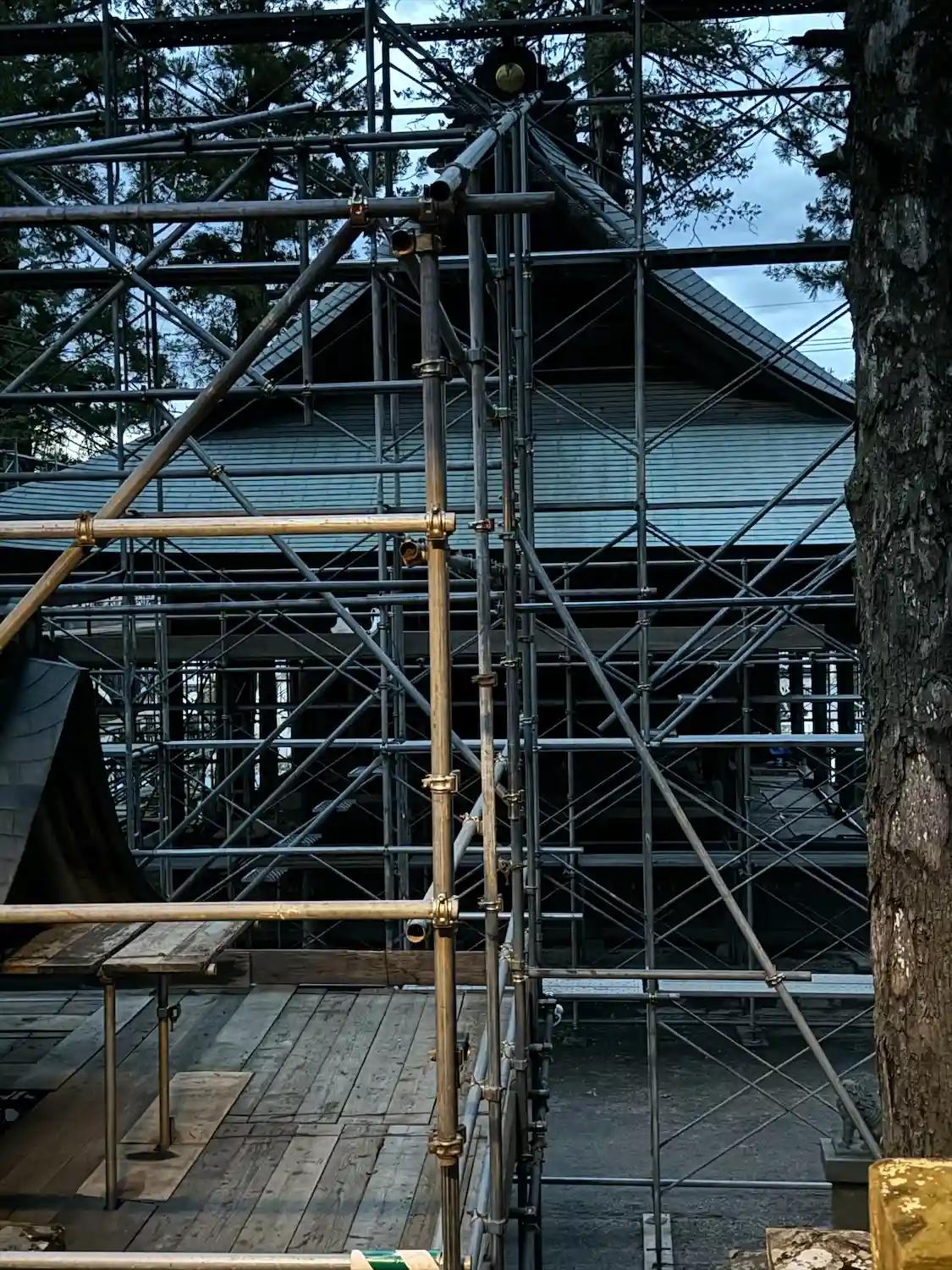 一の柱。樅(モミ)の木。ここから時計回りに神域を囲むように4本建てられる。