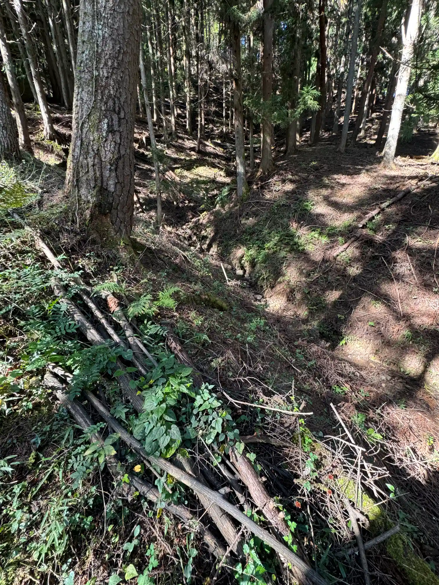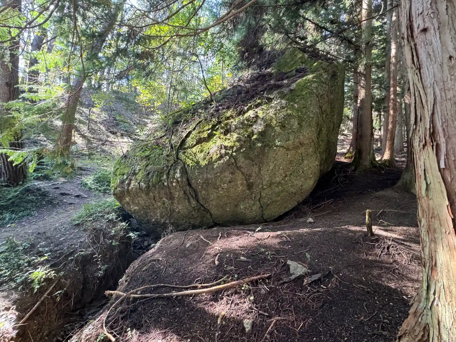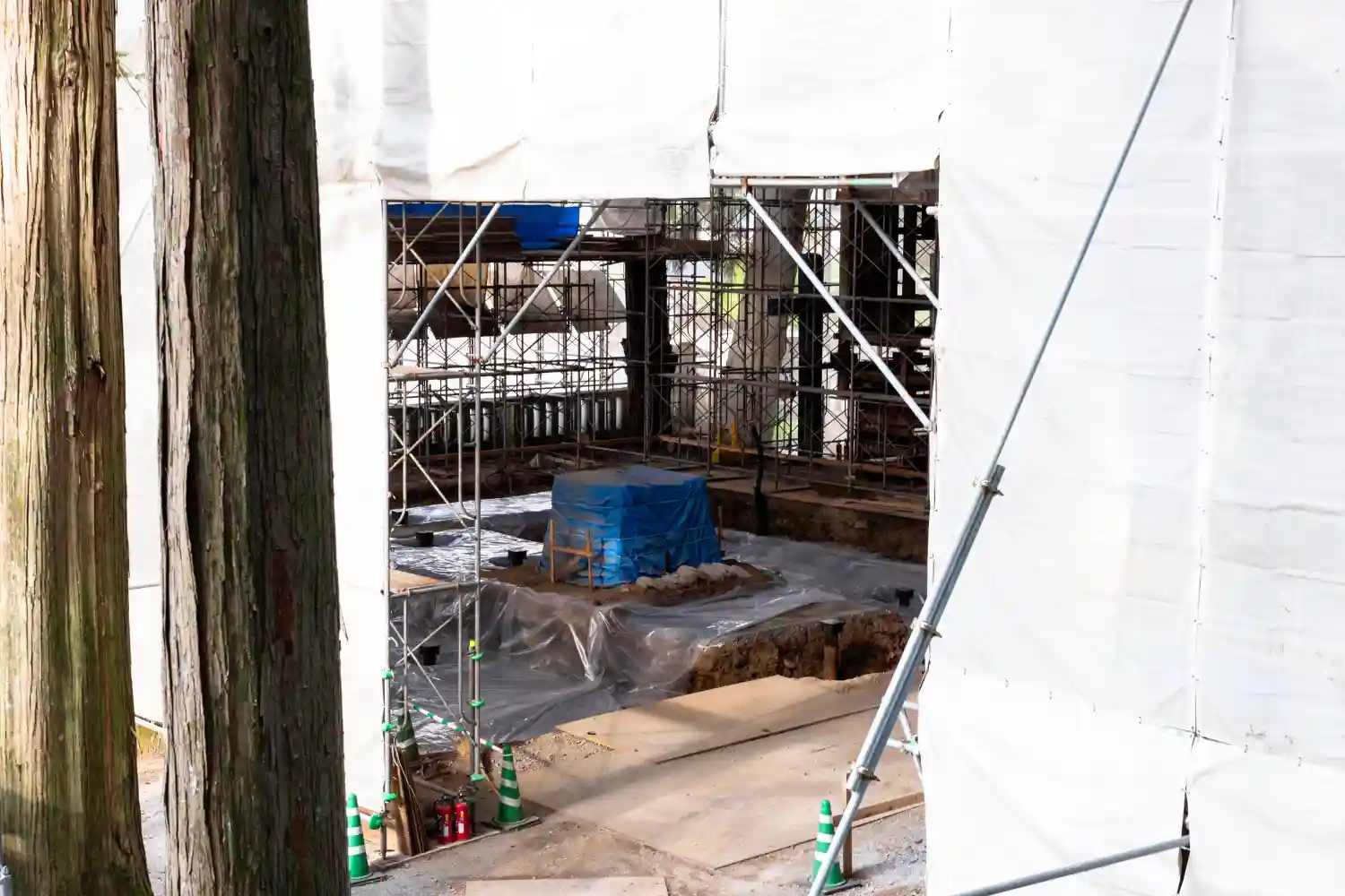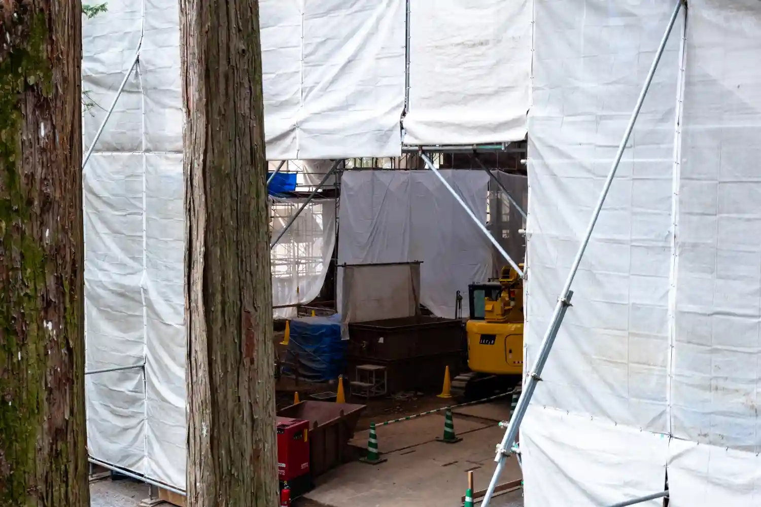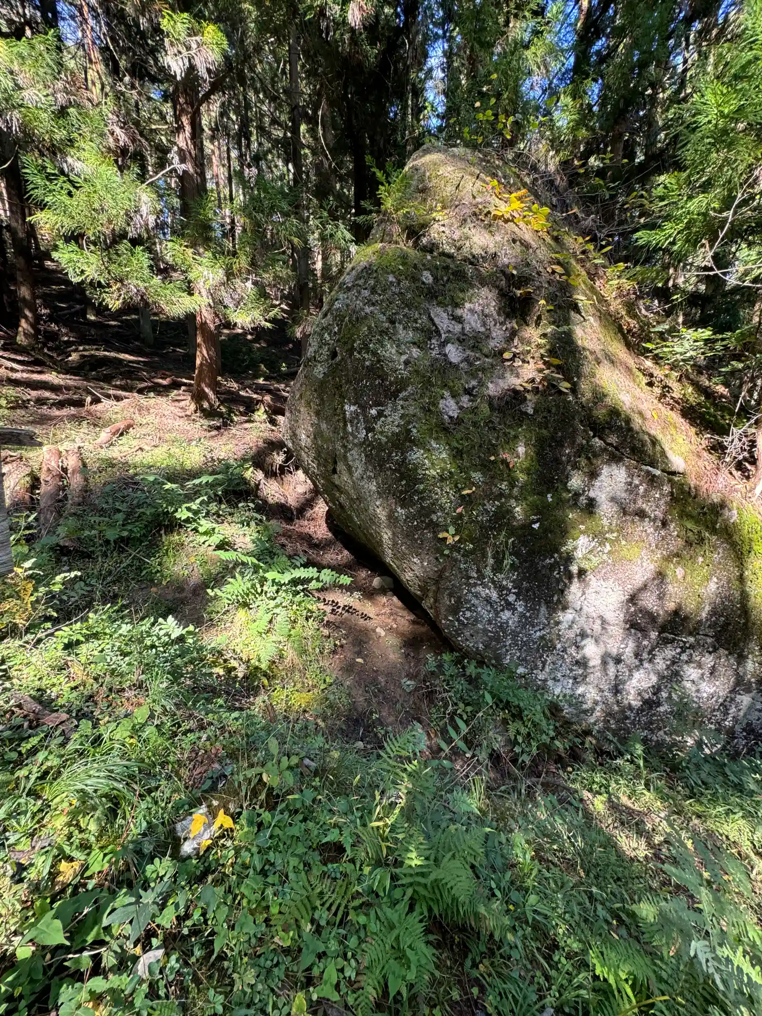 一の柱。樅(モミ)の木。ここから時計回りに神域を囲むように4本建てられる。