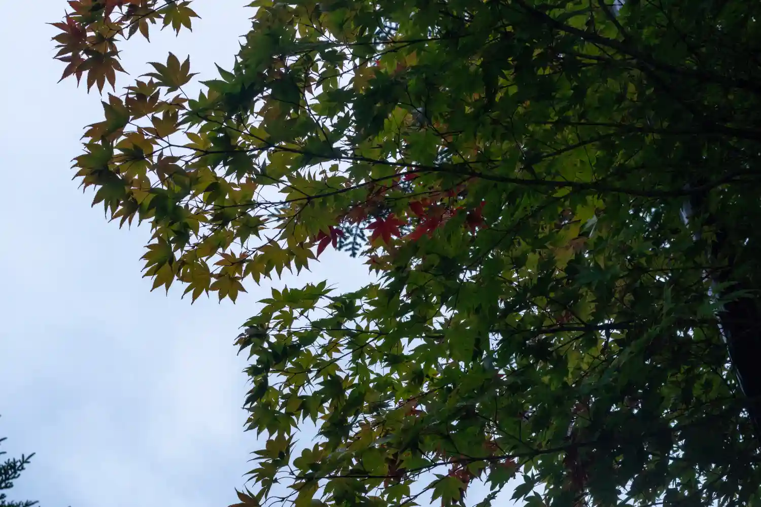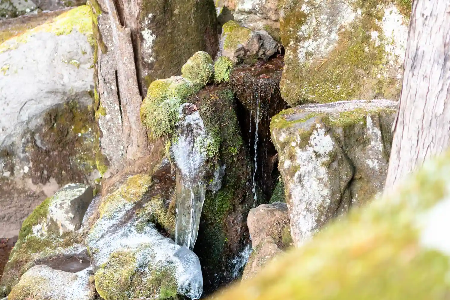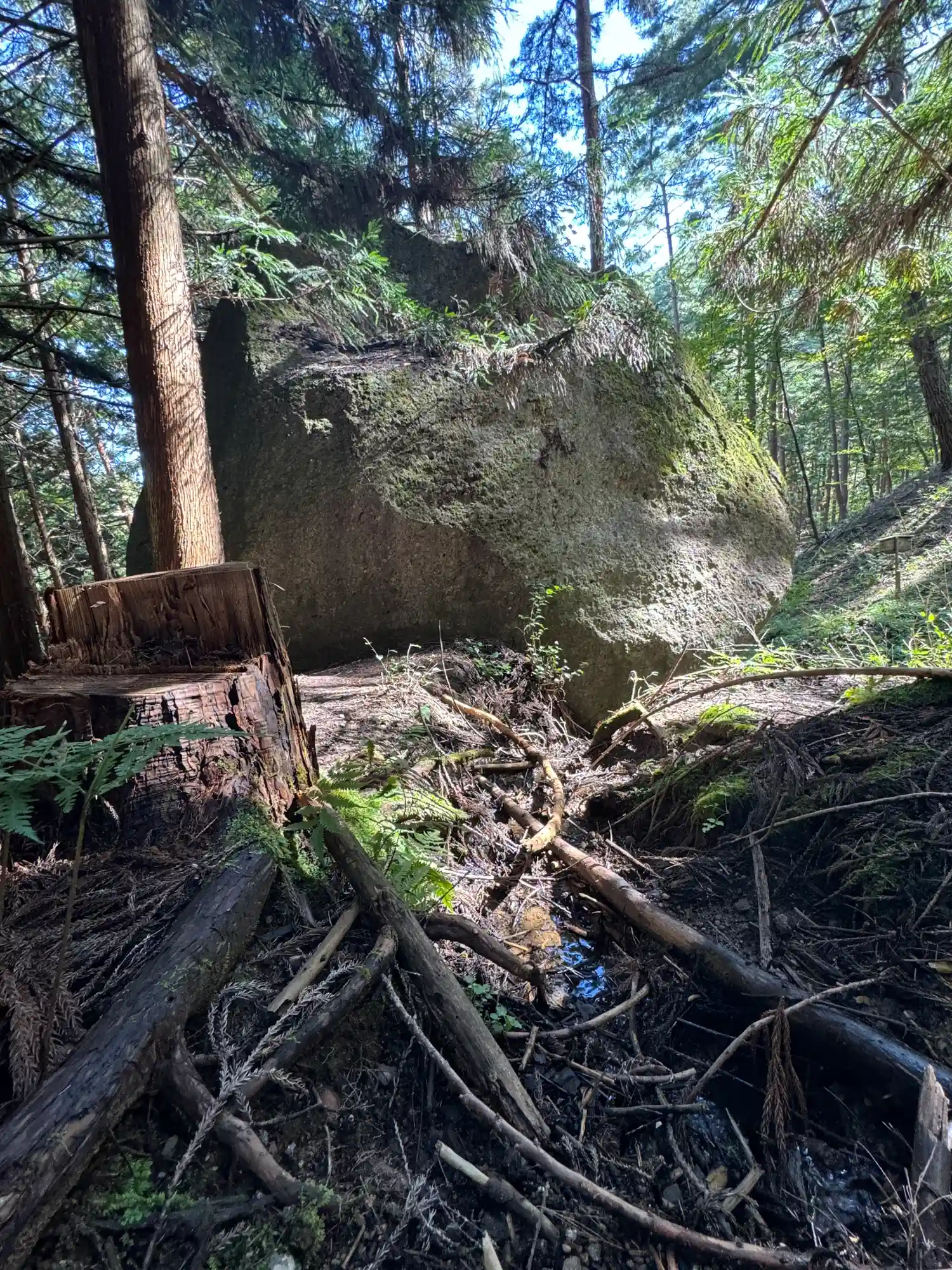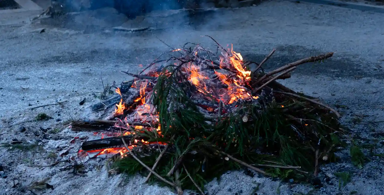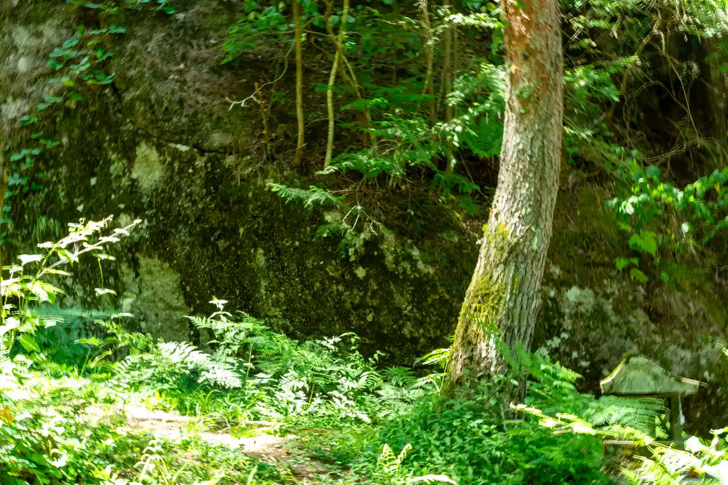 一の柱。樅(モミ)の木。ここから時計回りに神域を囲むように4本建てられる。
