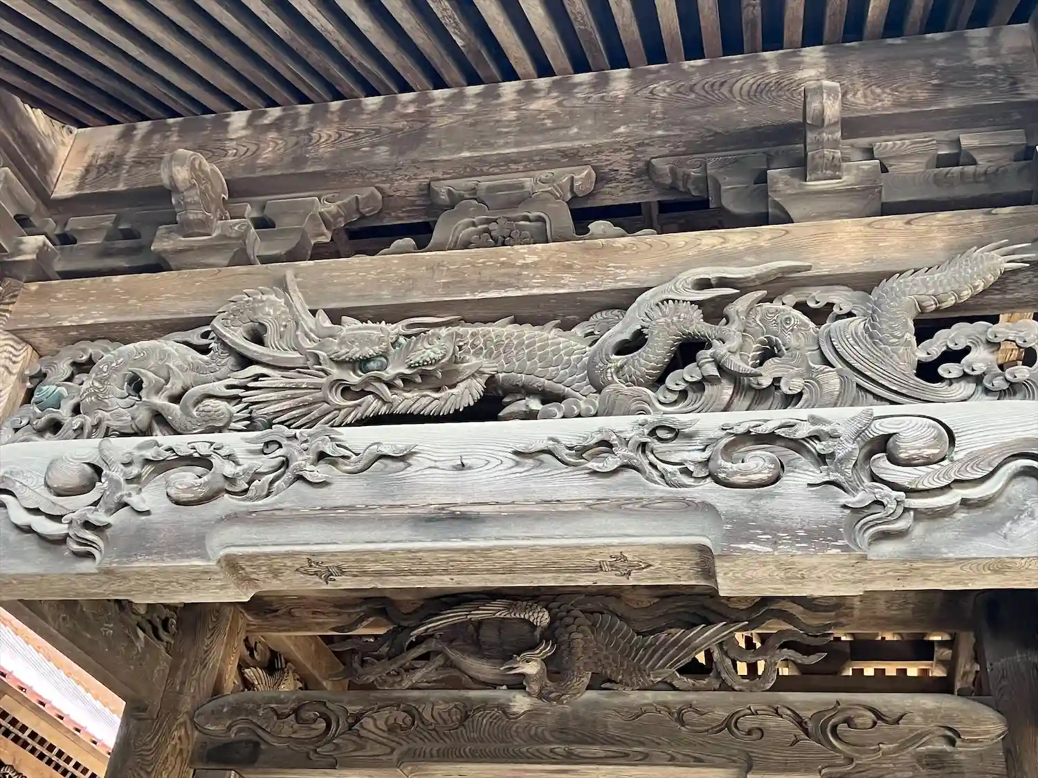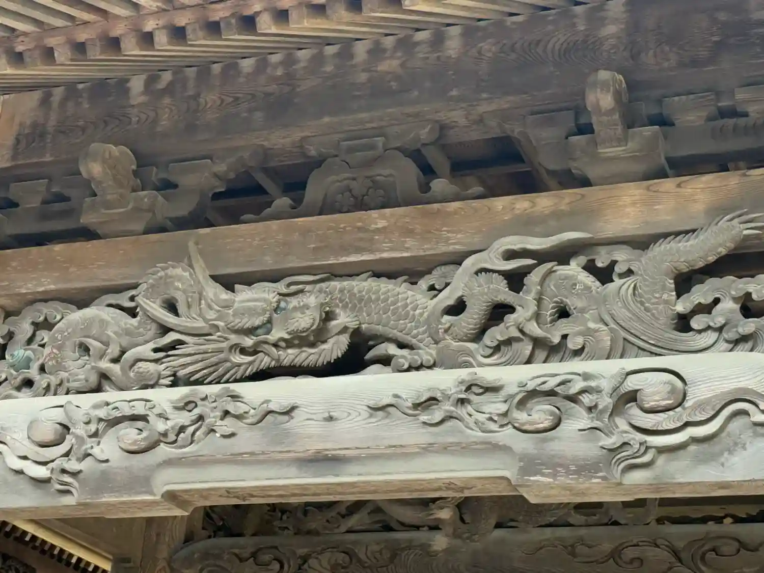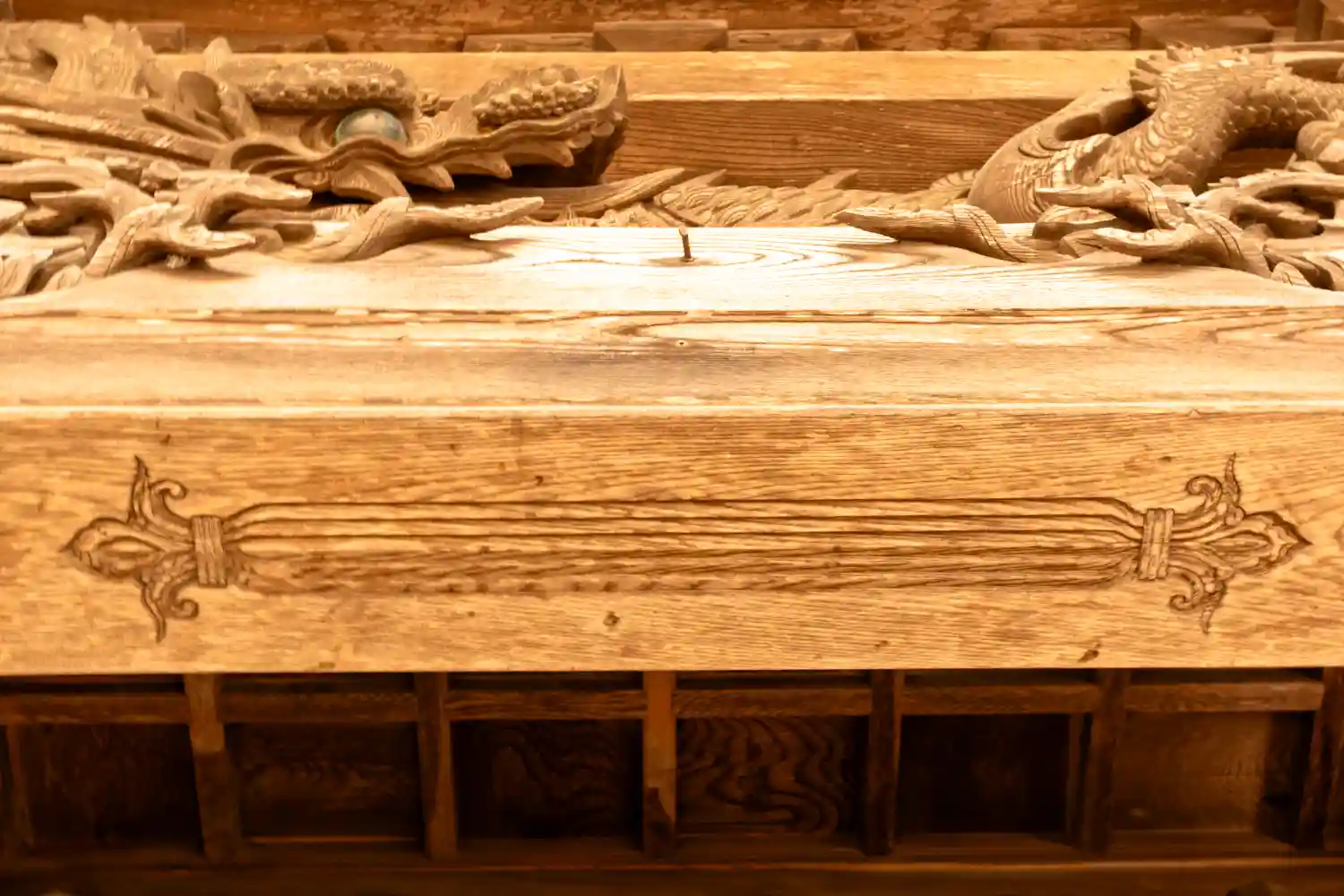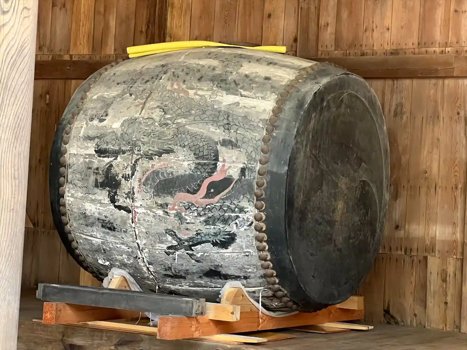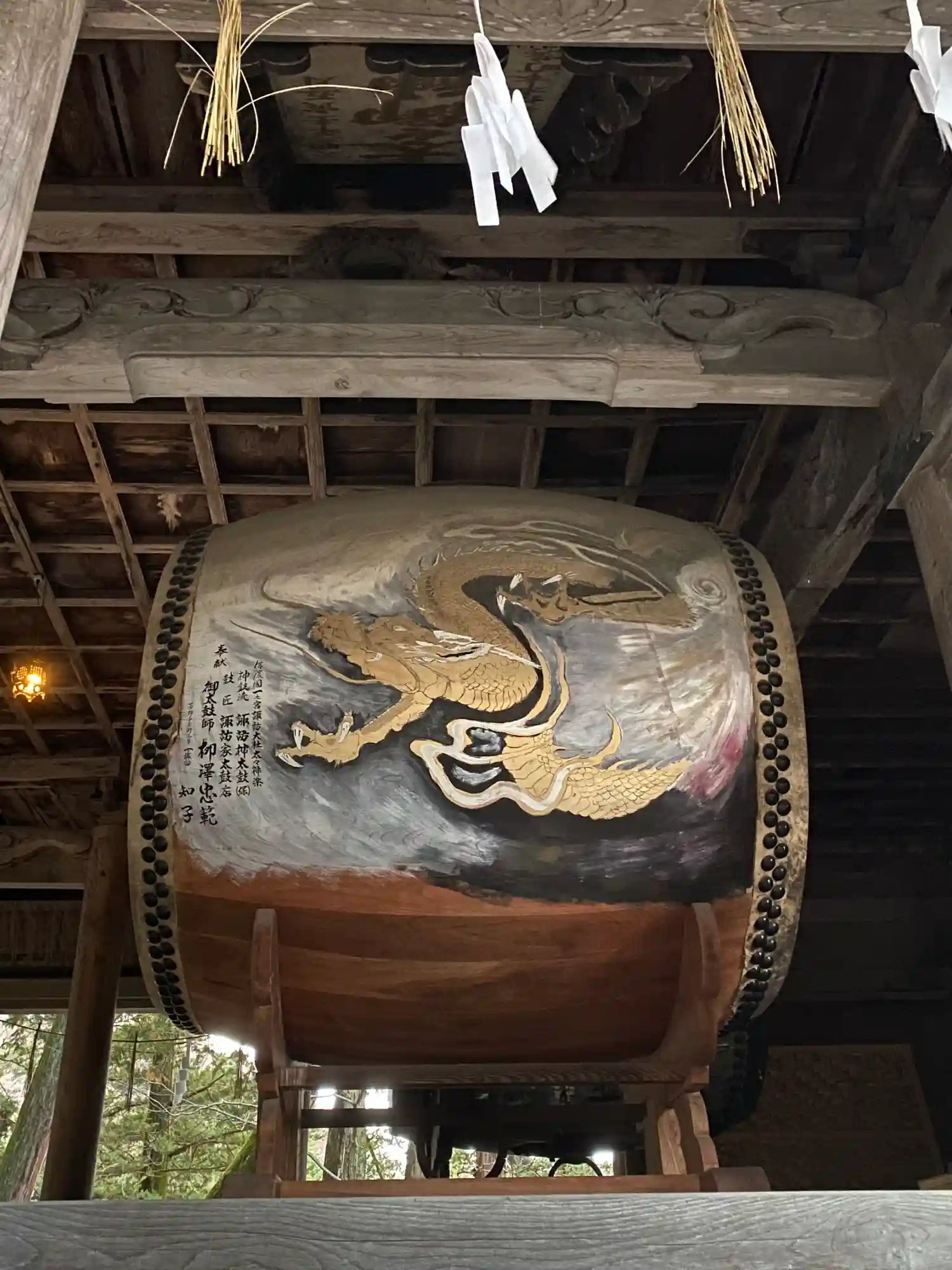 太鼓の側面には見事な神龍が彫られています。