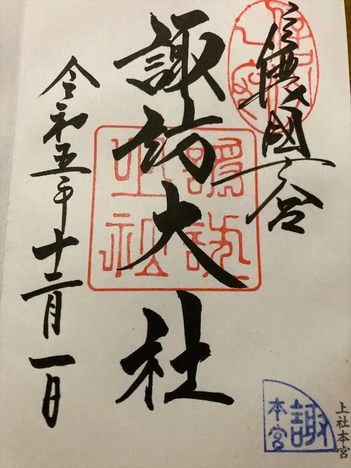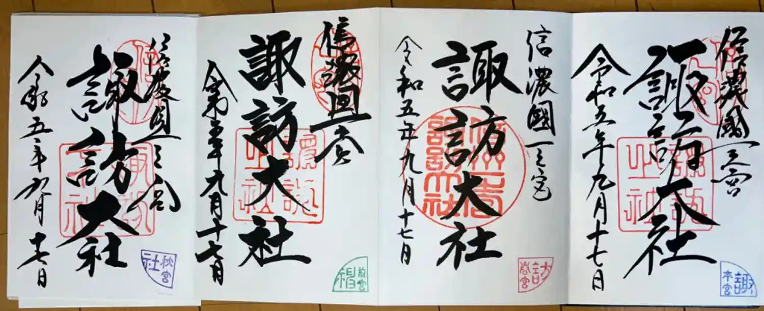 諏訪大社四社(前宮、本宮、春宮、秋宮)で御朱印をいただくと記念品がもらえる「四社まいり」にチャレン…