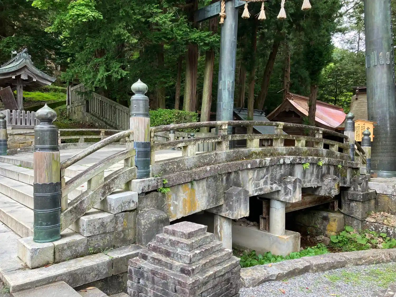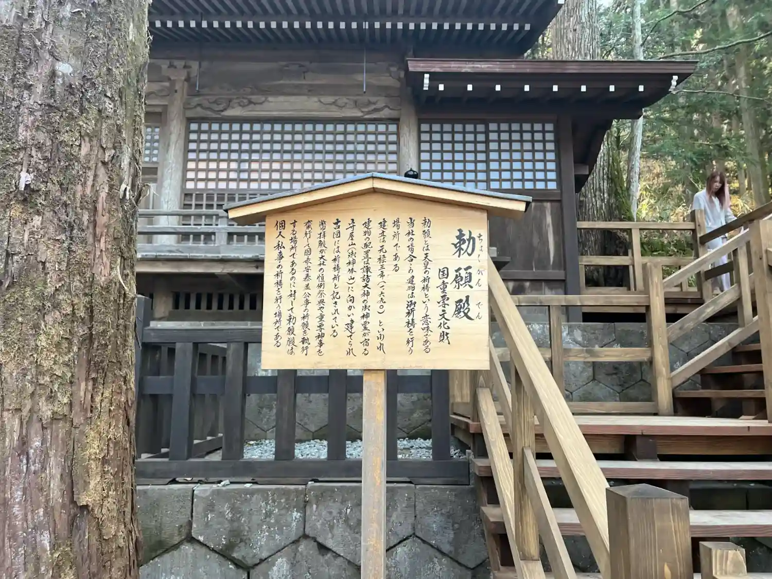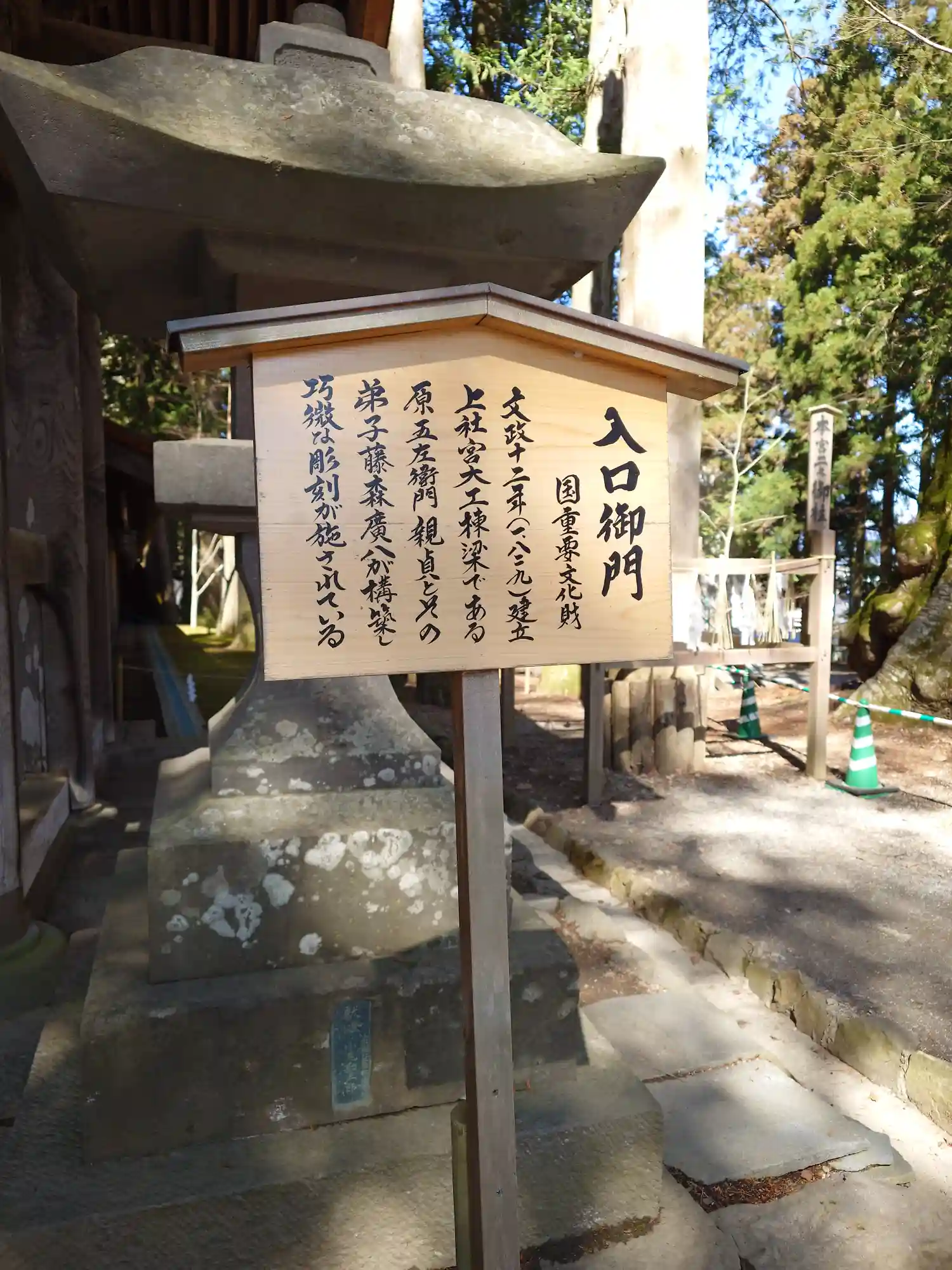<塀重門>への階段と<一の柱>。<塀重門>は国指定重要文化財。
