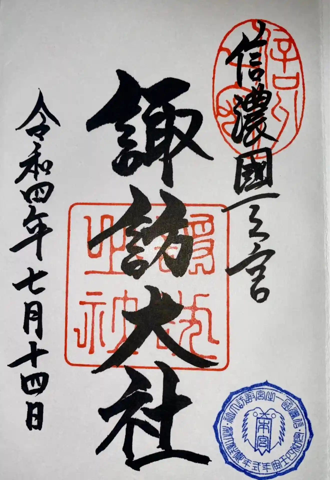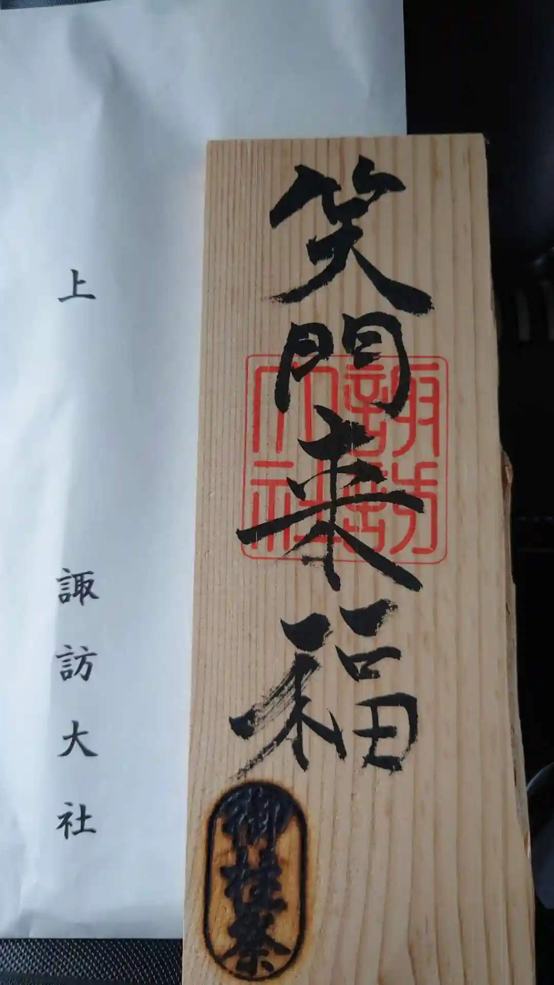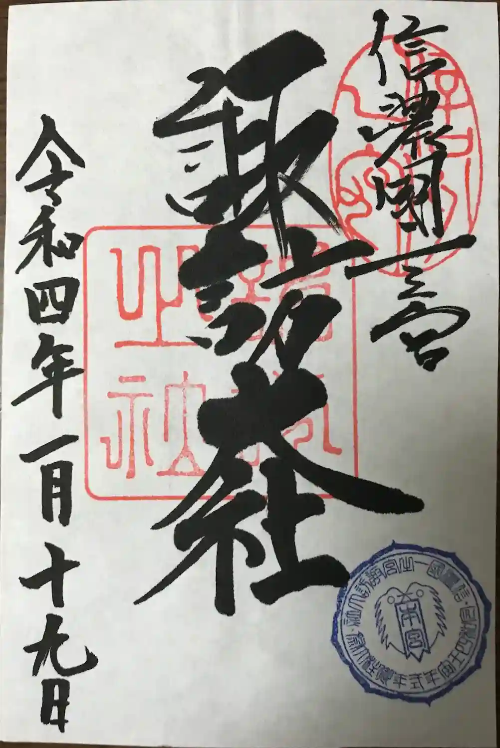 信濃国一宮 こちらで四社巡拝を終えまして、ご朱印に加え記念の品を拝受いたしました。