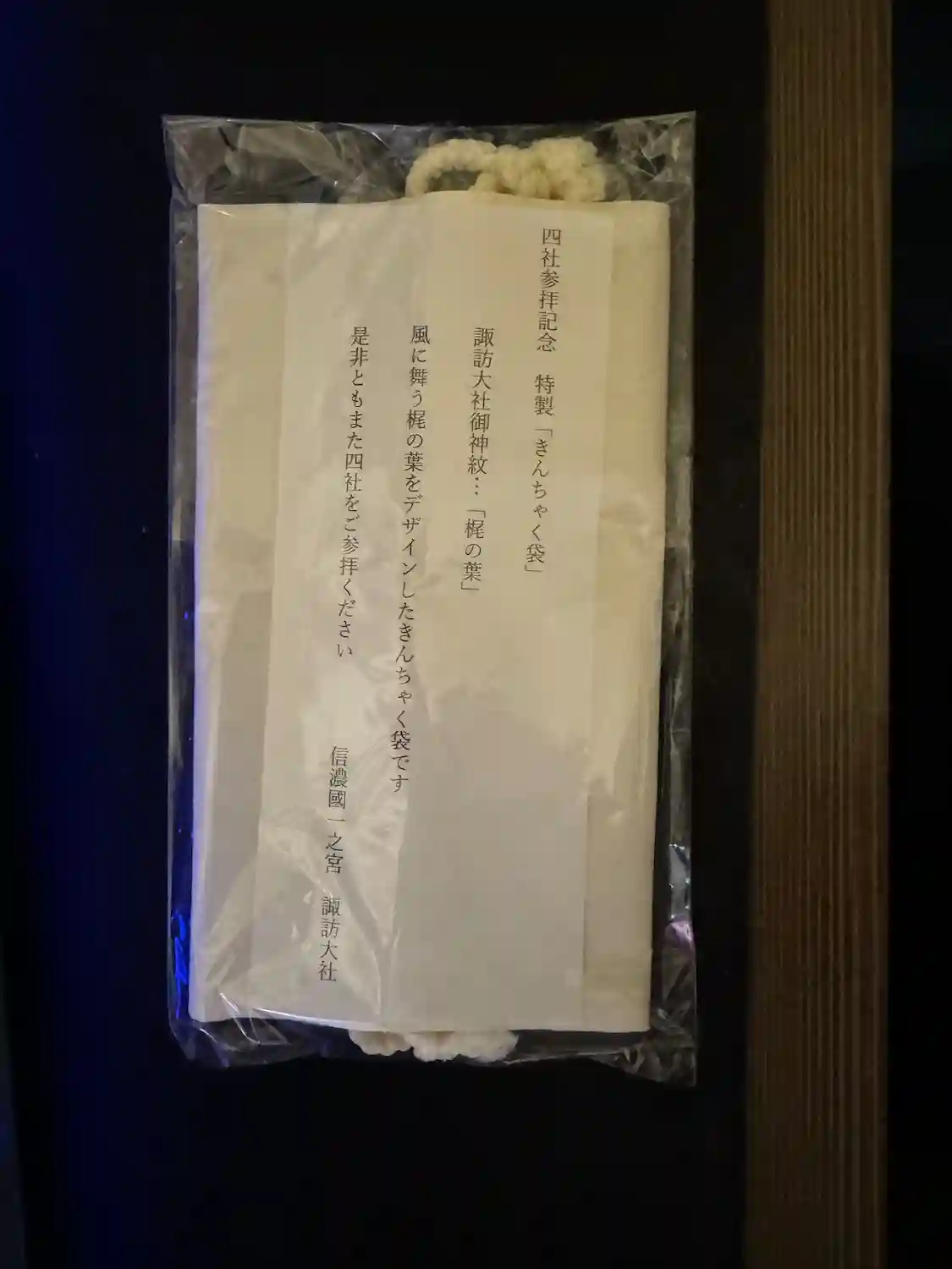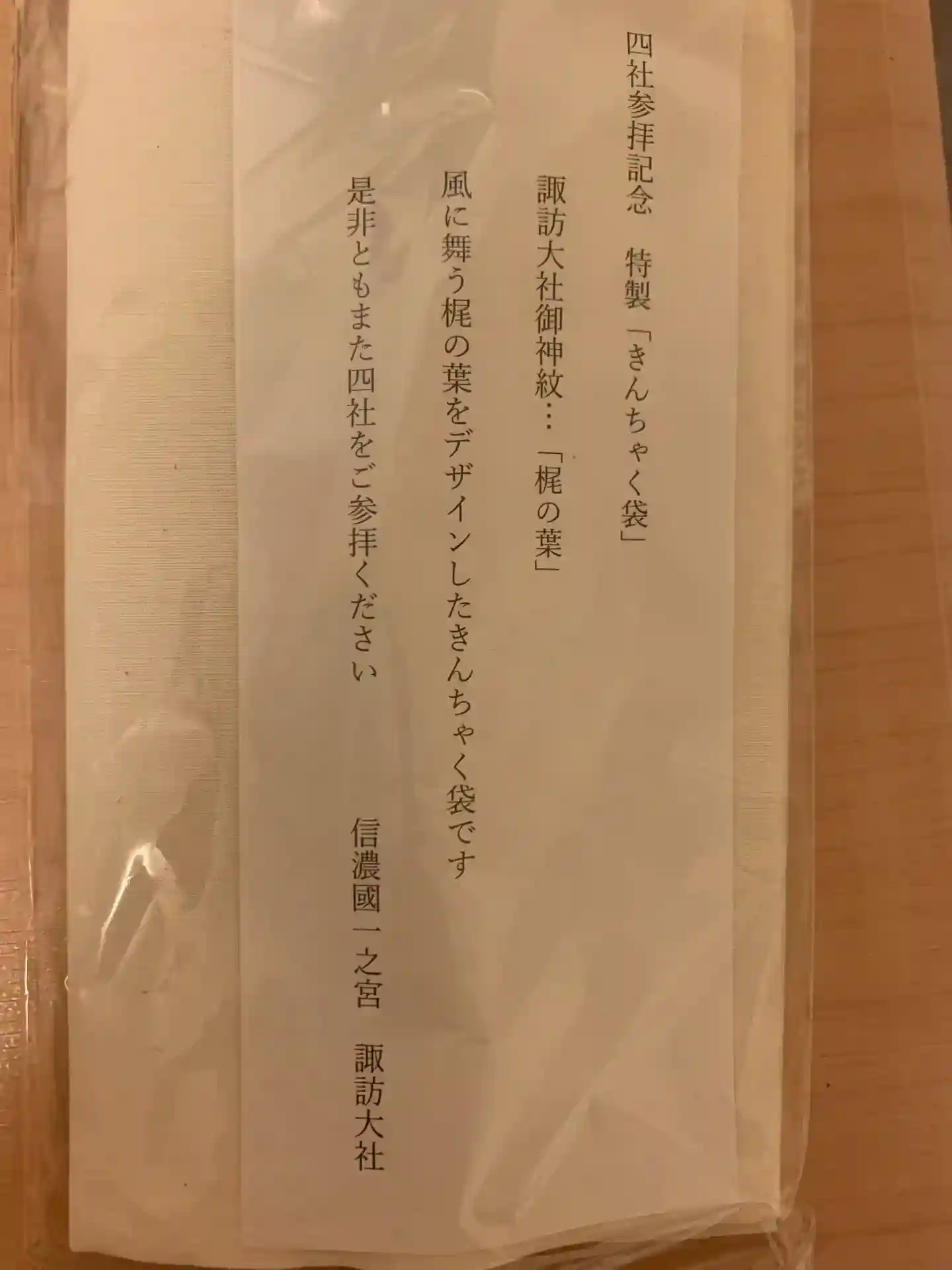 諏訪大社四社まいりの最後は上社本宮です。四社まいりの記念品を頂きました。ありがとうございます。