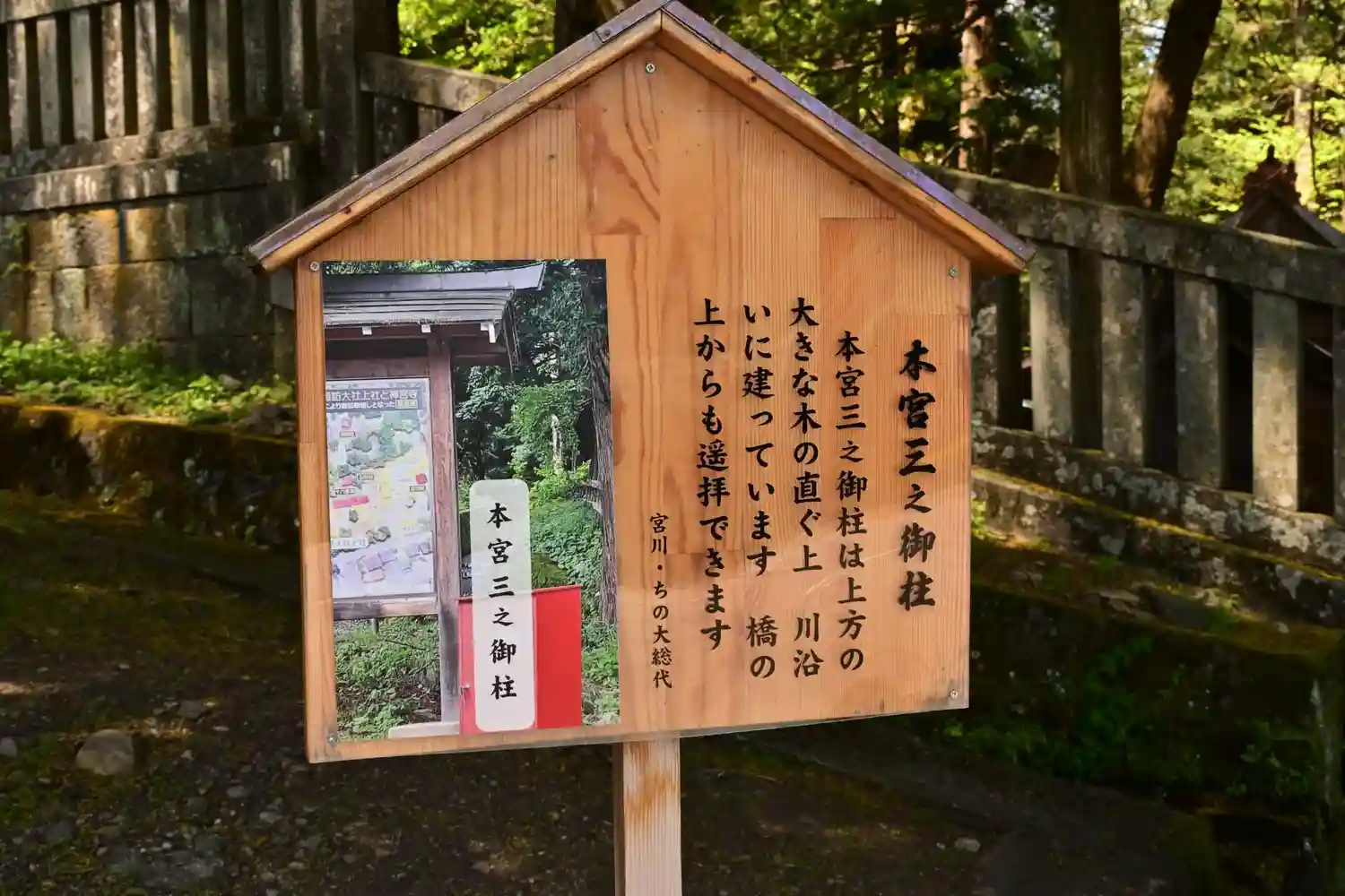 御柱の前で