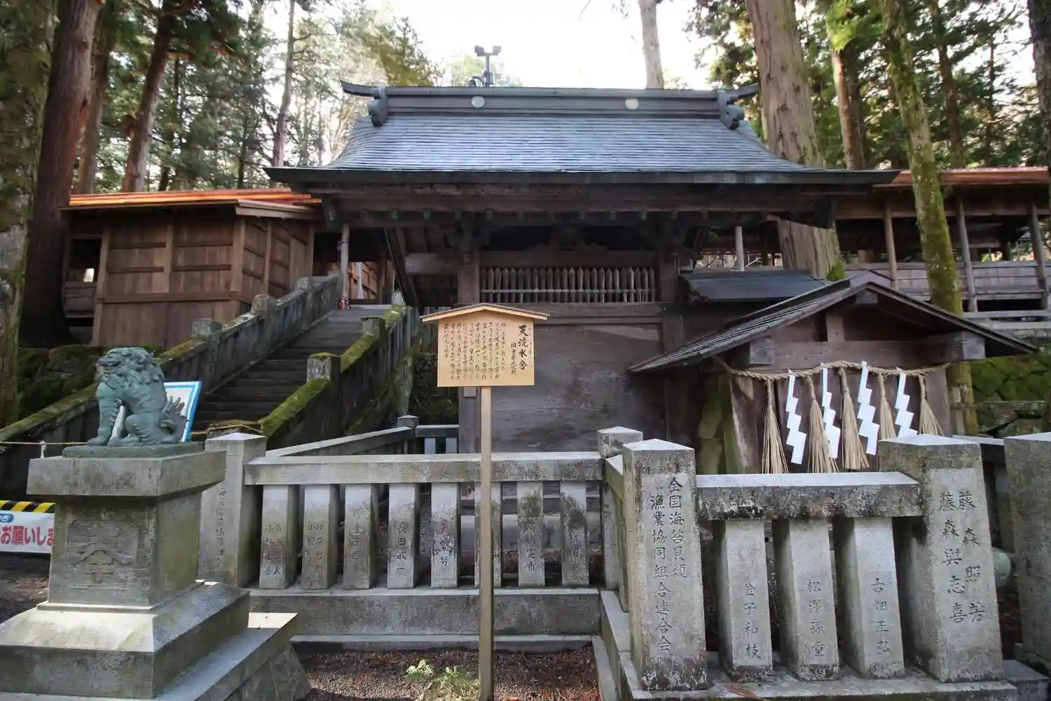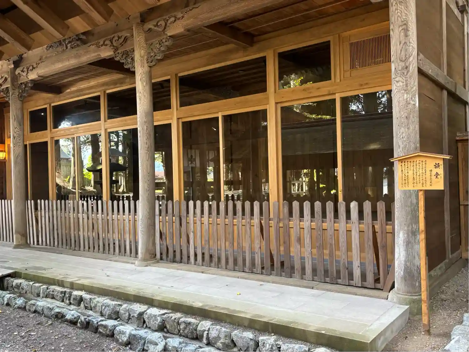 額堂。布橋から眺めることができます。中には様々な額が飾られており、内容は分かりませんがどれも歴史を感じさせます。
